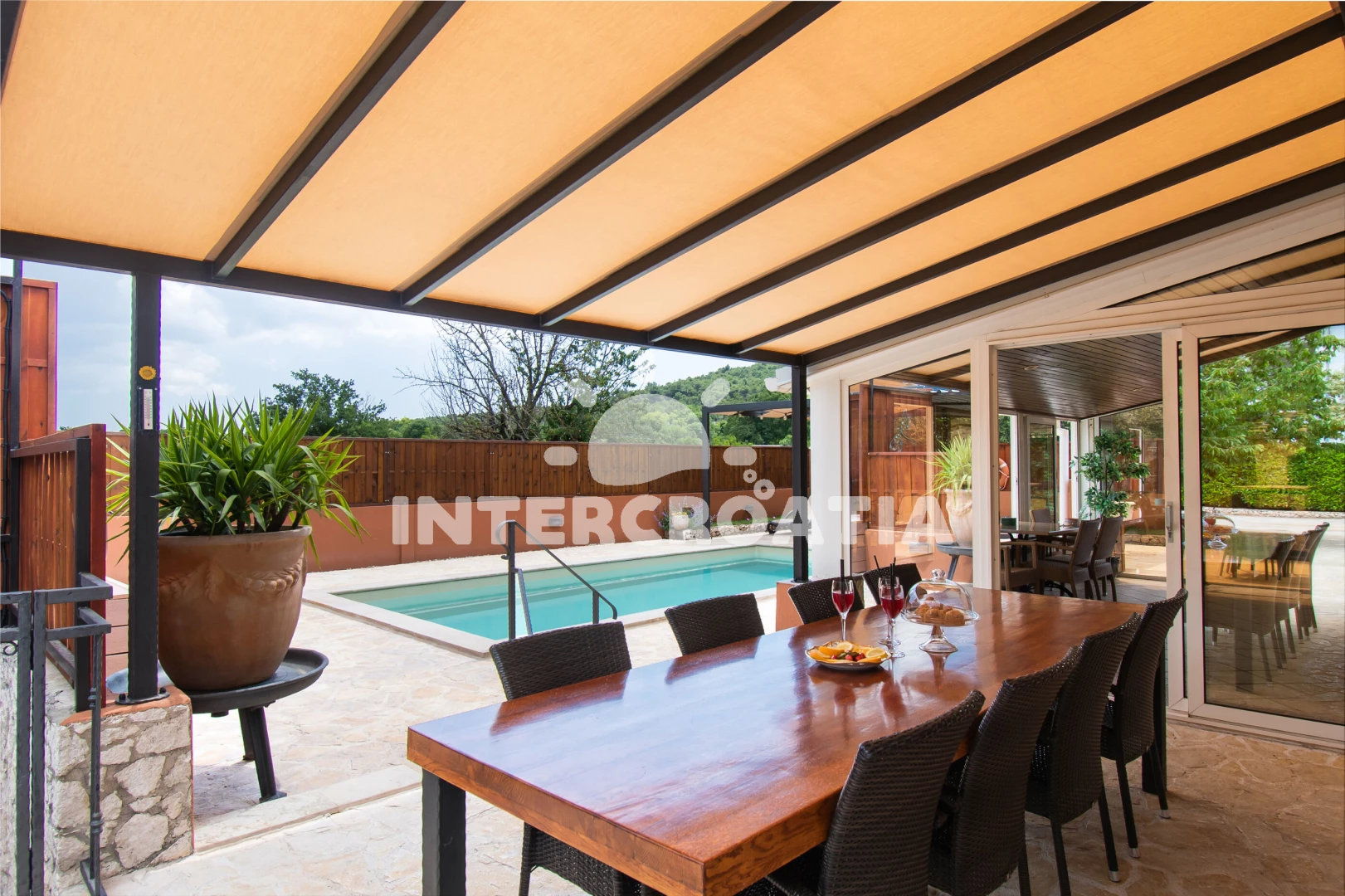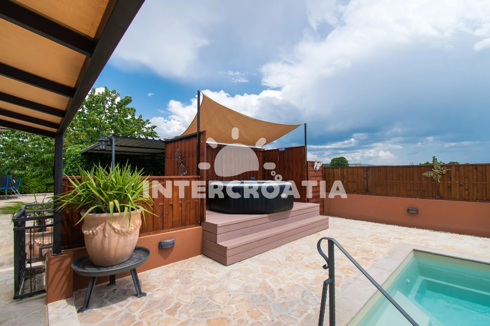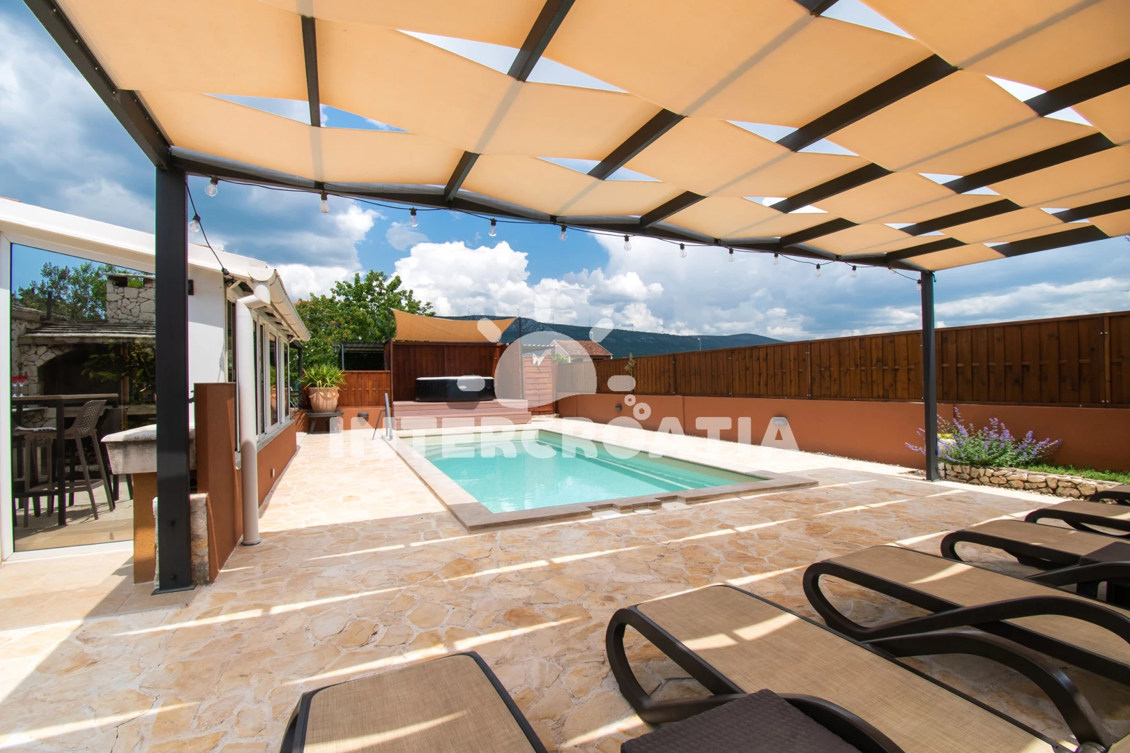 Vila se nachází 8400 m od moře a pláže. Pláž je oblázková. Vila disponuje bazénem s lehátky pro ubytované hosty. K dispozici vířivka. U objektu je k dispozici společná zahrada s posezením a grilem. Parkování je před domem.