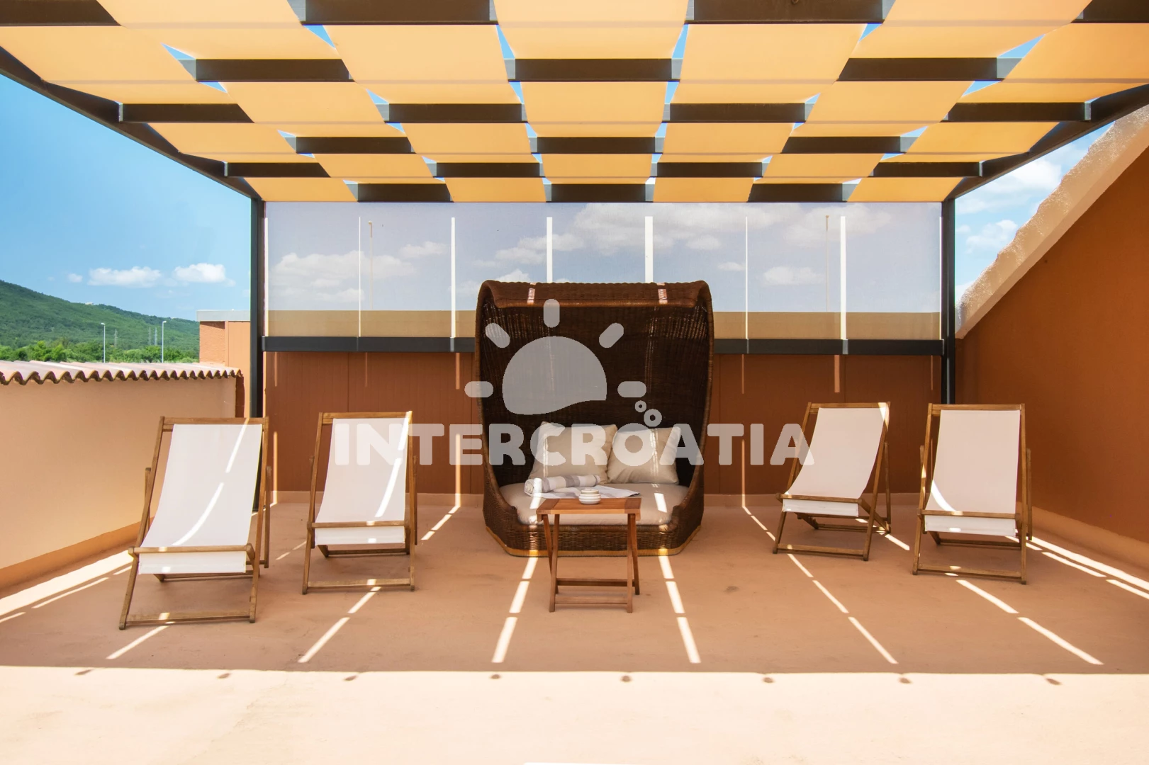 Vila (300 m2) s balkonem. Nachází se ve dvou patrech objektu. Vila má 5 ložnic a je vhodná pro až 12 osob. Kuchyňská linka je vybavena varnou deskou, troubou, kávovarem, toustovačem, myčkou na nádobí…