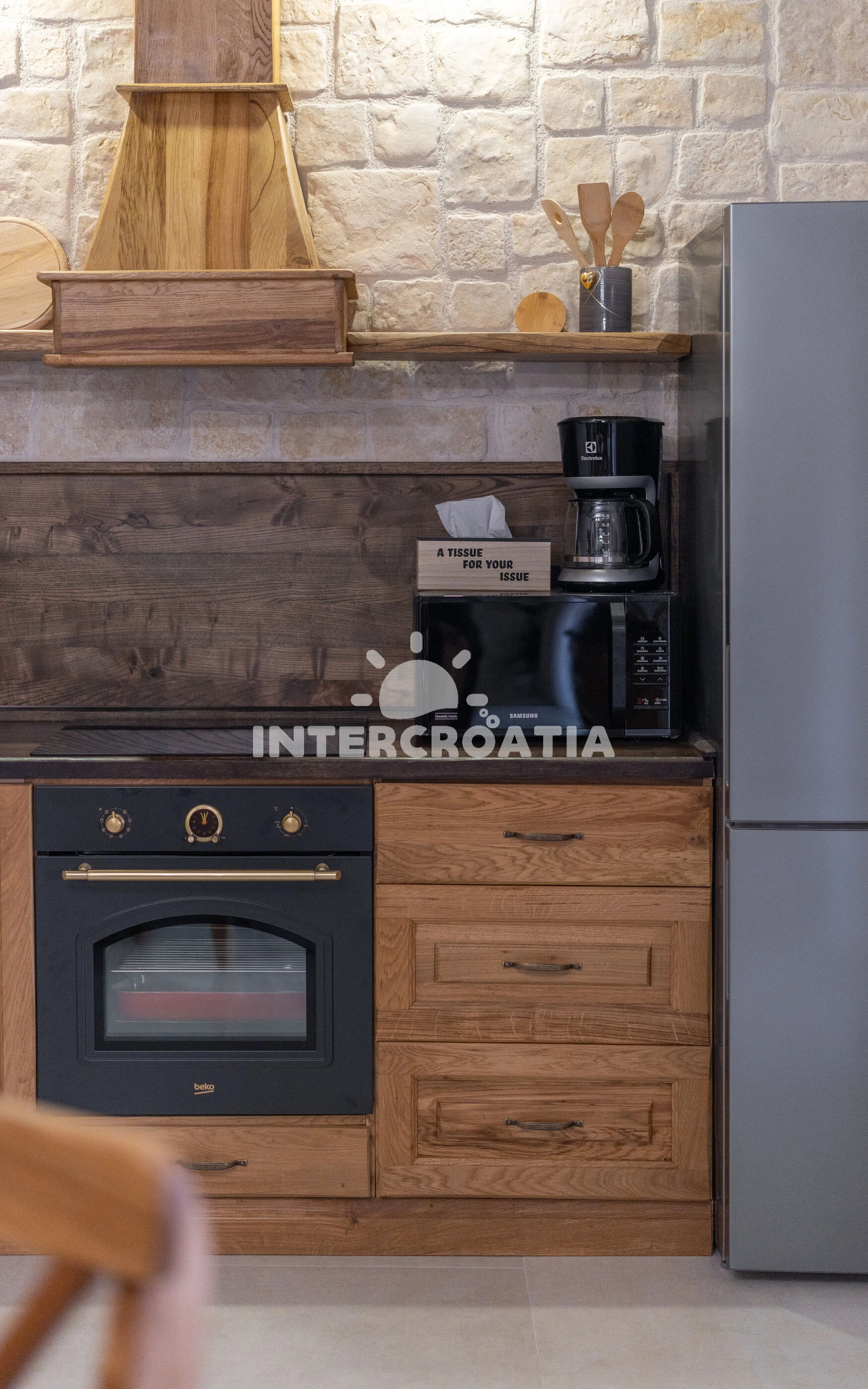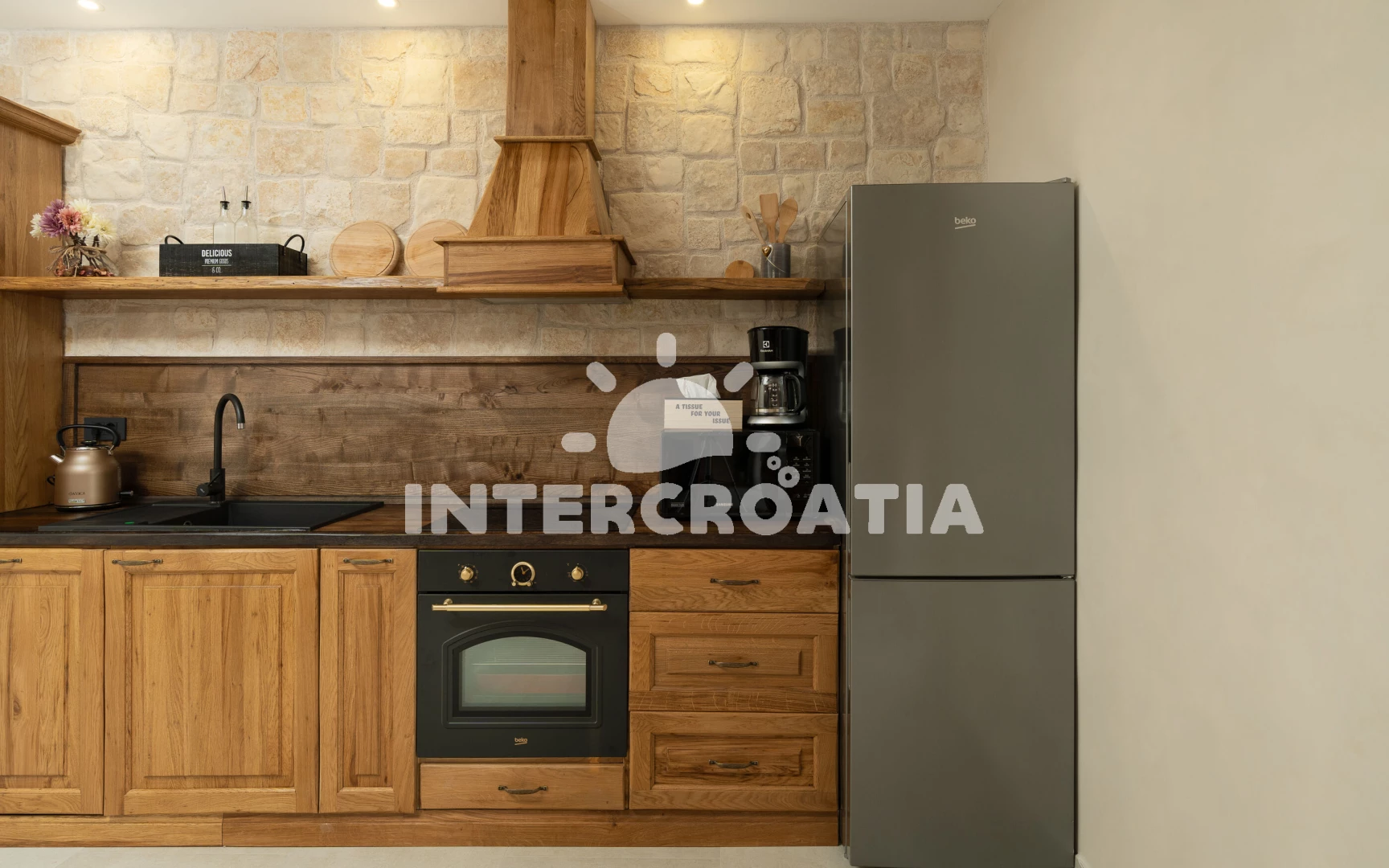 Vzdálenosti: Moře 14 km, pláž 15 km (oblázková a betonové desky), supermarket 700 m, centrum 700 m, bar 4 km, restaurace 4 km, ambulance 8 km, čerpací stanice 9,5 km, park Plitvice 10 km,
