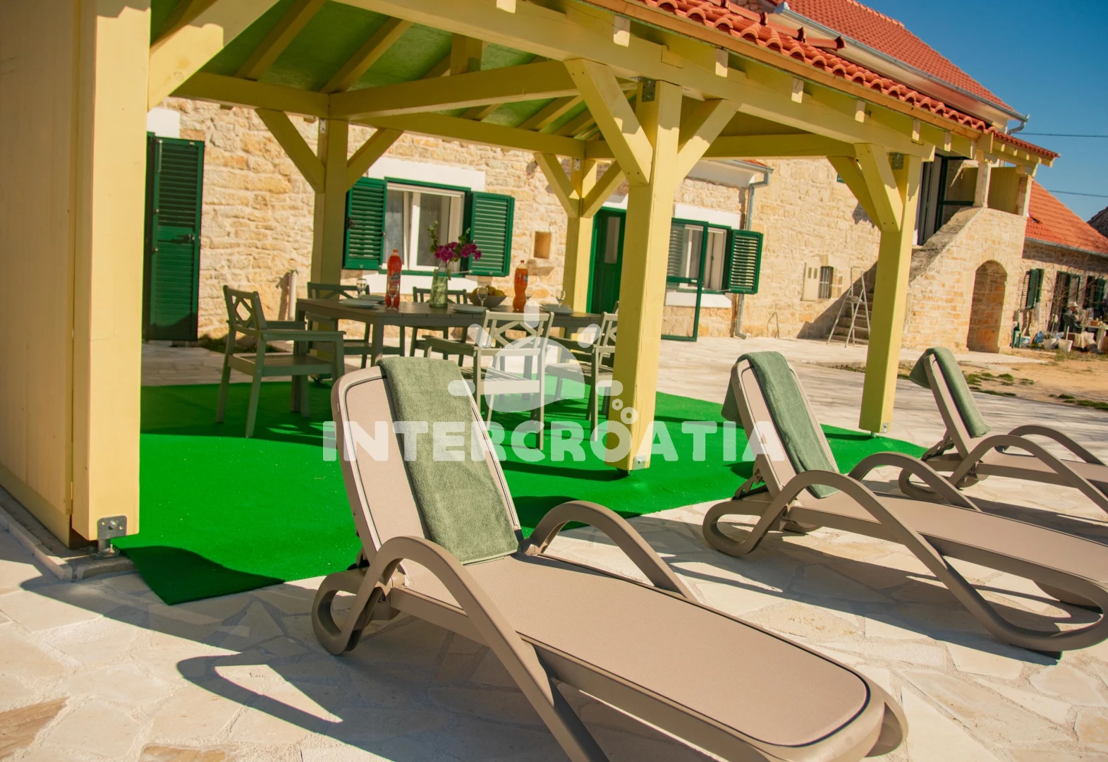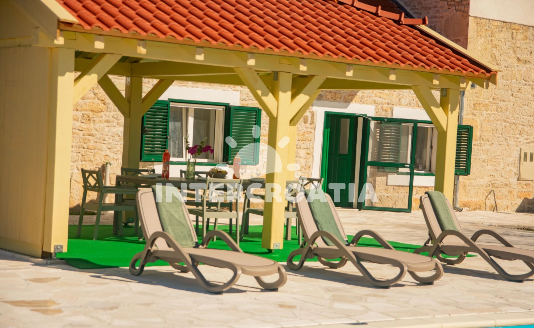 Vila se nachází 45000 m od moře a pláže. Pláž je písečná. Vila disponuje bazénem s lehátky pro ubytované hosty. U objektu je k dispozici společná zahrada s posezením a grilem. Parkování je před domem.
