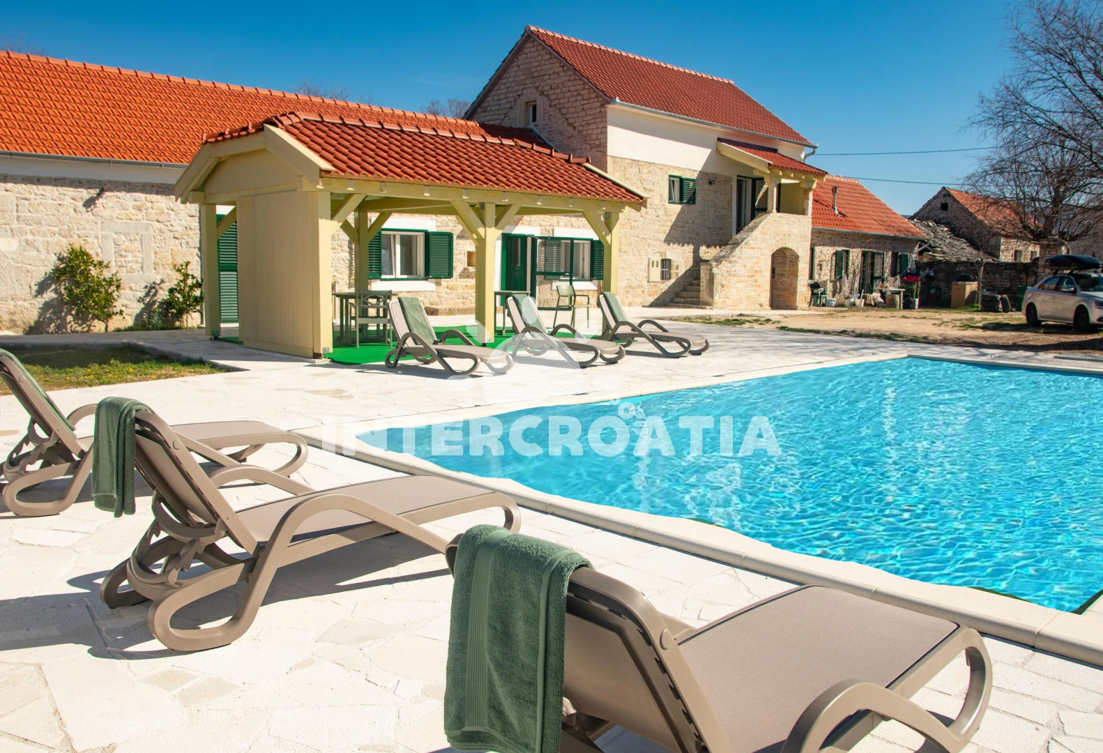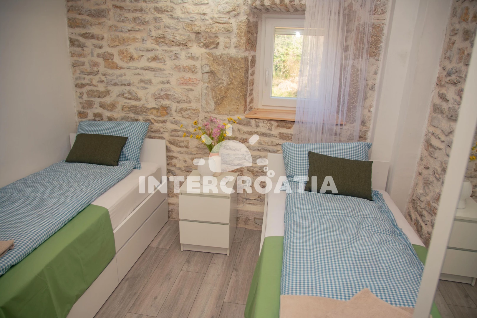 Vzdálenosti: Moře 40 km, pláž 45 km (písek), centrum 2,5 km, supermarket 2,5 km, veřejná doprava 2,5 km, bar 2,5 km, pošta 2,5 km, lékárna 2,5 km, ambulance 2,5 km, park Plitvice 5,0 km, muzeum 5 km, restaurace 11 km, směnárna 15 km, tenisové kurty 15 km, banka 15 km, diskotéka 15 km, čerpací stanice 15 km, trajekt (Šibenik) 50,0 km, letiště (Split) 60 km,