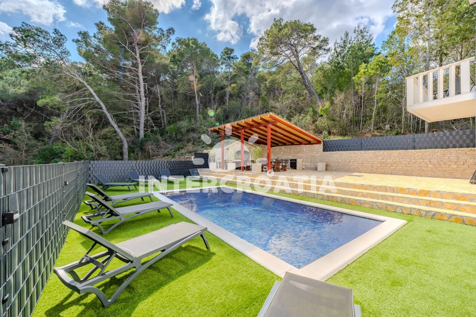Vila (300 m2) s výhledem na moře. Vila má 7 ložnic a je vhodná pro až 14 osob. Kuchyňská linka je vybavena varnou deskou, troubou, kávovarem, mikrovlnnou troubou, rychlovarnou konvicí, nádobím, lednicí, mrazákem. K dispozici televize. První ložnice s dvoulůžkem. Druhá ložnice s dvoulůžkem. Třetí ložnice s dvoulůžkem. Čtvrtá ložnice s dvoulůžkem. Pátá ložnice s dvoulůžkem. Šestá ložnice s dvoulůžkem. Sedmá ložnice s dvoulůžkem. První koupelna se sprchovým koutem, umyvadlem, WC. Druhá koupelna se sprchovým koutem, umyvadlem, WC. Třetí koupelna se sprchovým koutem, umyvadlem, WC. Hostům je k dispozici parkování u objektu zdarma.
