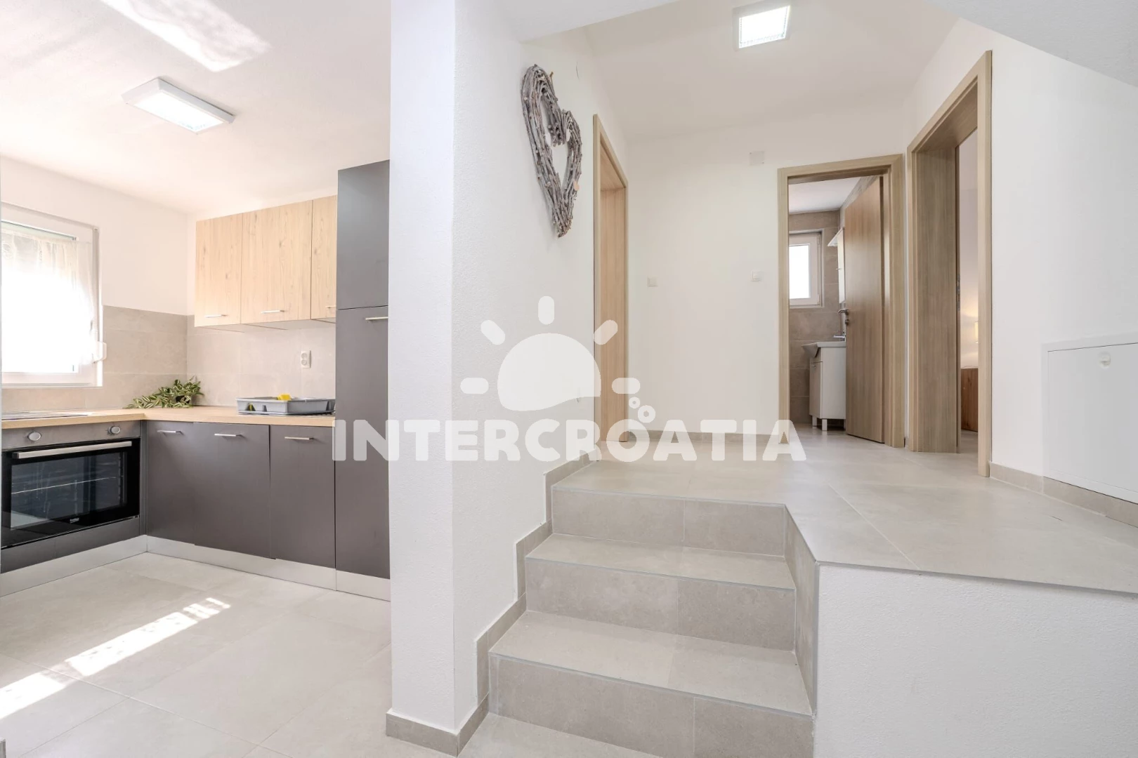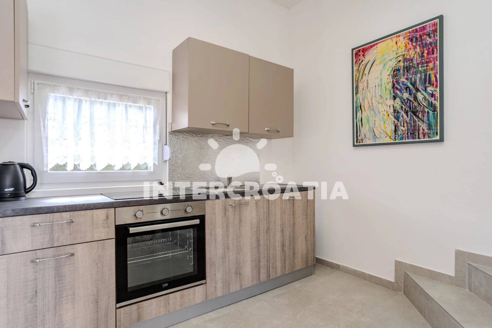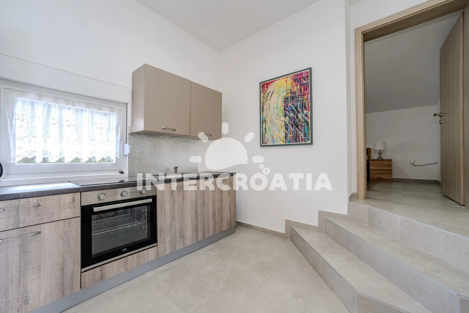 Vzdálenosti: Moře 150 m, pláž 270 m (písčitá a oblázková), půjčovna motorových člunů 300 m, restaurace 300 m, centrum 300 m, supermarket 2,8 km, čerpací stanice 3 km, letiště (Zadar) 20 km,