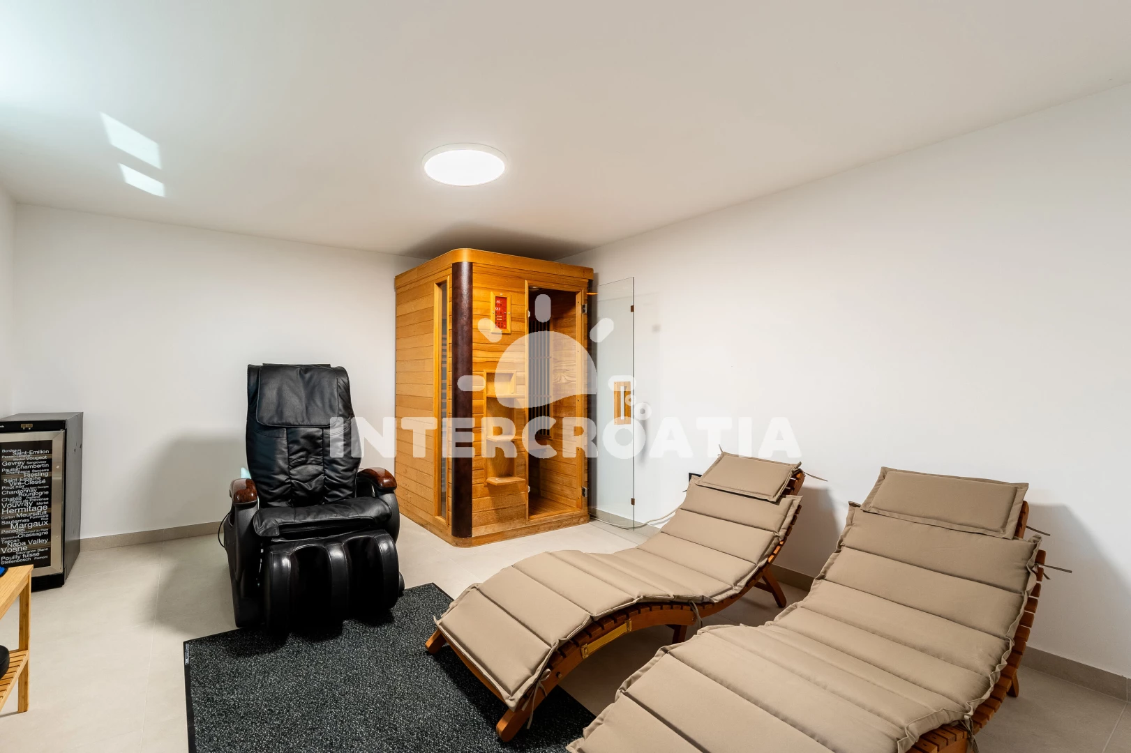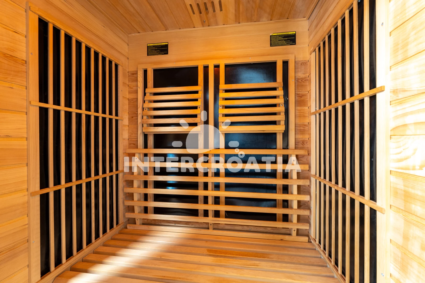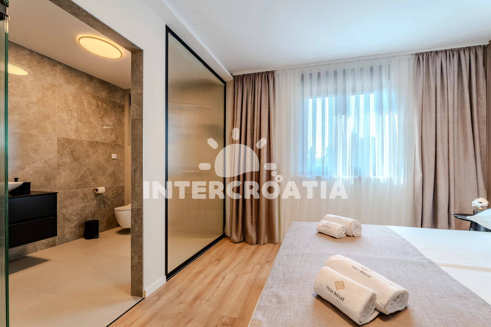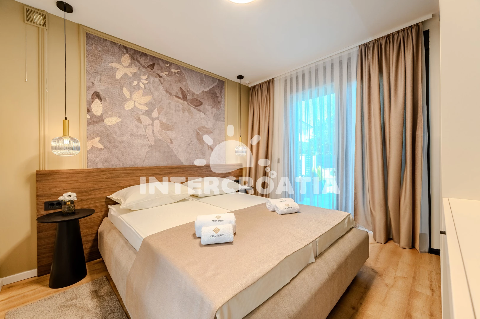 Vila (180 m2) s balkonem. Nachází se v přízemí objektu. Vila má 3 ložnice a je vhodná pro až 7 osob. Kuchyňská linka je vybavena varnou deskou, toustovačem, troubou, nádobím, lednicí. V obývací místnosti je rozložitelná pohovka (extra lůžko pro 1 osobu). K dispozici televize se satelitním programem, sejf, žehlička. První ložnice s dvoulůžkem. Druhá ložnice s dvoulůžkem. Třetí ložnice s dvoulůžkem. První koupelna se sprchovým koutem, umyvadlem, WC. Druhá koupelna se sprchovým koutem, umyvadlem, WC. Třetí koupelna se sprchovým koutem, umyvadlem, WC.