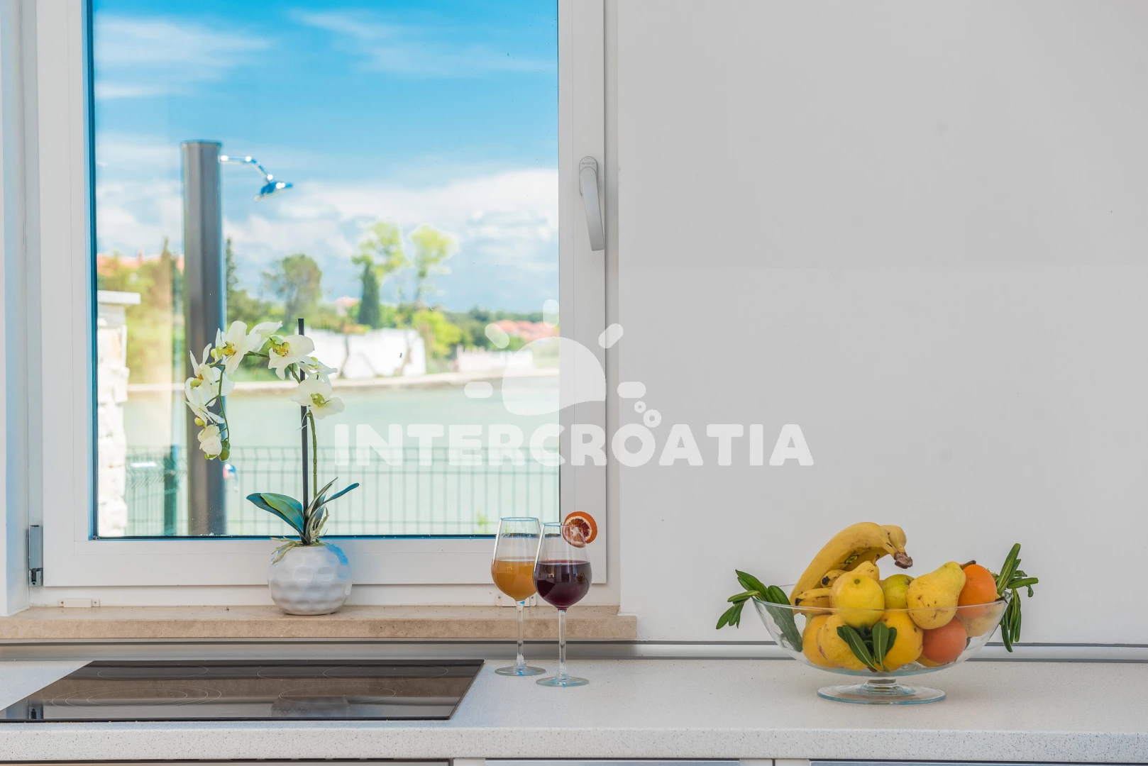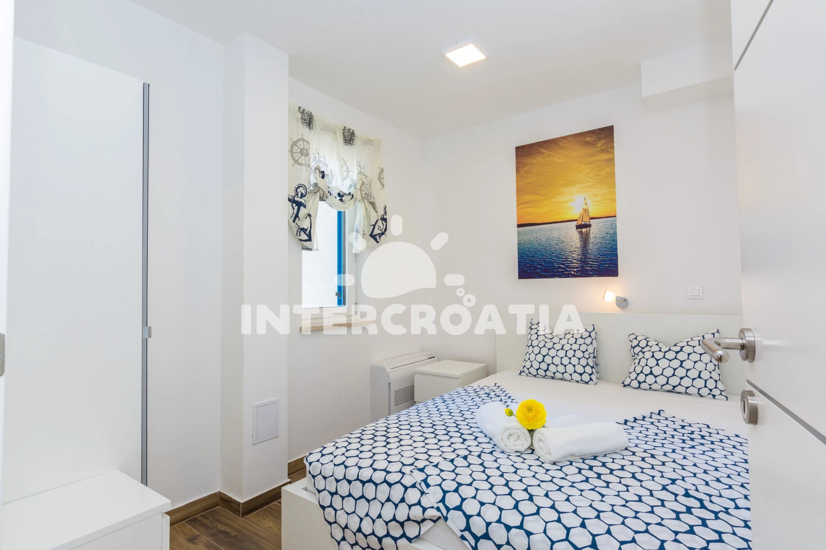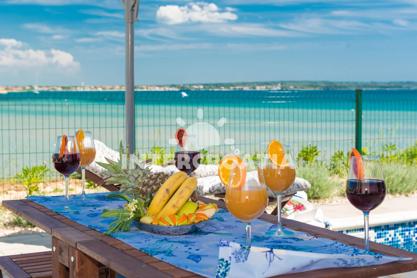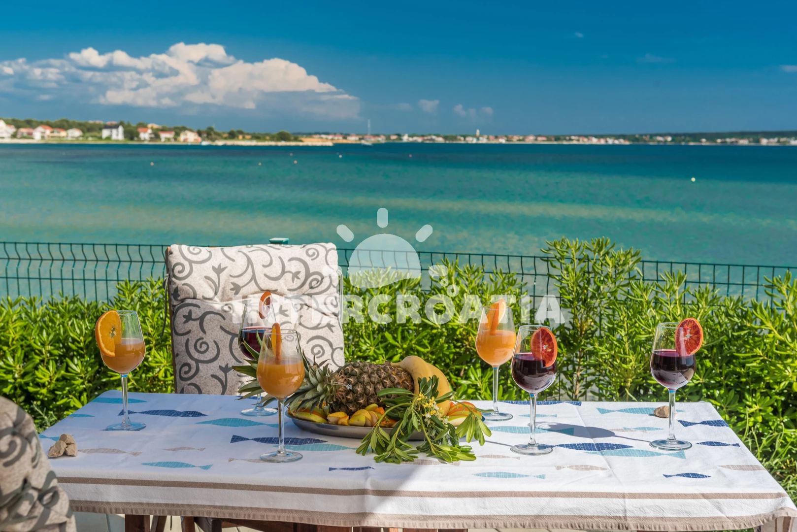 Vzdálenosti: Moře 5 m, pláž 5 m (písčitá a betonové desky), půjčovna kol 5 m, marina 100 m, restaurace 200 m, supermarket 200 m, centrum 200 m, bar 200 m, veřejná doprava 500 m, čerpací stanice 1 km, tenisové kurty 1,5 km, ambulance 2 km, banka 2 km, lékárna 2 km, pošta 2 km, směnárna 2 km, muzeum 6 km, trajekt (Zadar) 20 km, letiště (Zadar) 20 km, park Plitvice 55 km,