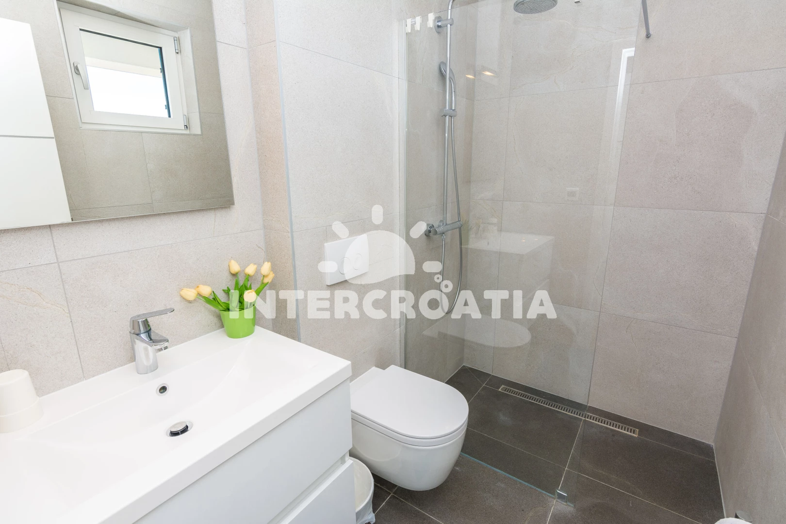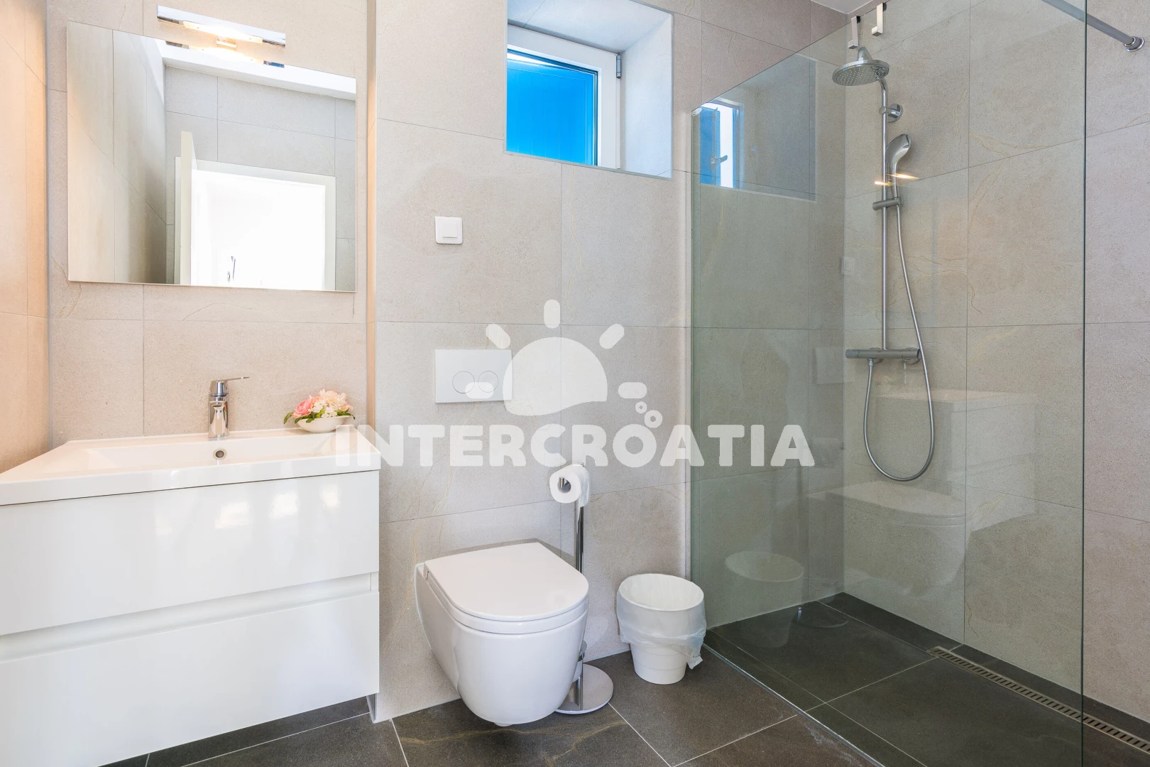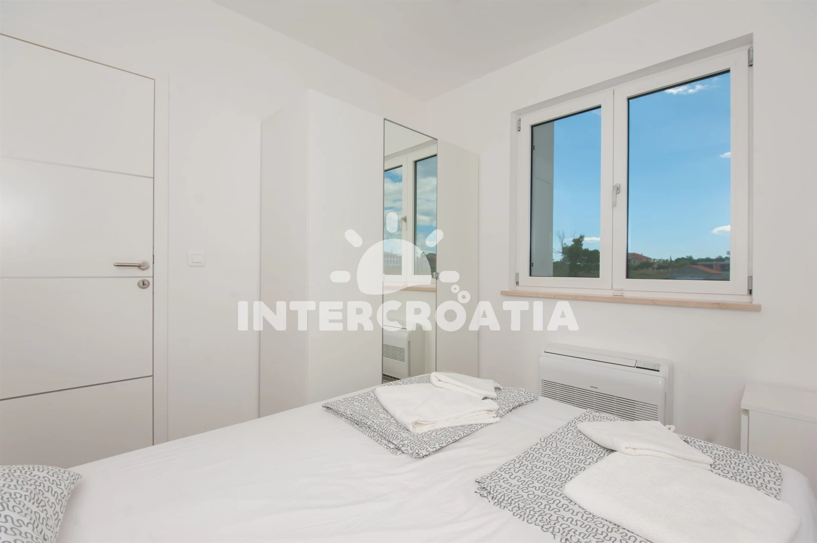 Vzdálenosti: Moře 5 m, pláž 5 m (písčitá a betonové desky), půjčovna kol 5 m, marina 100 m, restaurace 200 m, supermarket 200 m, centrum 200 m, bar 200 m, veřejná doprava 500 m, čerpací stanice 1 km, tenisové kurty 1,5 km, ambulance 2 km, banka 2 km, lékárna 2 km, pošta 2 km, směnárna 2 km, muzeum 6 km, trajekt (Zadar) 20 km, letiště (Zadar) 20 km, park Plitvice 55 km,