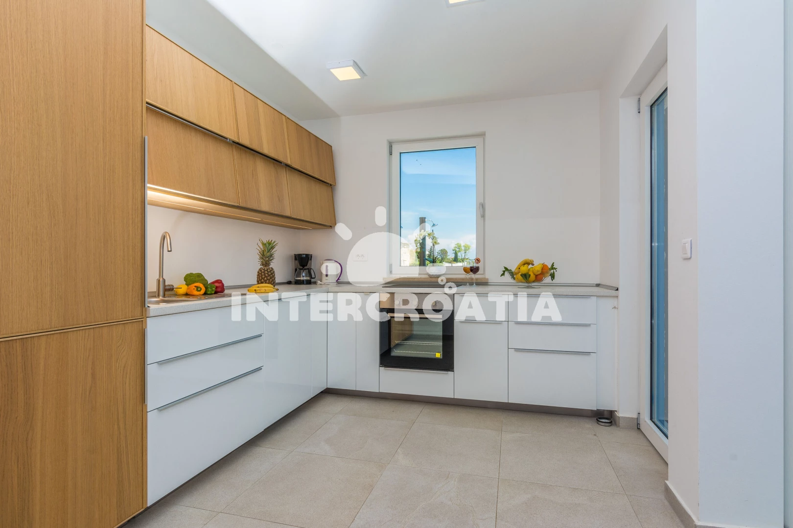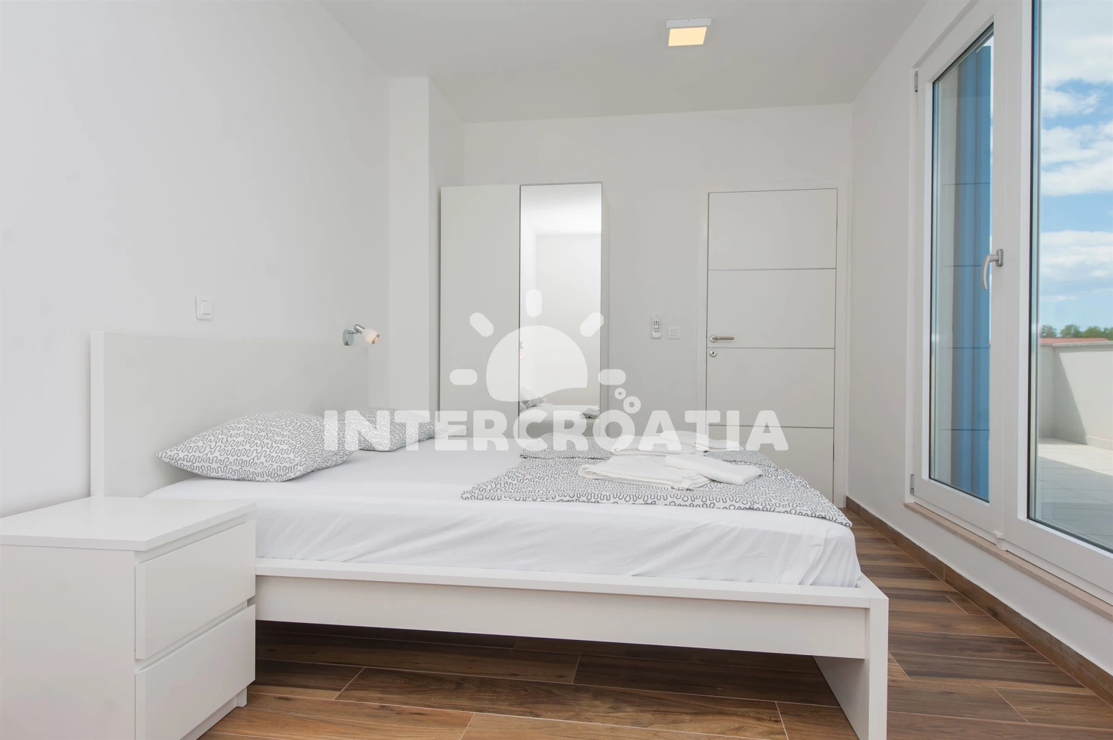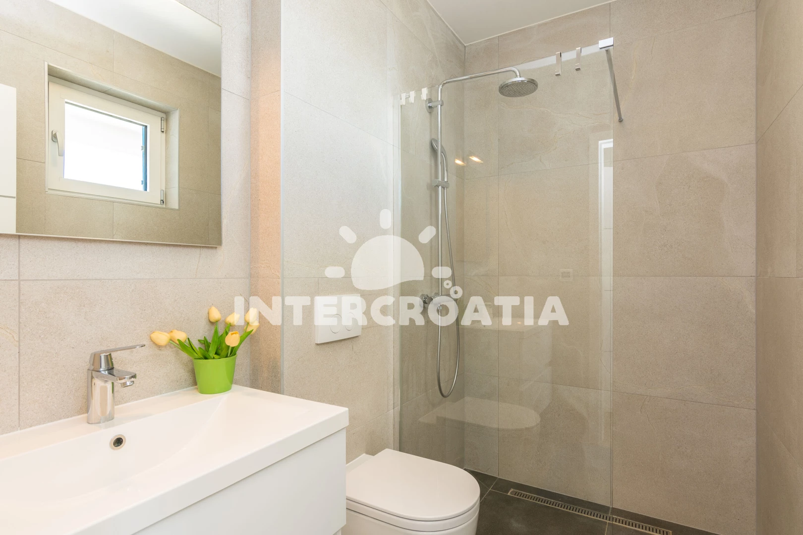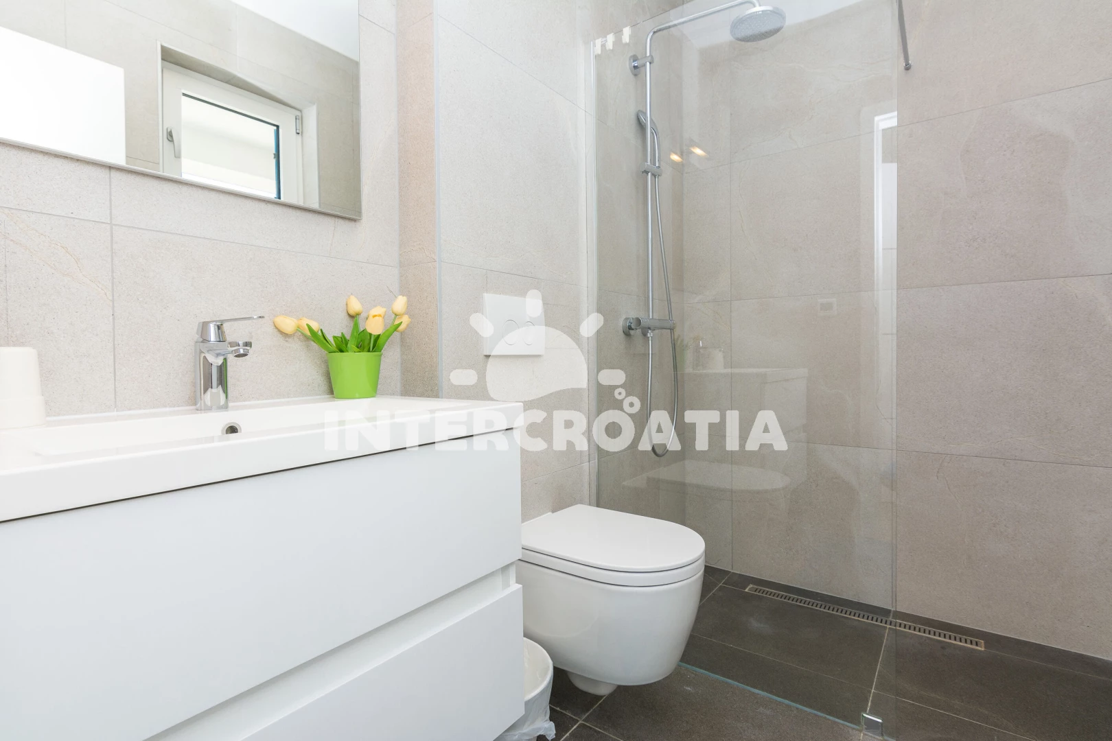 Vzdálenosti: Moře 5 m, pláž 5 m (písčitá a betonové desky), půjčovna kol 5 m, marina 100 m, restaurace 200 m, supermarket 200 m, centrum 200 m, bar 200 m, veřejná doprava 500 m, čerpací stanice 1 km, tenisové kurty 1,5 km, ambulance 2 km, banka 2 km, lékárna 2 km, pošta 2 km, směnárna 2 km, muzeum 6 km, trajekt (Zadar) 20 km, letiště (Zadar) 20 km, park Plitvice 55 km,