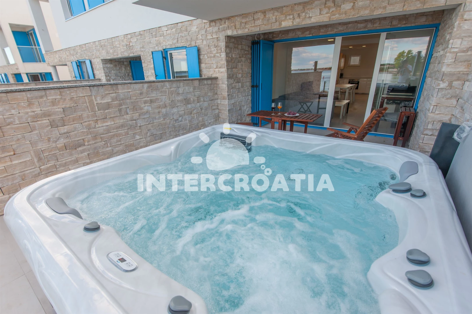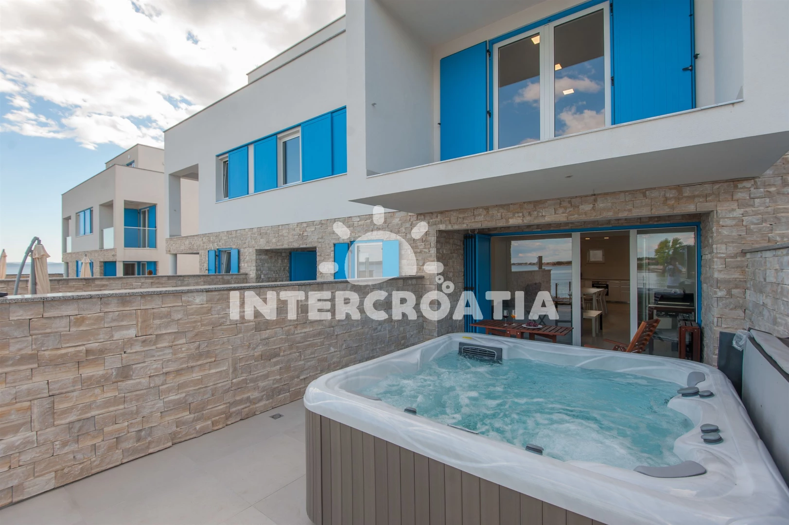 Vila se nachází 10 m od moře a pláže. Pláž je písčitá a betonové desky. K dispozici vířivka. Parkování je před domem.
