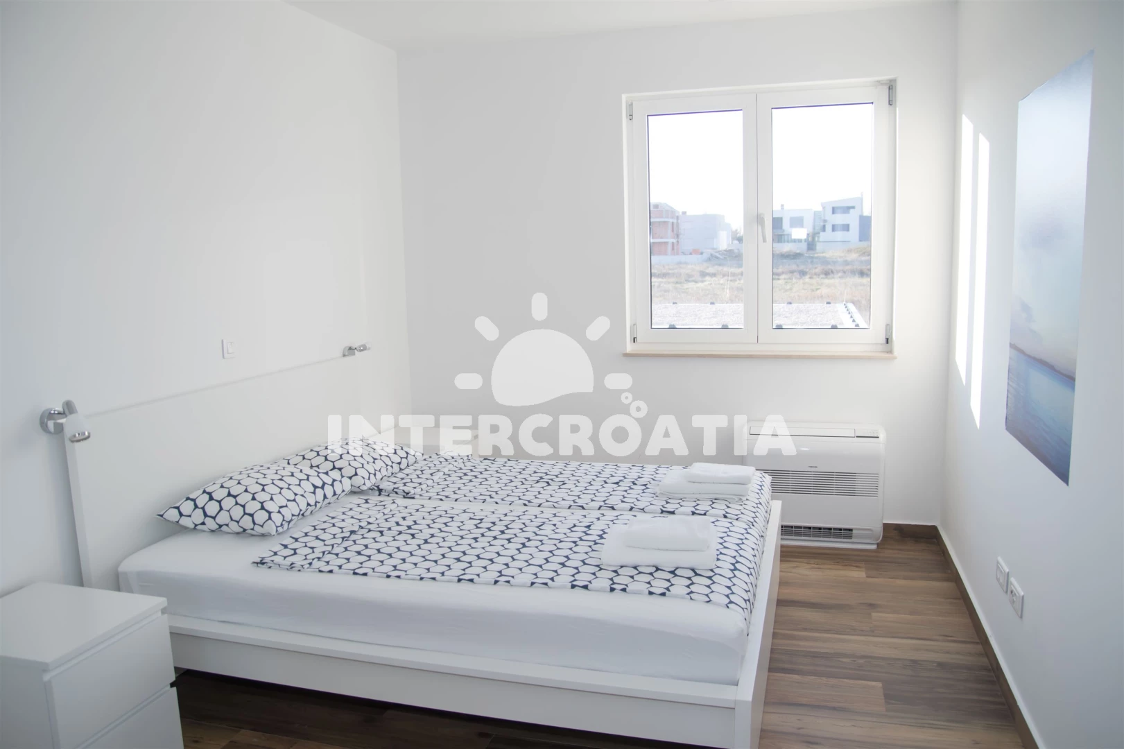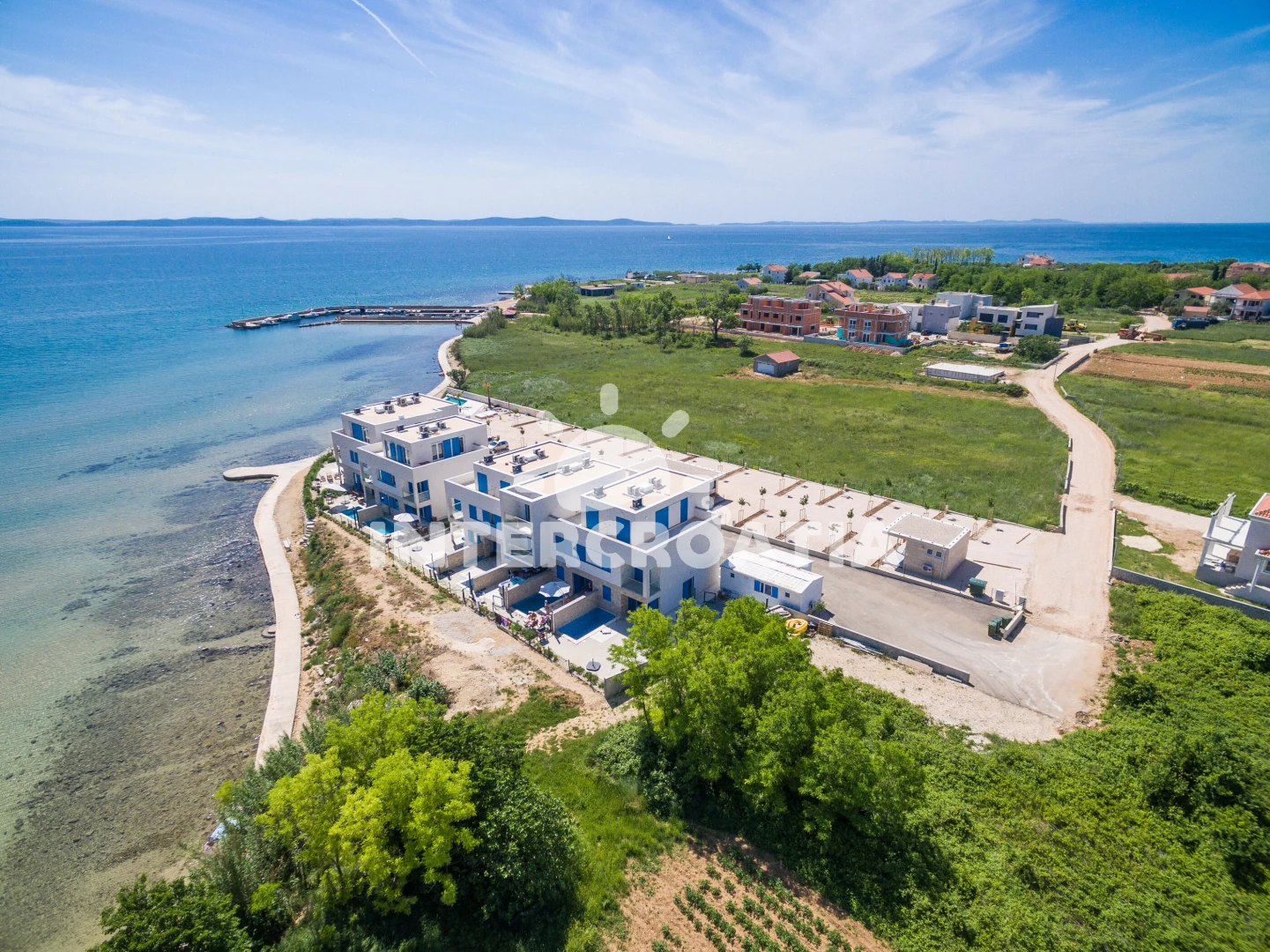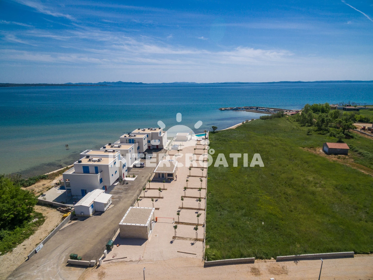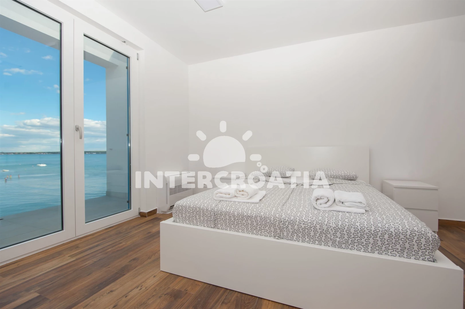 Vzdálenosti: Moře 10 m, pláž 10 m (písčitá a betonové desky), půjčovna kol 5 m, marina 100 m, bar 200 m, centrum 200 m, restaurace 200 m, supermarket 200 m, veřejná doprava 500 m, čerpací stanice 1 km, tenisové kurty 1,5 km, lékárna 2 km, pošta 2 km, směnárna 2 km, banka 2 km, ambulance 2 km, muzeum 20 km, trajekt (Zadar) 20 km, letiště (Zadar) 20 km, park Plitvice 55 km,
