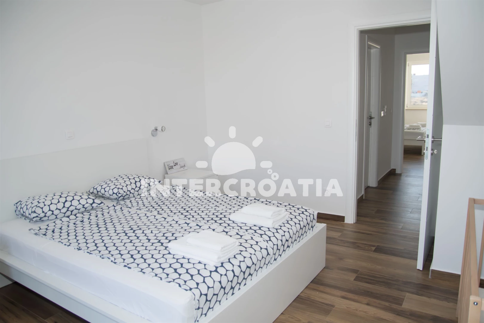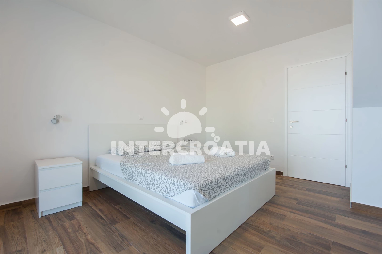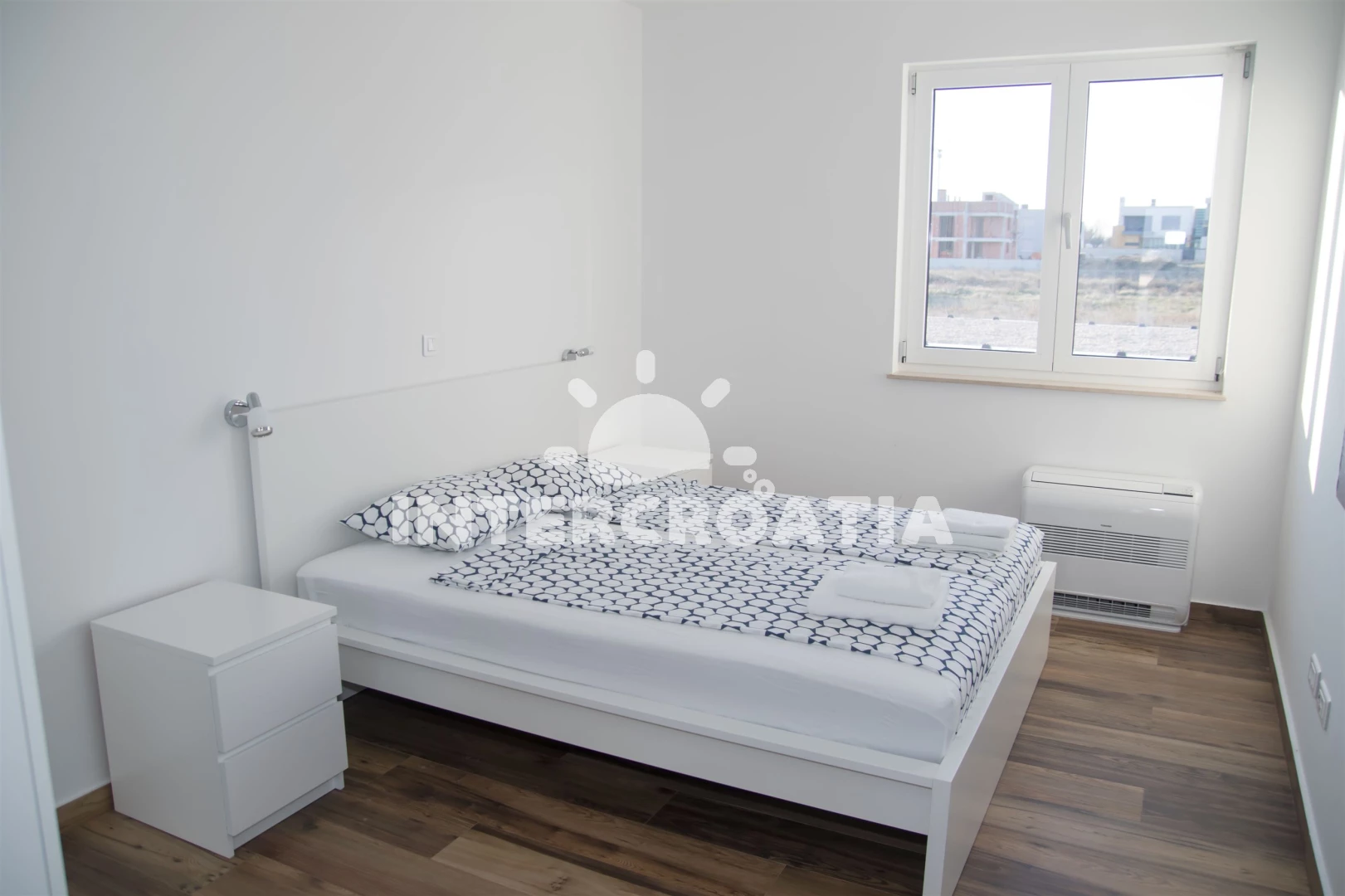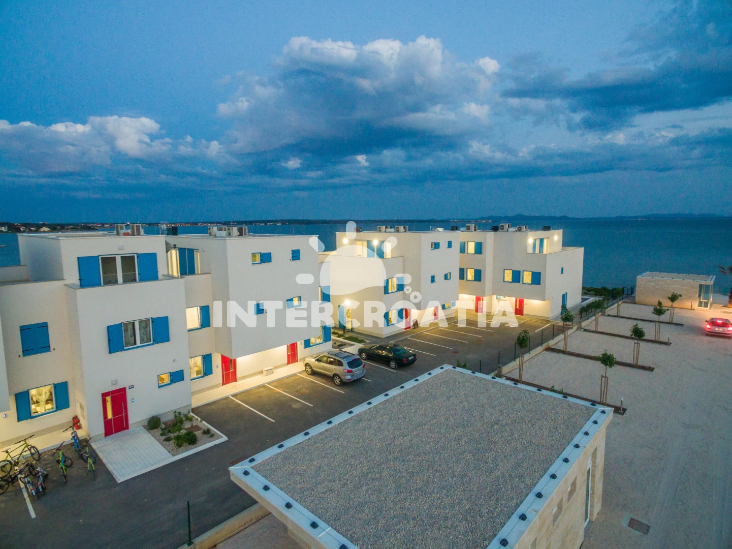 Vzdálenosti: Moře 10 m, pláž 10 m (písčitá a betonové desky), půjčovna kol 5 m, marina 100 m, bar 200 m, centrum 200 m, restaurace 200 m, supermarket 200 m, veřejná doprava 500 m, čerpací stanice 1 km, tenisové kurty 1,5 km, lékárna 2 km, pošta 2 km, směnárna 2 km, banka 2 km, ambulance 2 km, muzeum 20 km, trajekt (Zadar) 20 km, letiště (Zadar) 20 km, park Plitvice 55 km,