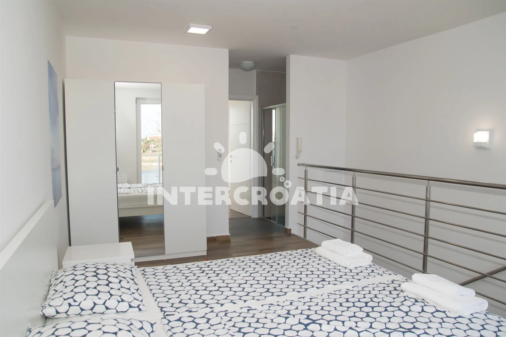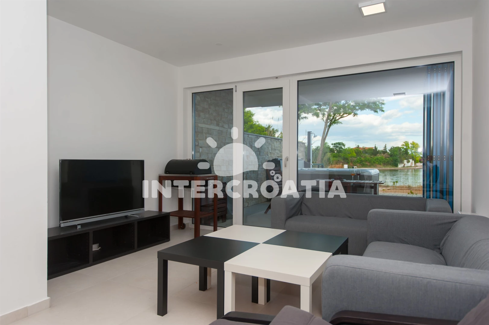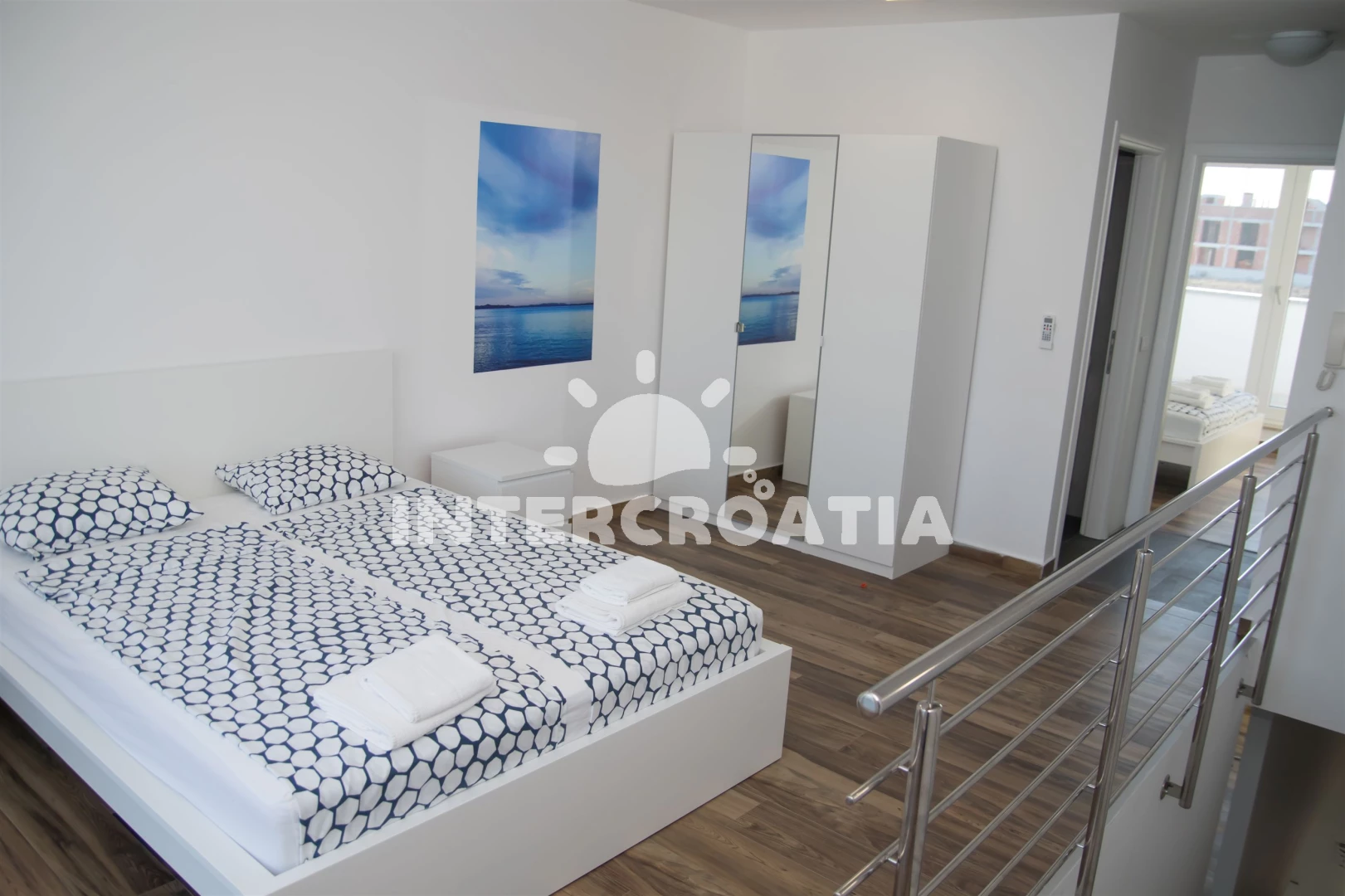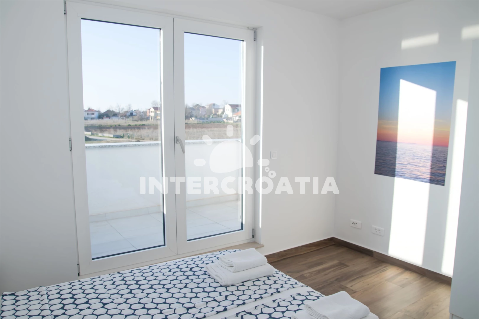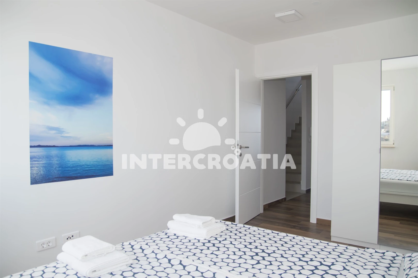 Vzdálenosti: Moře 10 m, pláž 10 m (písčitá a betonové desky), půjčovna kol 5 m, marina 100 m, bar 200 m, centrum 200 m, restaurace 200 m, supermarket 200 m, veřejná doprava 500 m, čerpací stanice 1 km, tenisové kurty 1,5 km, lékárna 2 km, pošta 2 km, směnárna 2 km, banka 2 km, ambulance 2 km, muzeum 20 km, trajekt (Zadar) 20 km, letiště (Zadar) 20 km, park Plitvice 55 km,