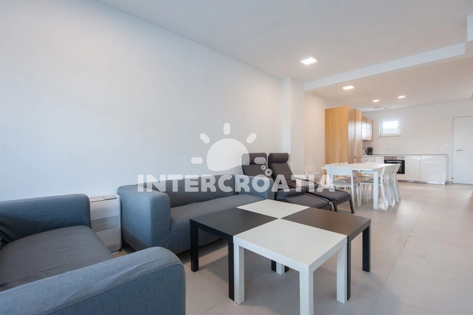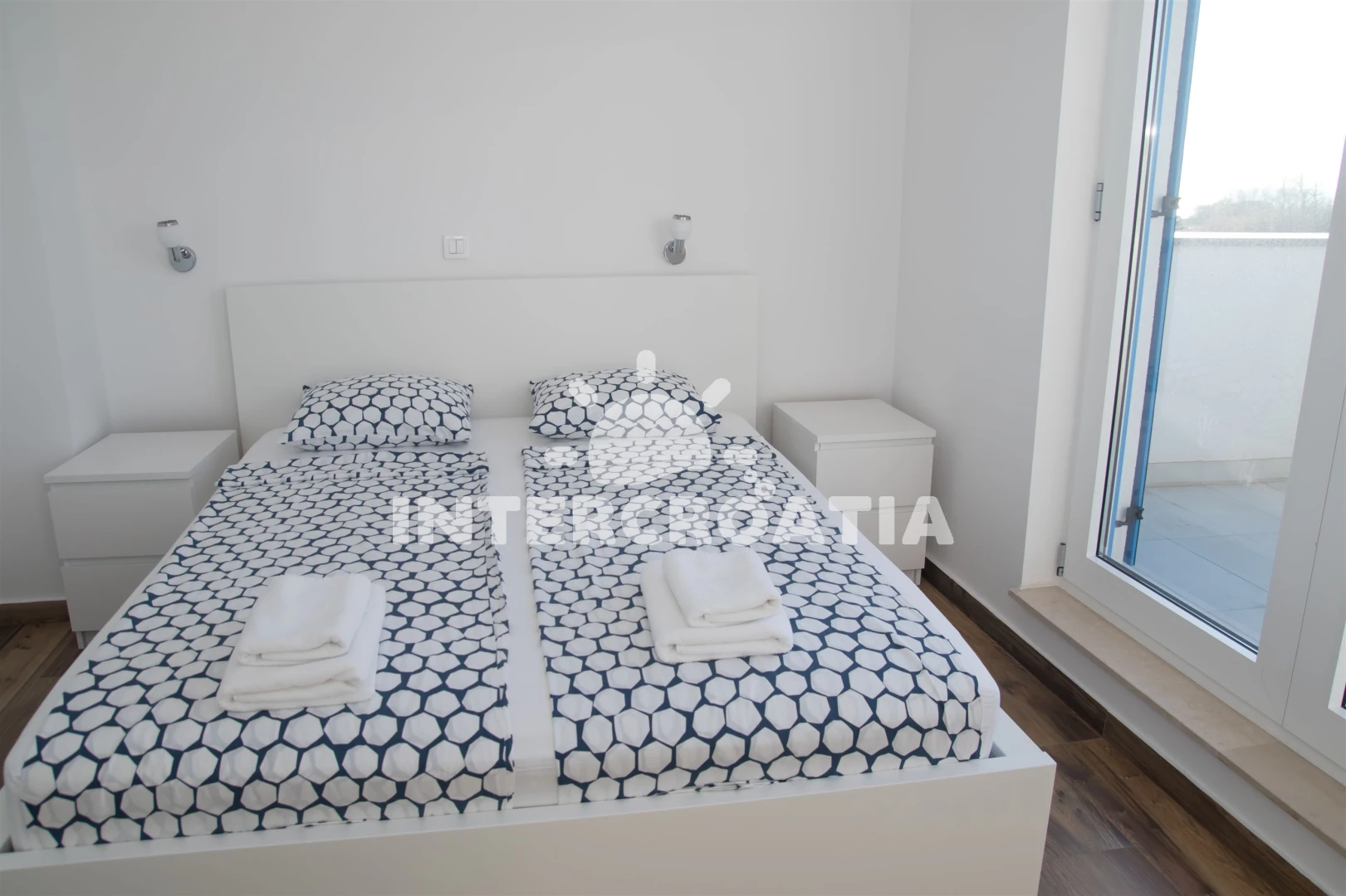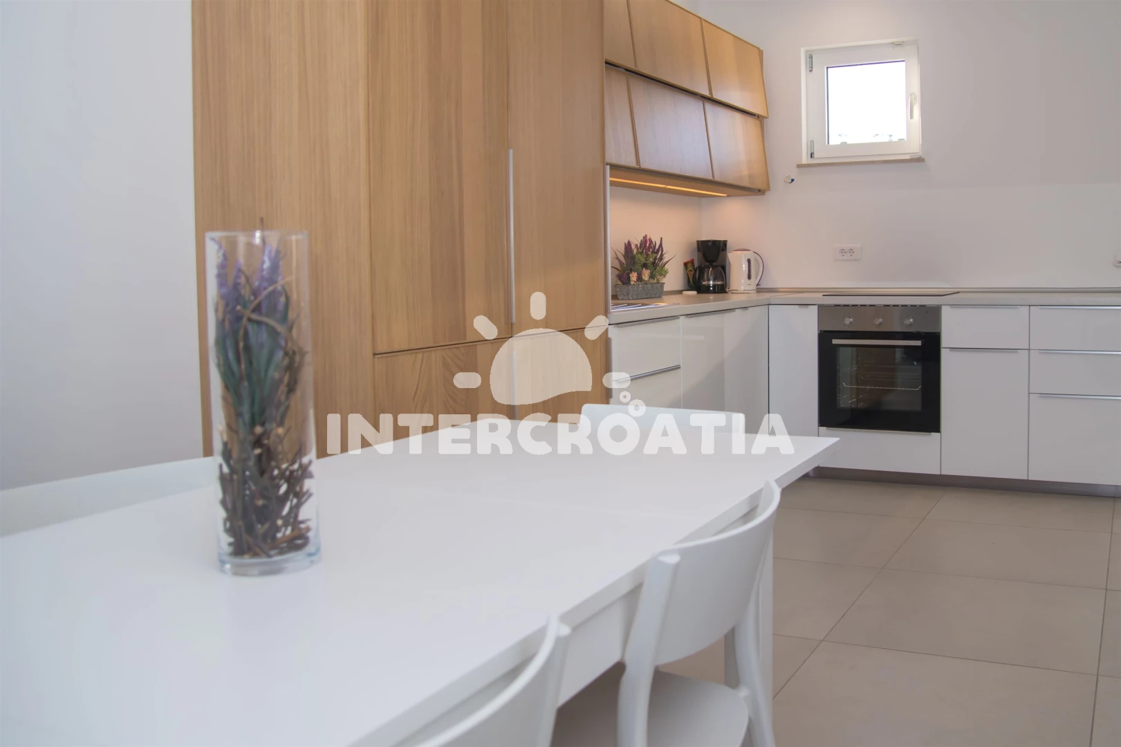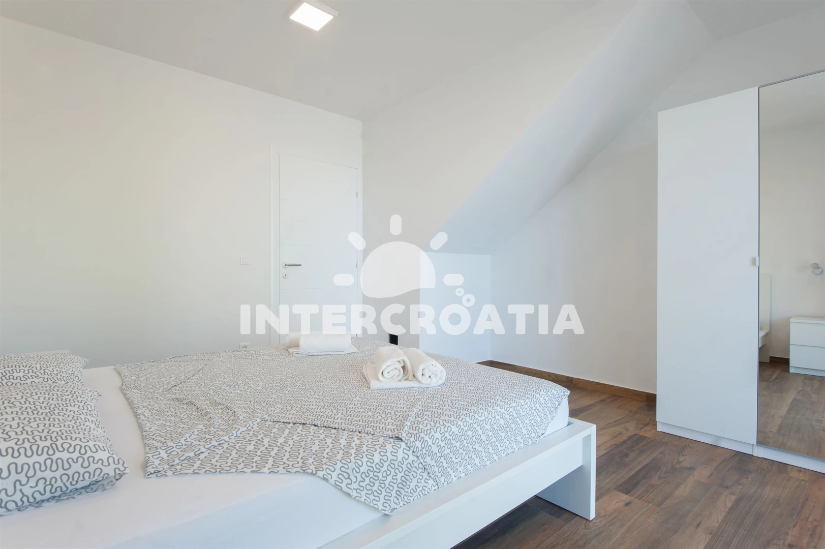 Vzdálenosti: Moře 10 m, pláž 10 m (písčitá a betonové desky), půjčovna kol 5 m, marina 100 m, bar 200 m, centrum 200 m, restaurace 200 m, supermarket 200 m, veřejná doprava 500 m, čerpací stanice 1 km, tenisové kurty 1,5 km, lékárna 2 km, pošta 2 km, směnárna 2 km, banka 2 km, ambulance 2 km, muzeum 20 km, trajekt (Zadar) 20 km, letiště (Zadar) 20 km, park Plitvice 55 km,