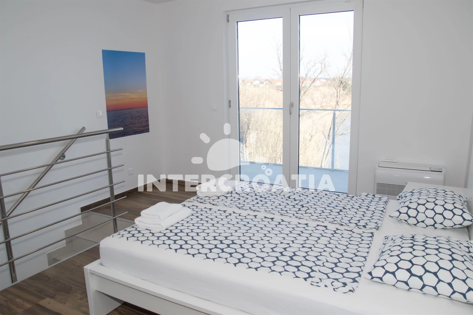 Vila (2) s balkonem. Vila má 4 ložnice a je vhodná pro až 6 osob. Kuchyňská linka je vybavena varnou deskou, toustovačem, troubou, kávovarem, myčkou na nádobí, rychlovarnou konvicí, nádobím, lednicí,…