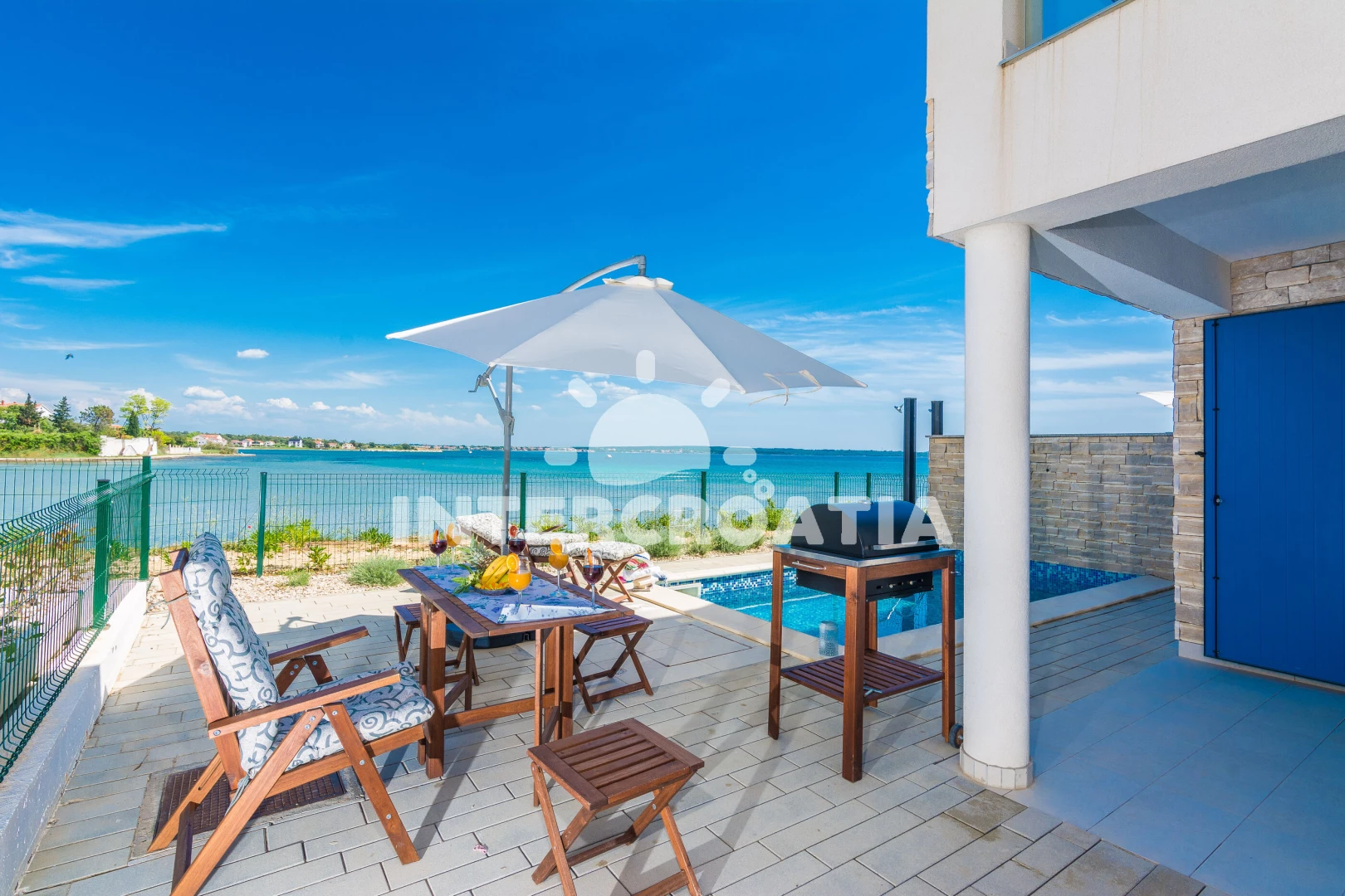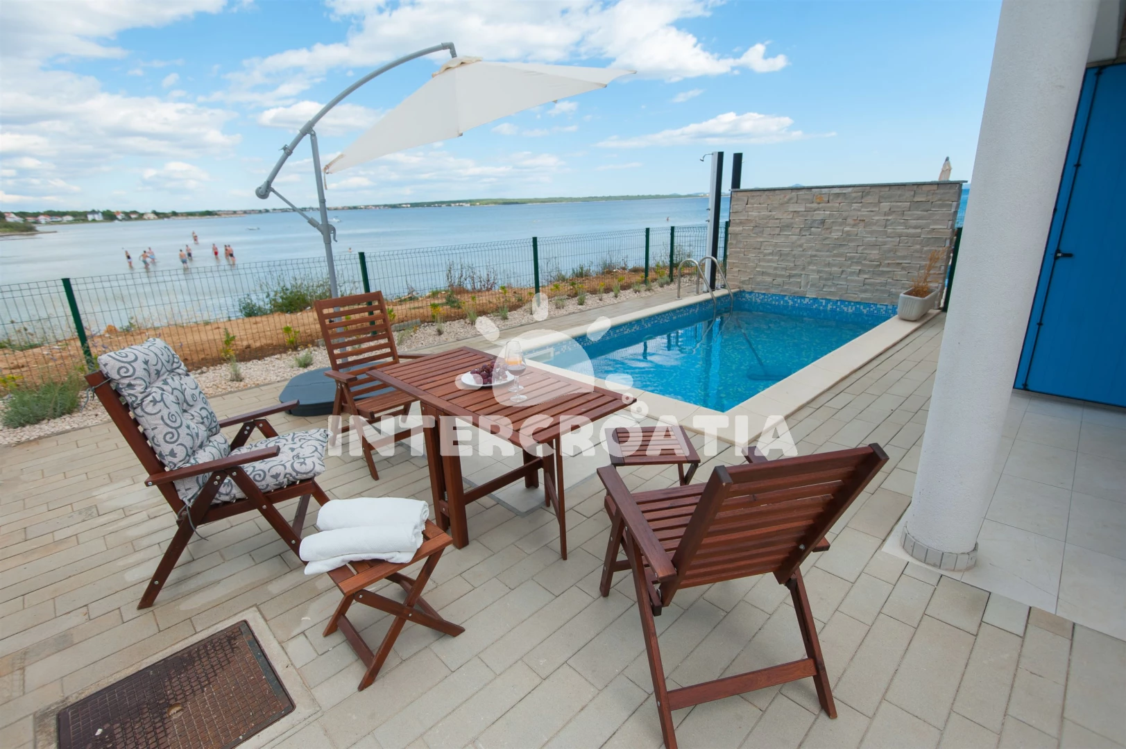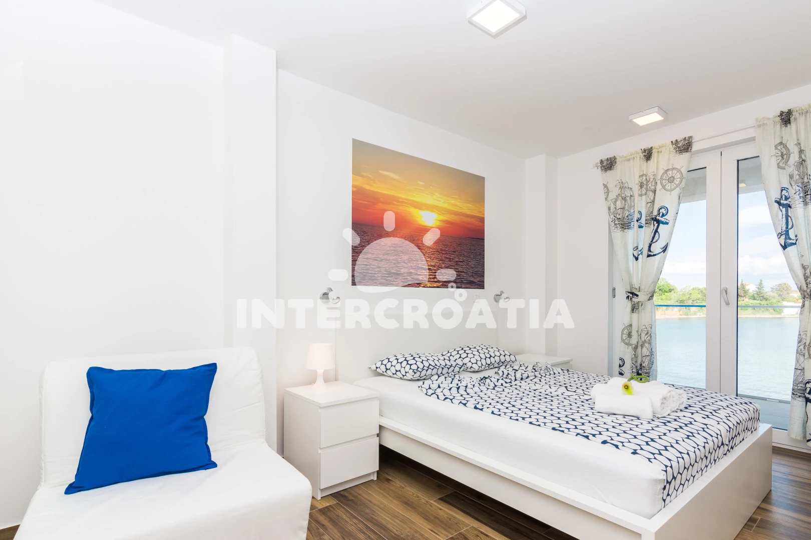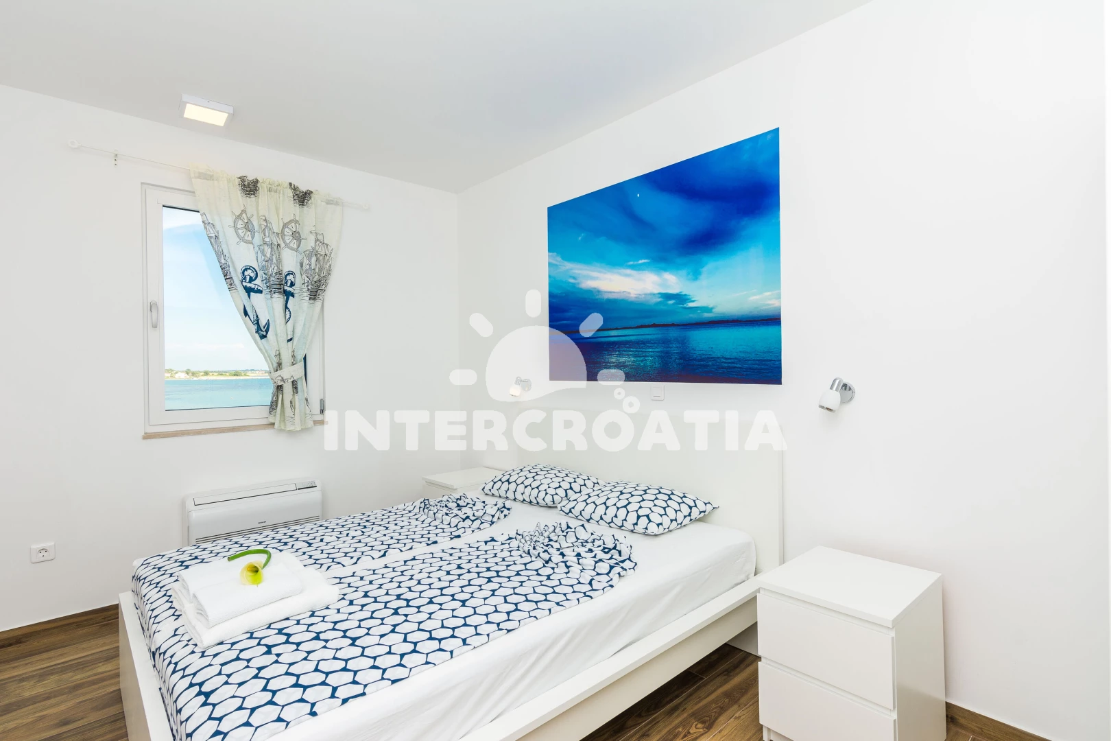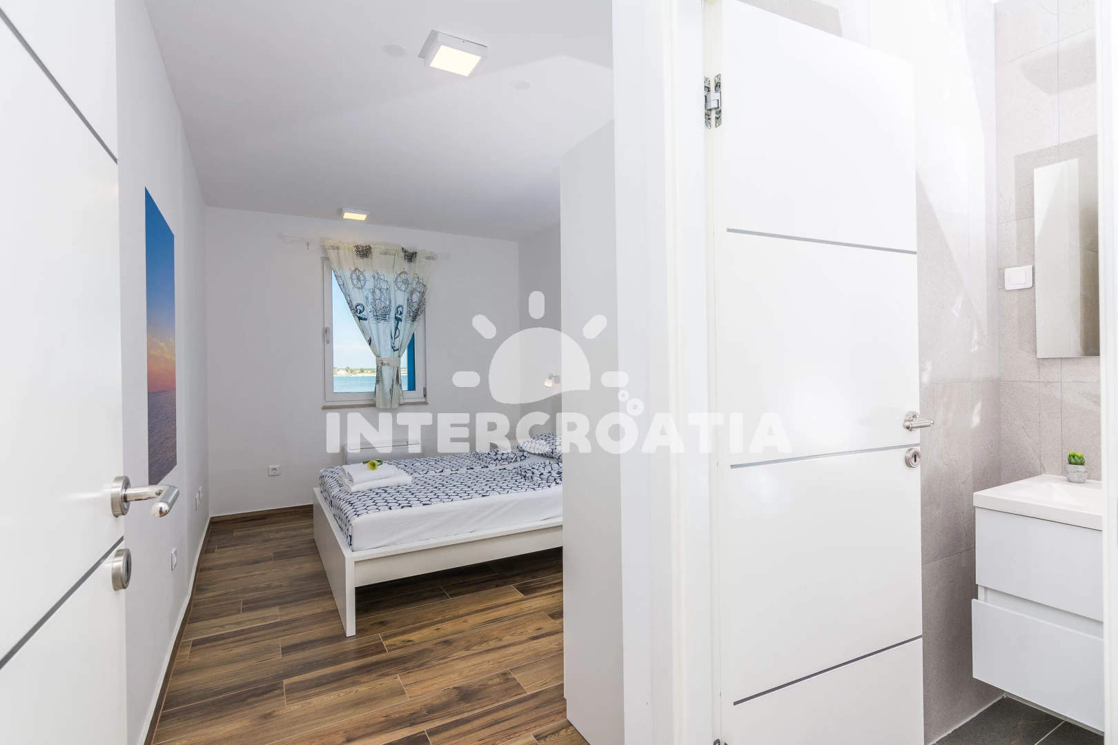 Vzdálenosti: Moře 10 m, pláž 10 m (písčitá a betonové desky), půjčovna kol 5 m, bar 100 m, marina 100 m, centrum 200 m, supermarket 200 m, restaurace 200 m, veřejná doprava 500 m, čerpací stanice 1 km, lékárna 2 km, pošta 2 km, směnárna 2 km, banka 2 km, ambulance 2 km, letiště (Zadar) 20 km, trajekt (Zadar) 20 km, muzeum 20 km, park Plitvice 55 km,