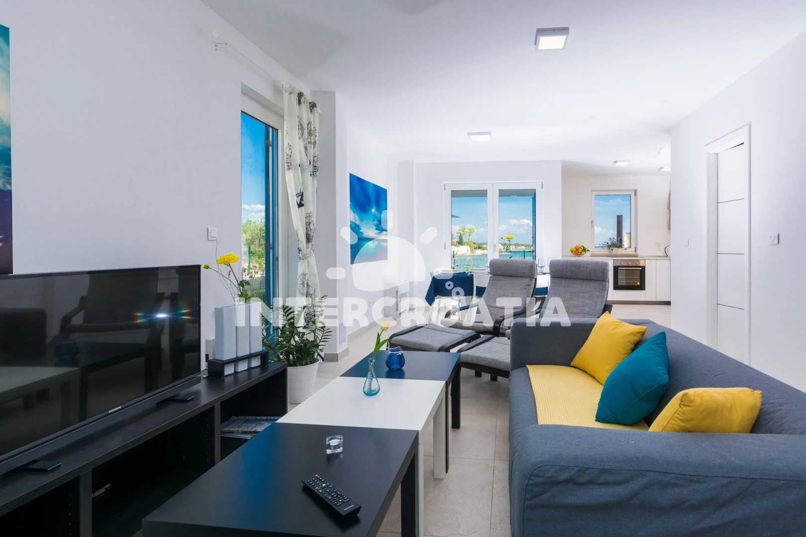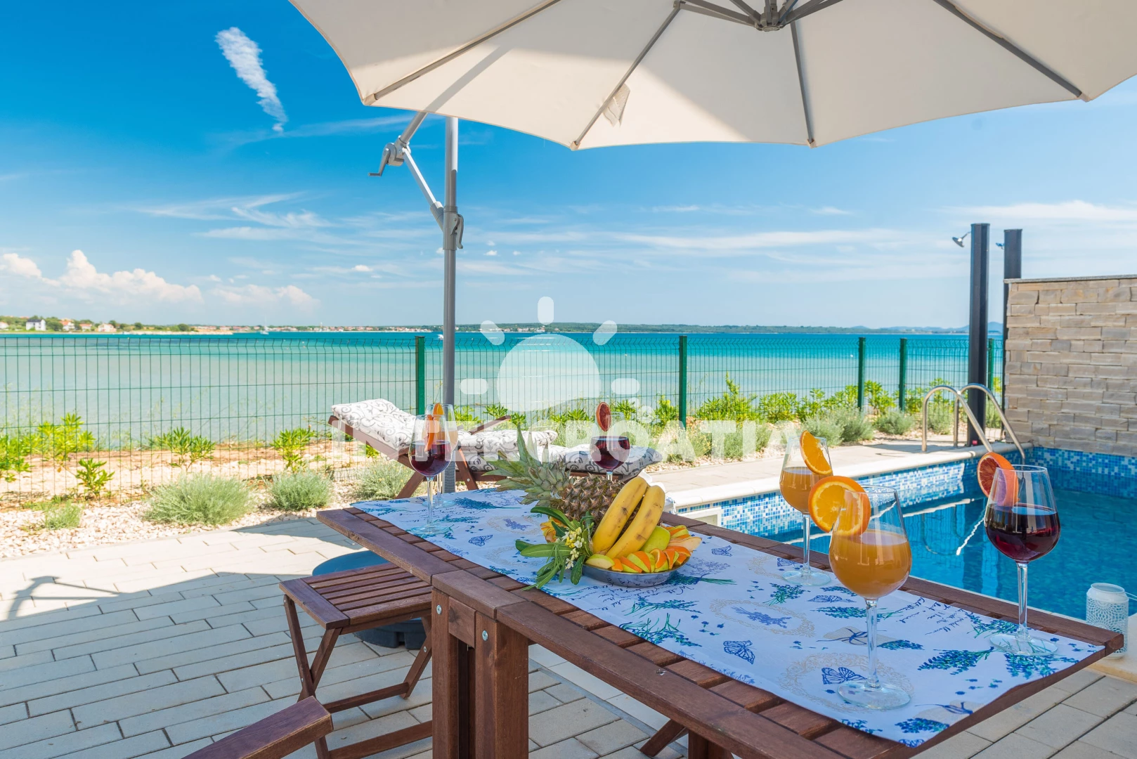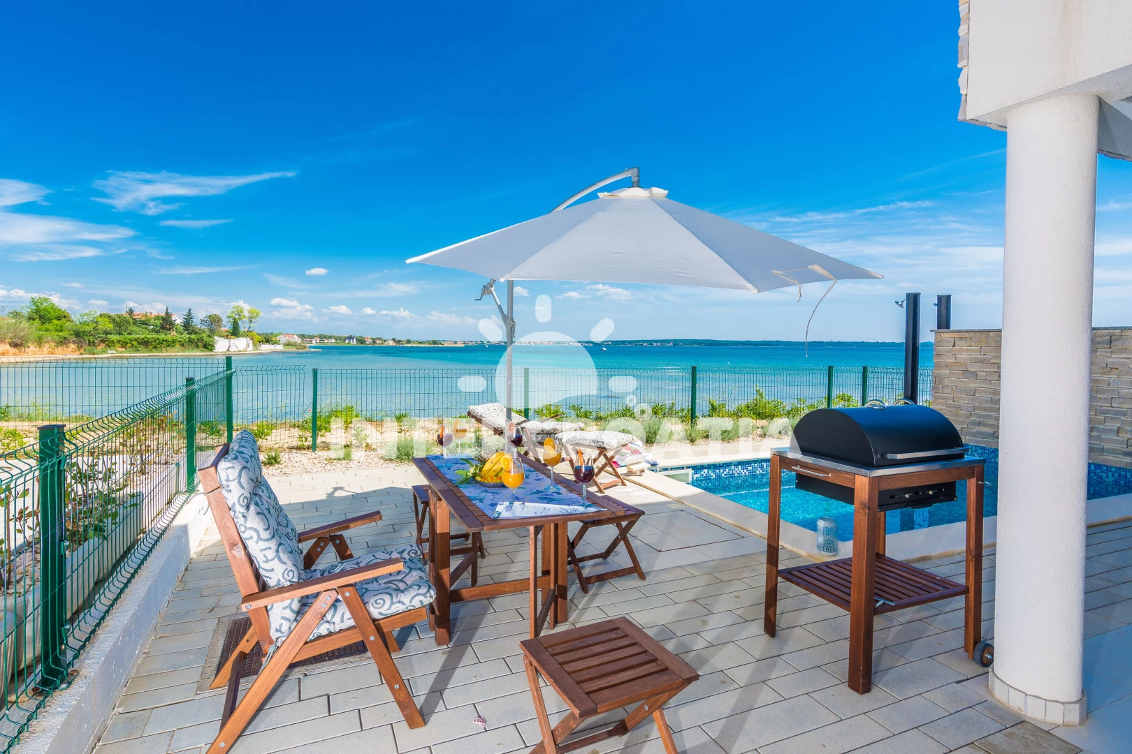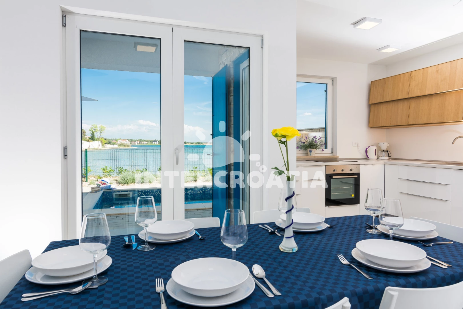 Vzdálenosti: Moře 10 m, pláž 10 m (písčitá a betonové desky), půjčovna kol 5 m, bar 100 m, marina 100 m, centrum 200 m, supermarket 200 m, restaurace 200 m, veřejná doprava 500 m, čerpací stanice 1 km, lékárna 2 km, pošta 2 km, směnárna 2 km, banka 2 km, ambulance 2 km, letiště (Zadar) 20 km, trajekt (Zadar) 20 km, muzeum 20 km, park Plitvice 55 km,