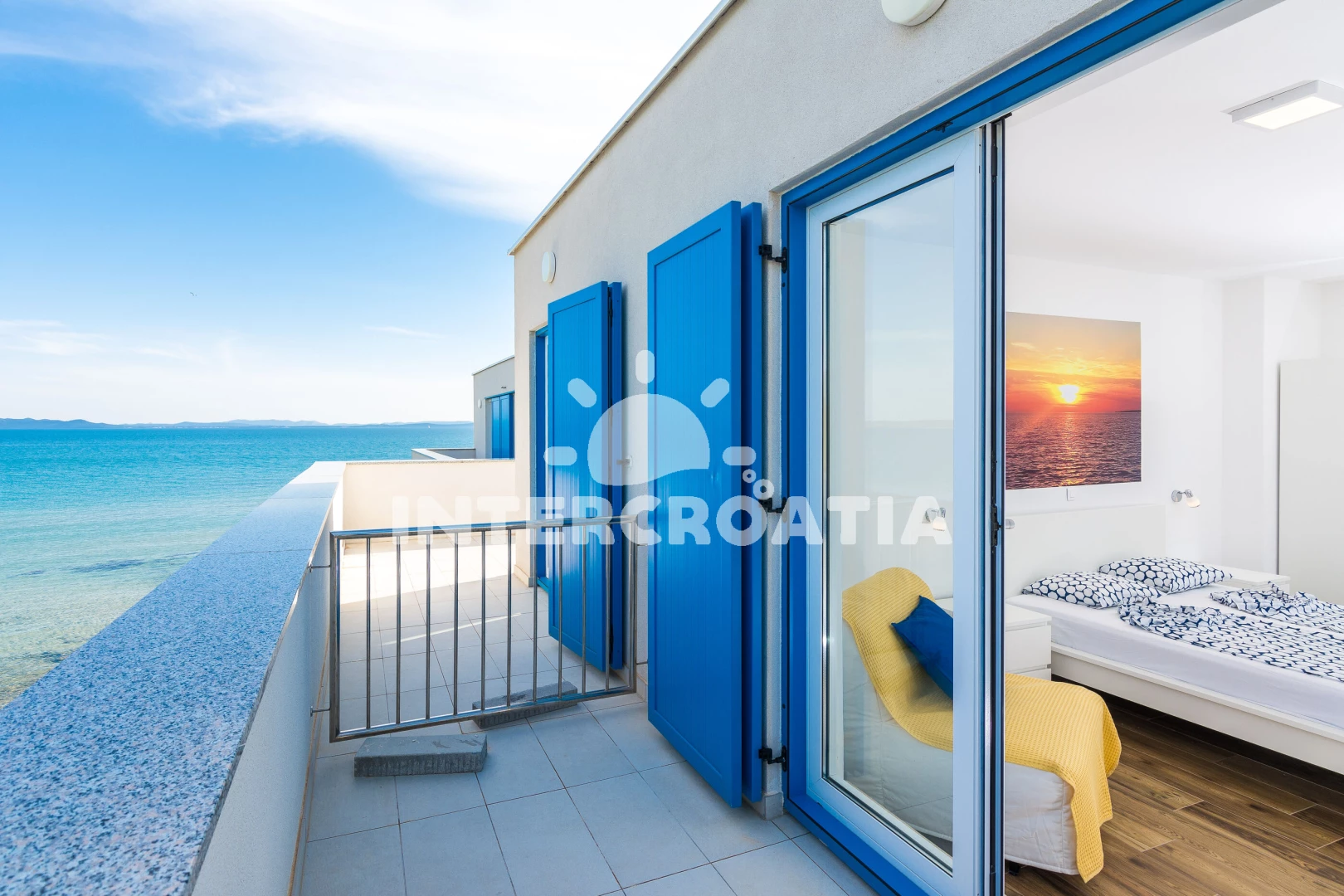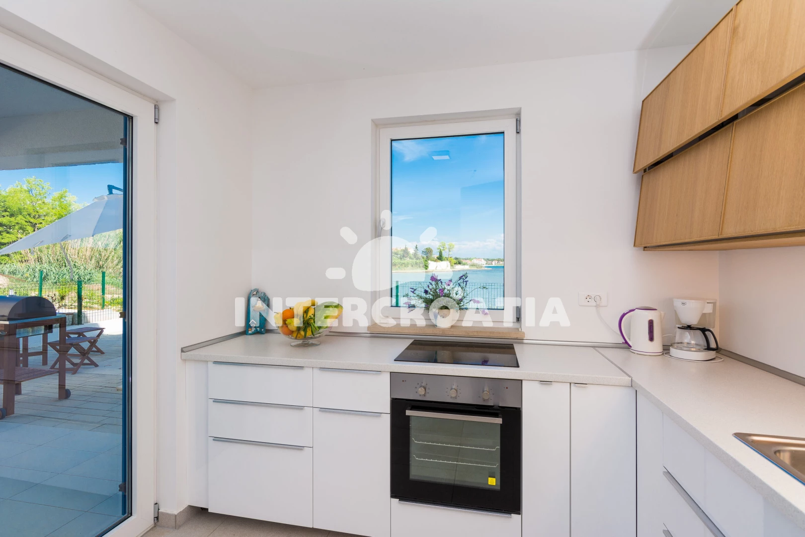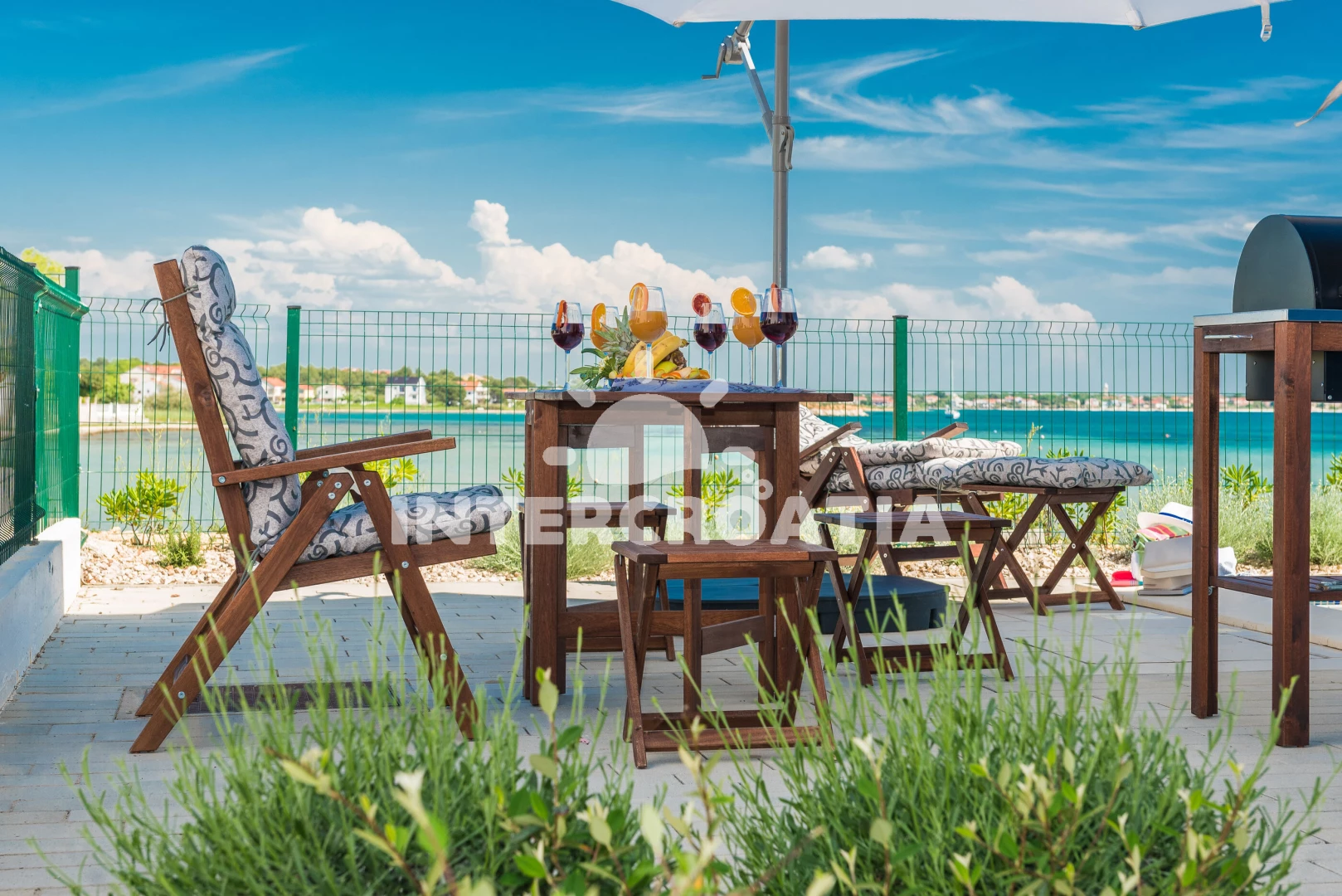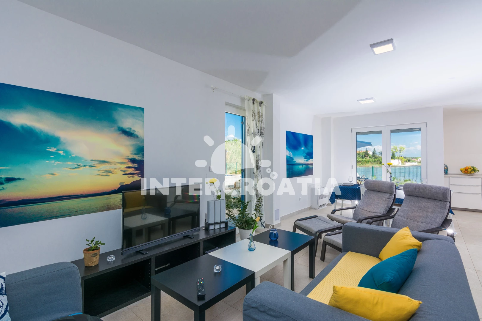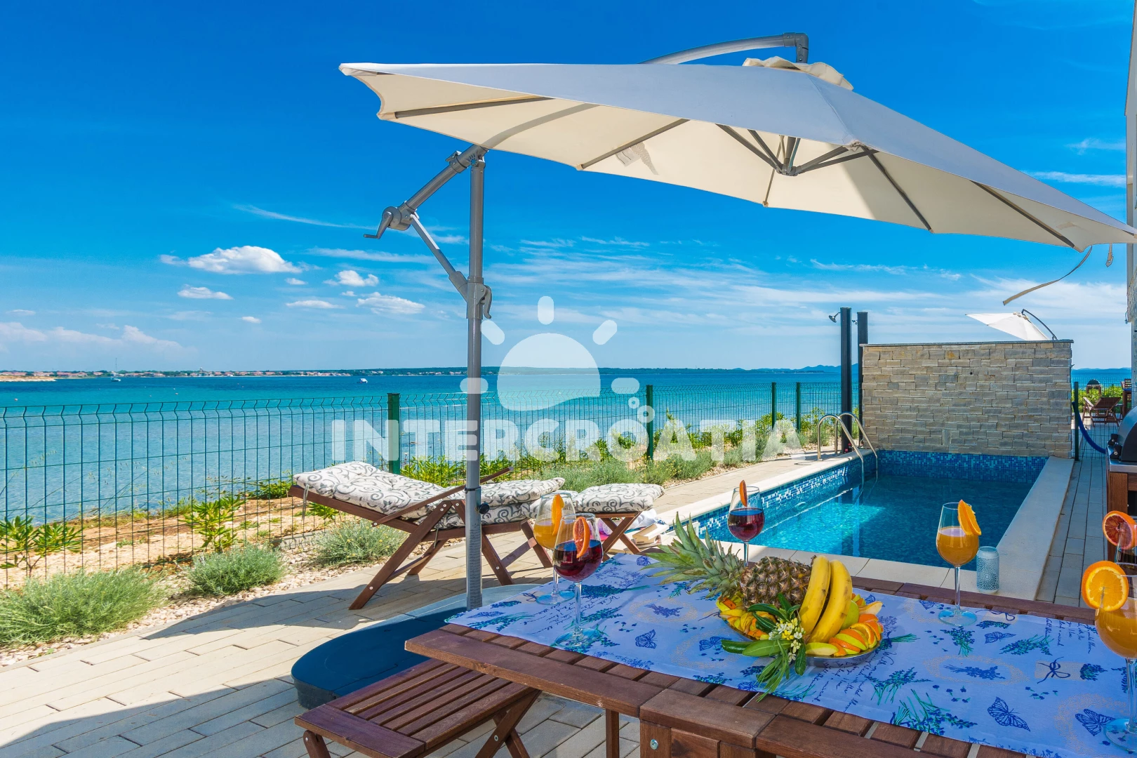 Vzdálenosti: Moře 10 m, pláž 10 m (písčitá a betonové desky), půjčovna kol 5 m, bar 100 m, marina 100 m, centrum 200 m, supermarket 200 m, restaurace 200 m, veřejná doprava 500 m, čerpací stanice 1 km, lékárna 2 km, pošta 2 km, směnárna 2 km, banka 2 km, ambulance 2 km, letiště (Zadar) 20 km, trajekt (Zadar) 20 km, muzeum 20 km, park Plitvice 55 km,