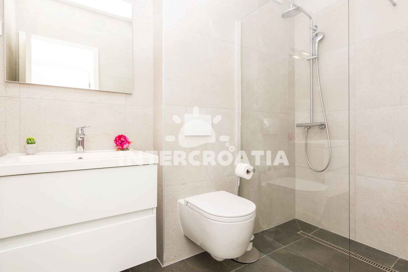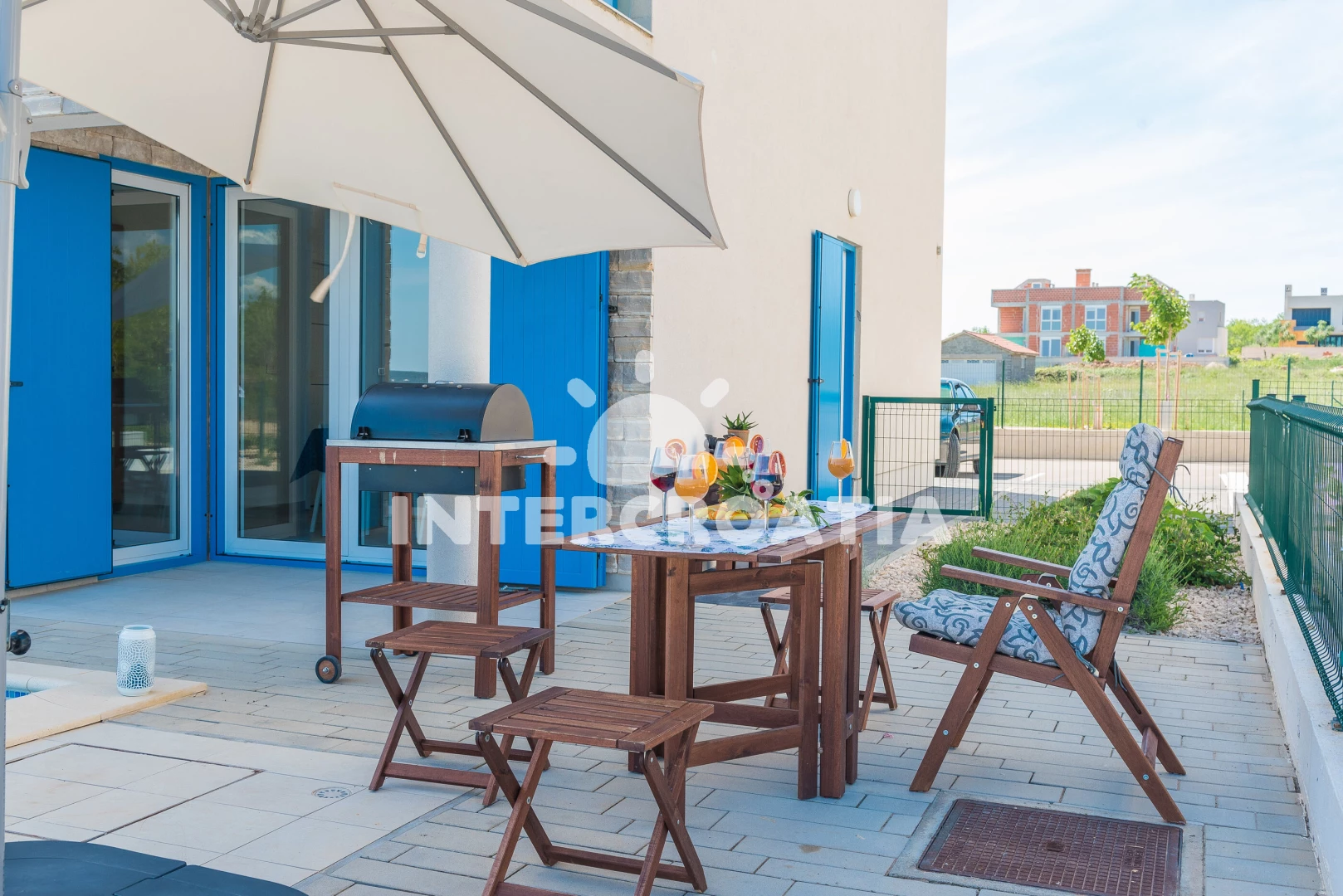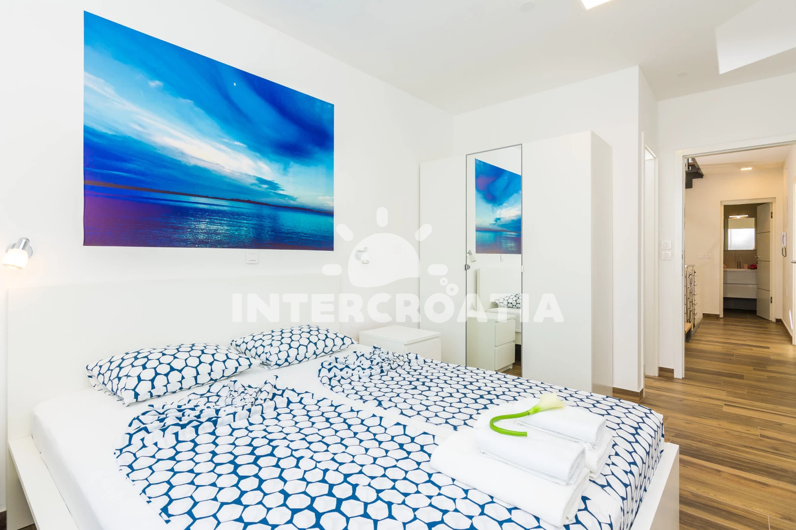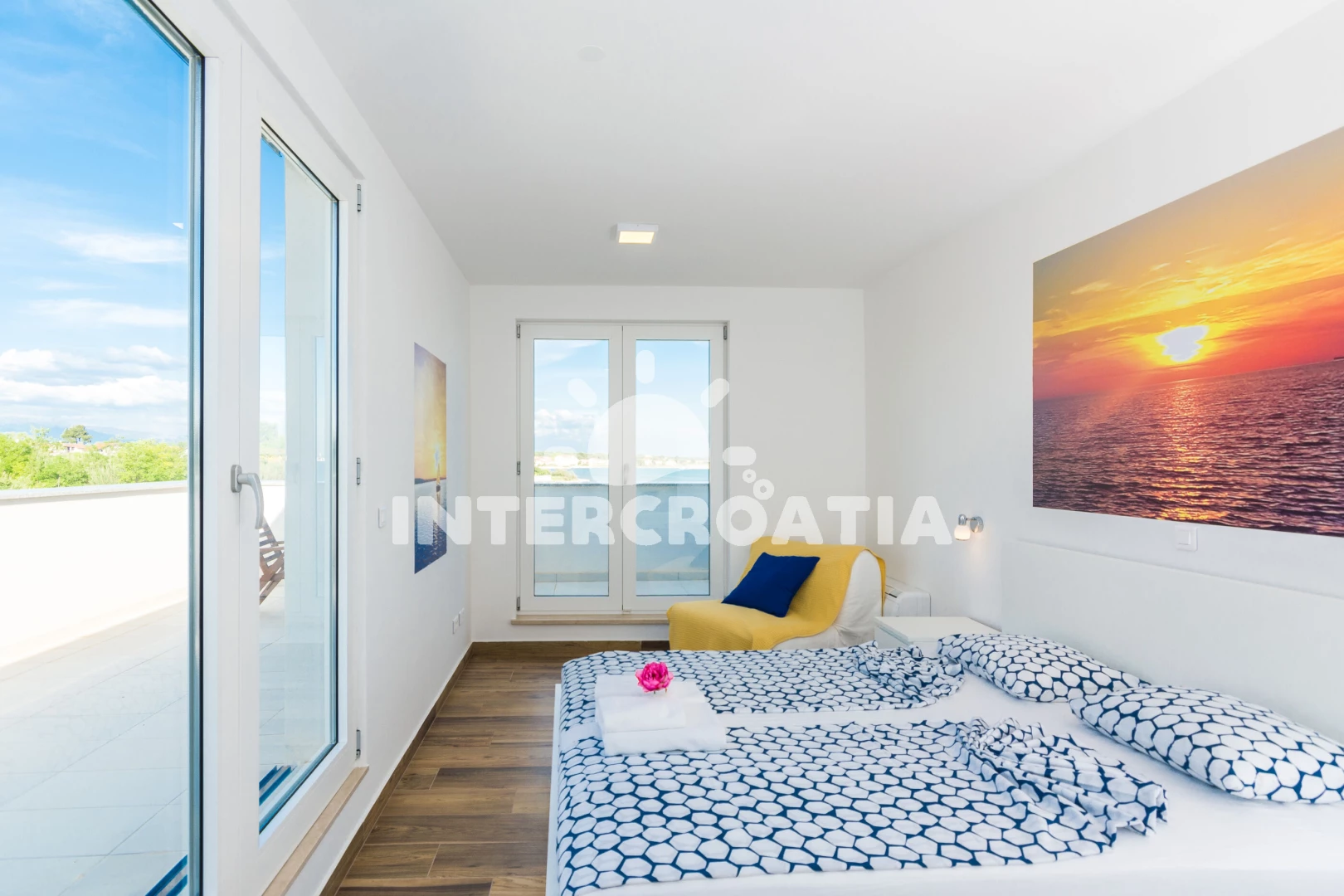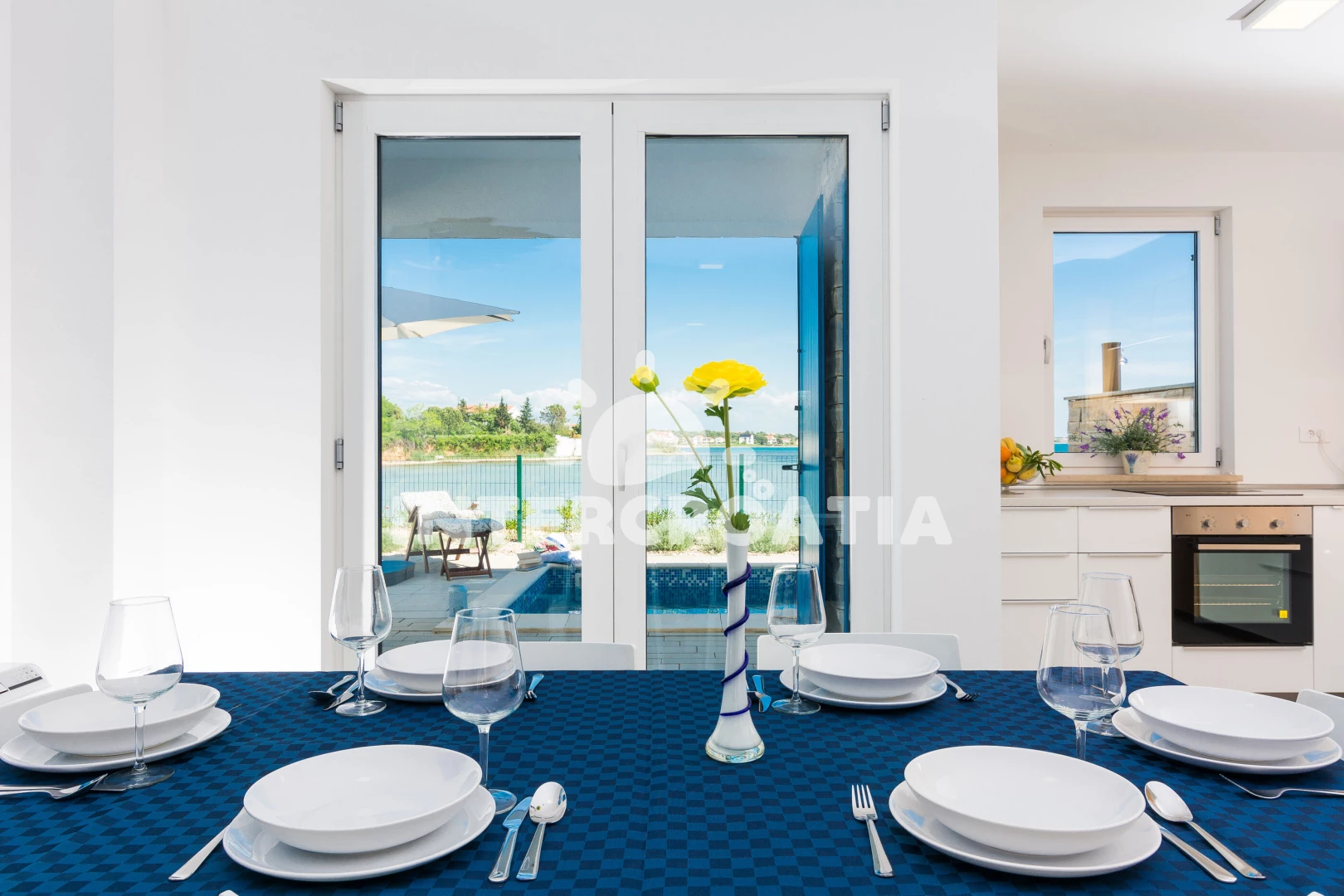 Vzdálenosti: Moře 10 m, pláž 10 m (písčitá a betonové desky), půjčovna kol 5 m, bar 100 m, marina 100 m, centrum 200 m, supermarket 200 m, restaurace 200 m, veřejná doprava 500 m, čerpací stanice 1 km, lékárna 2 km, pošta 2 km, směnárna 2 km, banka 2 km, ambulance 2 km, letiště (Zadar) 20 km, trajekt (Zadar) 20 km, muzeum 20 km, park Plitvice 55 km,