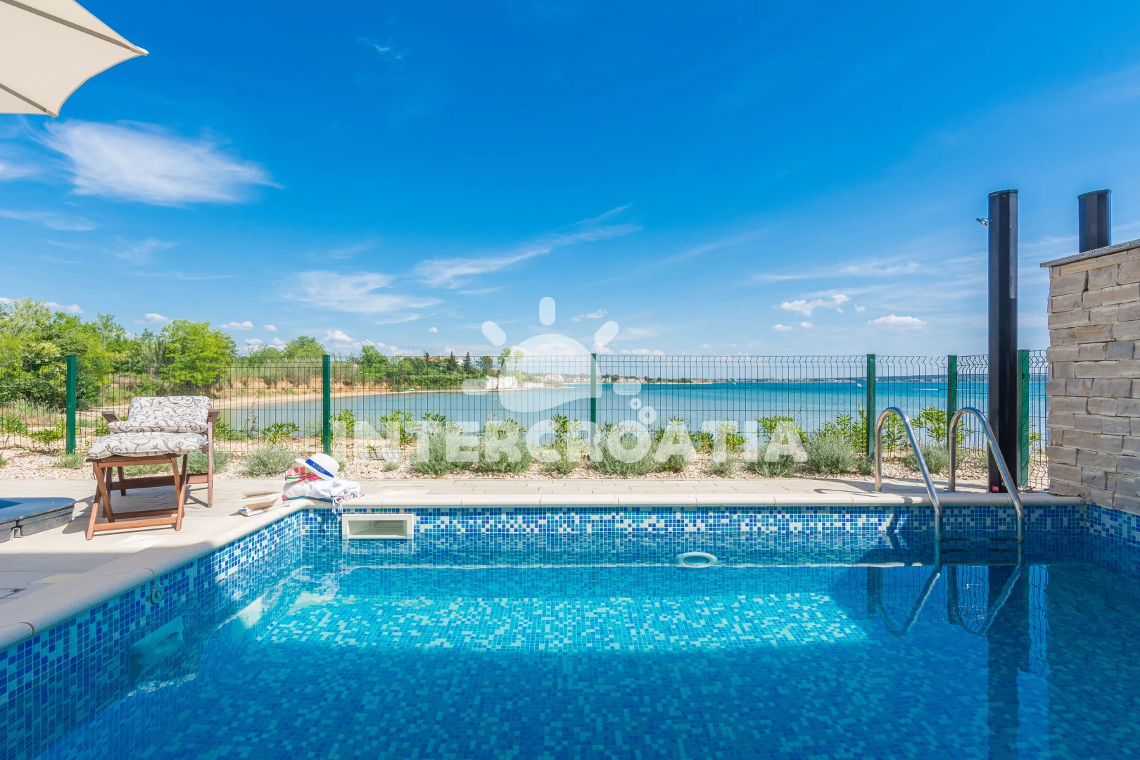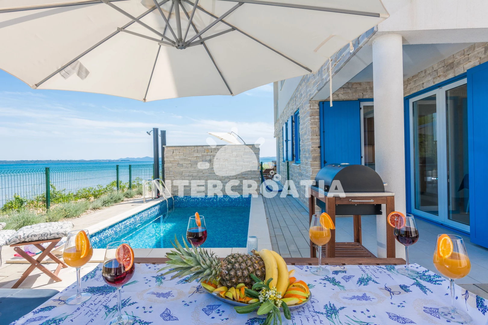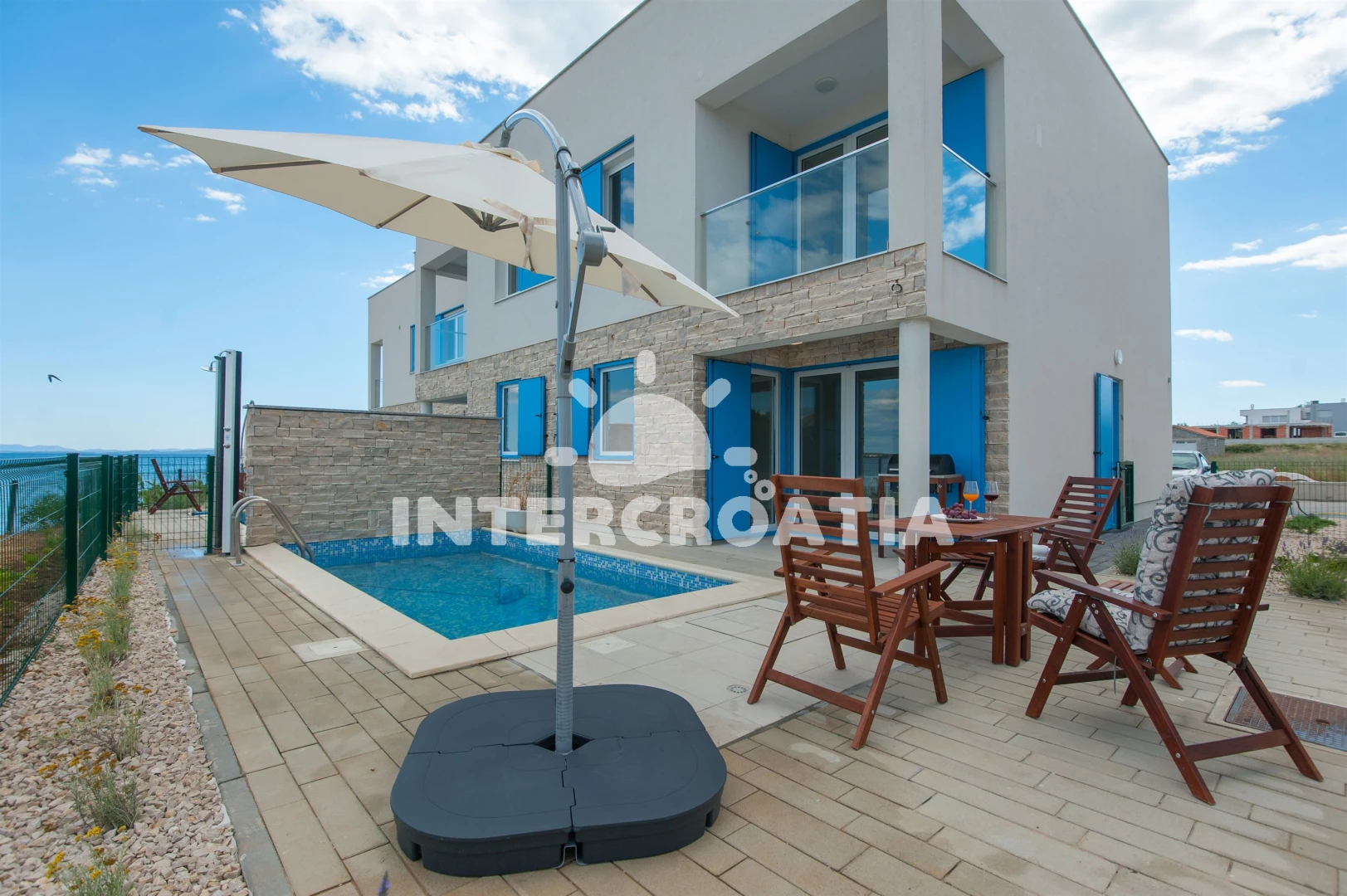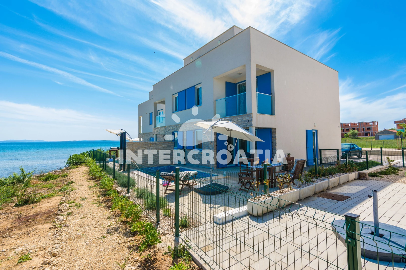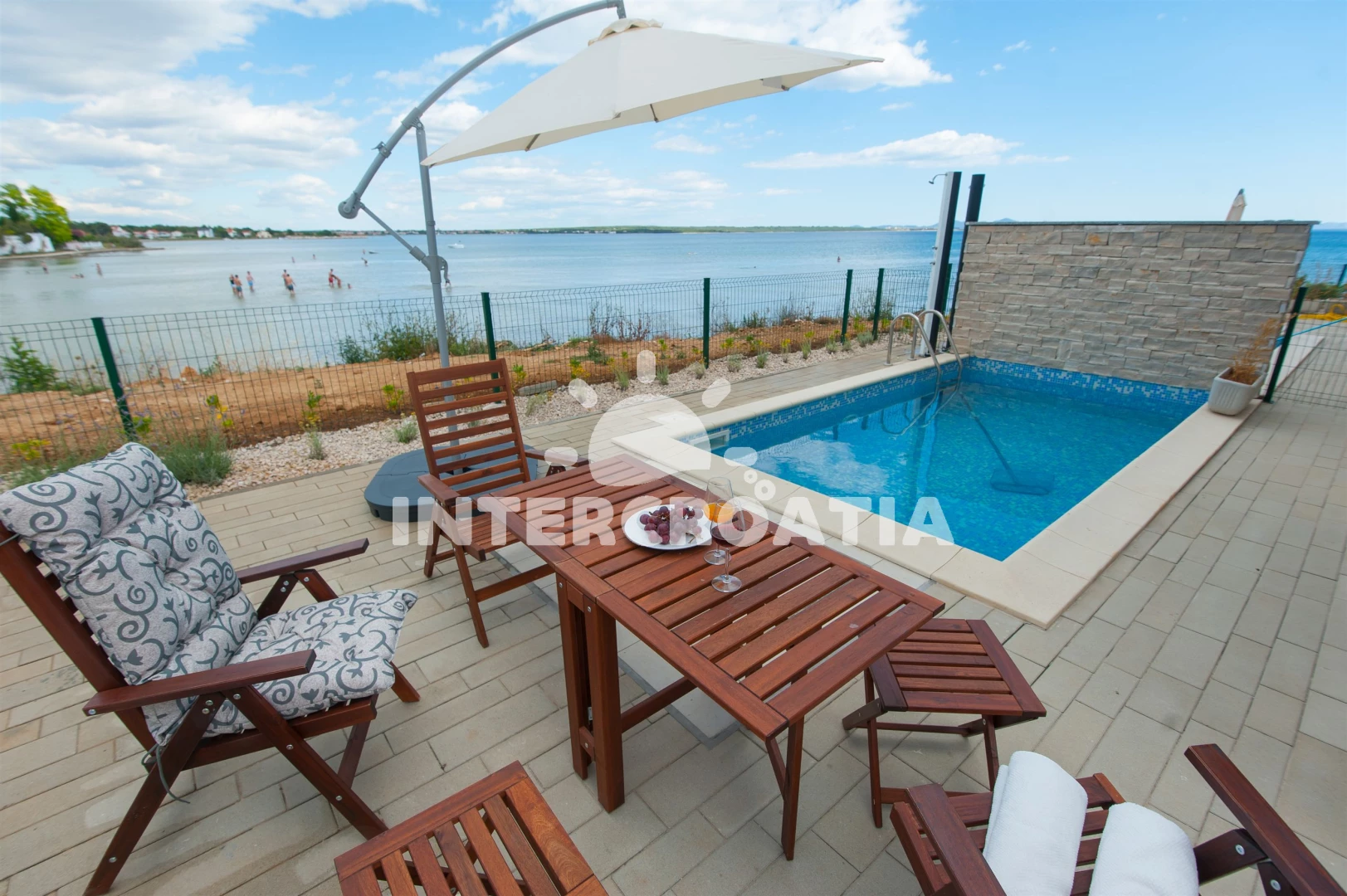 Vila se nachází 10 m od moře a pláže. Pláž je písčitá a betonové desky. Vila disponuje bazénem s lehátky pro ubytované hosty. U objektu je k dispozici společná zahrada s posezením a grilem. Parkování je před domem.