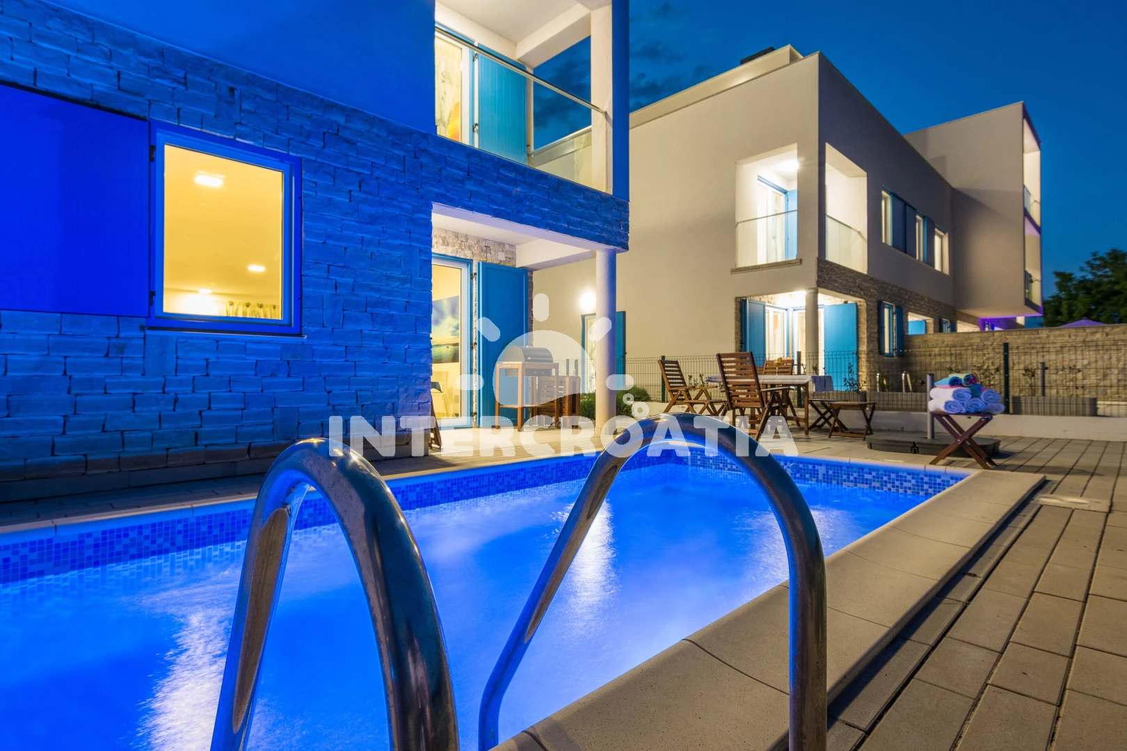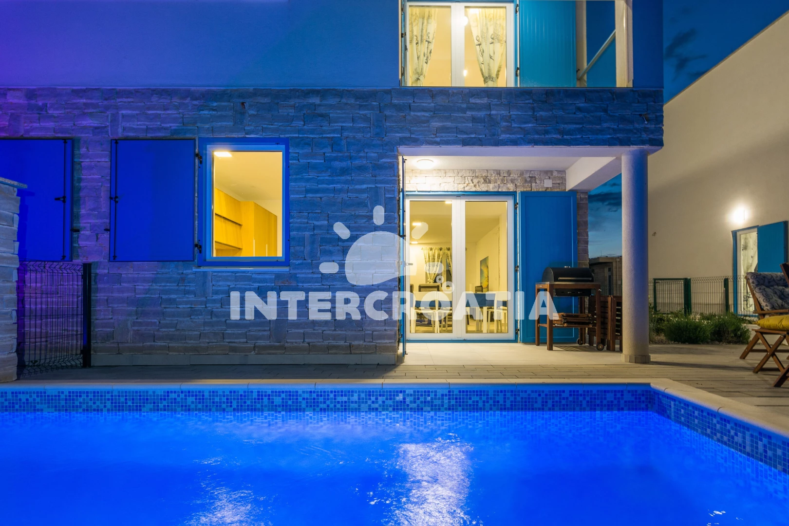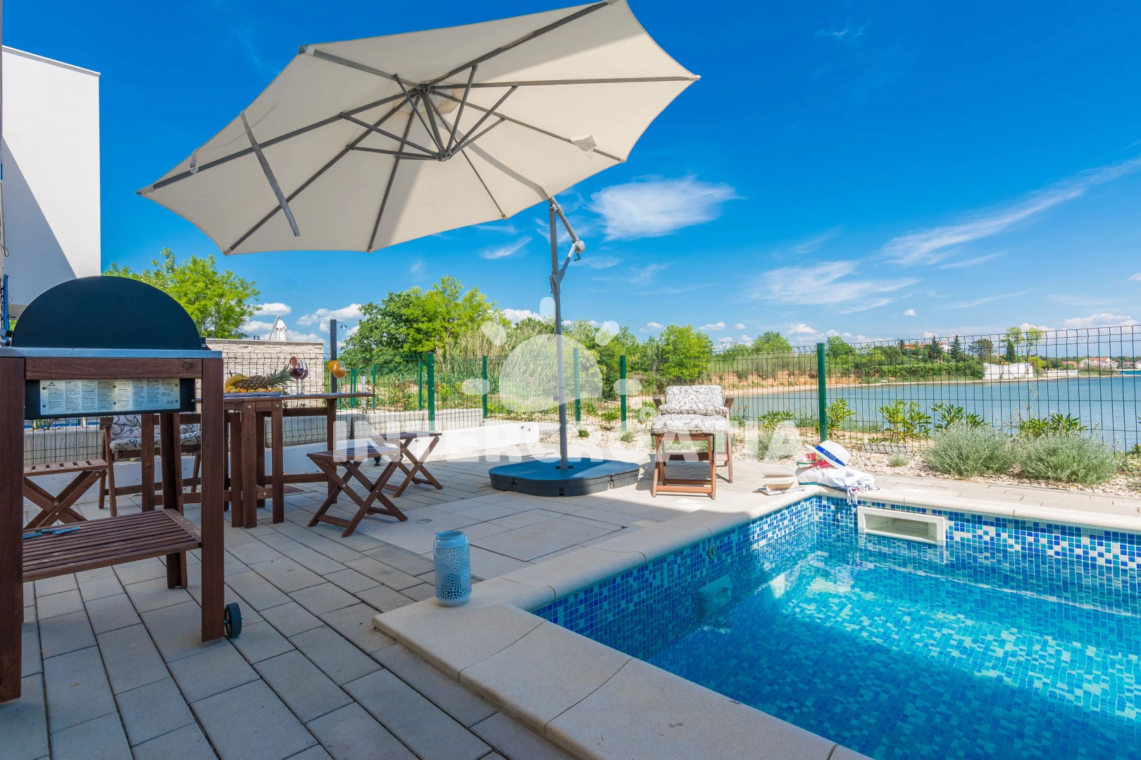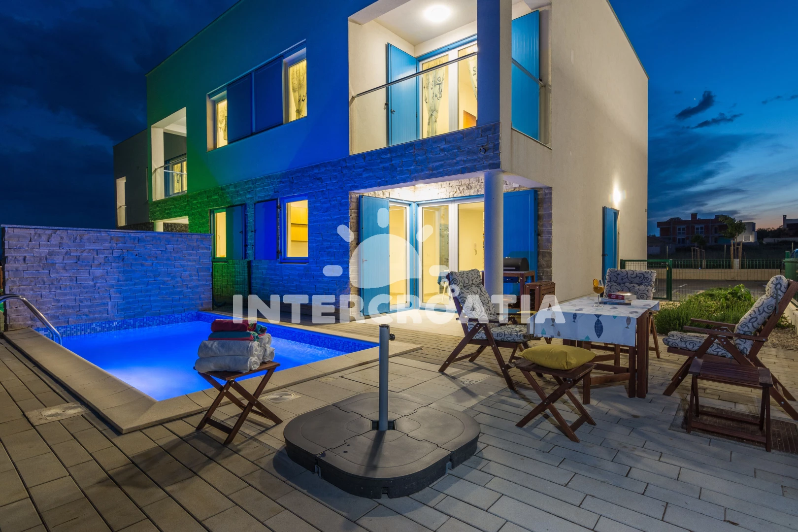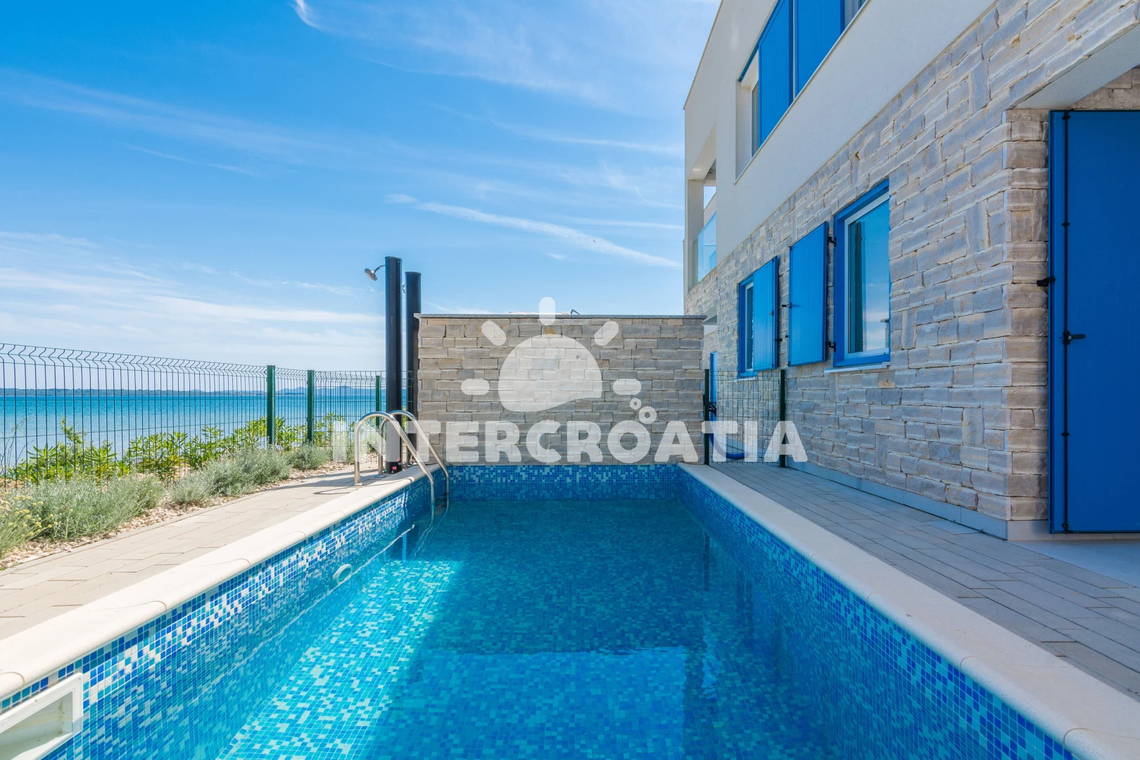 Vila se nachází 10 m od moře a pláže. Pláž je písčitá a betonové desky. Vila disponuje bazénem s lehátky pro ubytované hosty. U objektu je k dispozici společná zahrada s posezením a grilem. Parkování je před domem.
