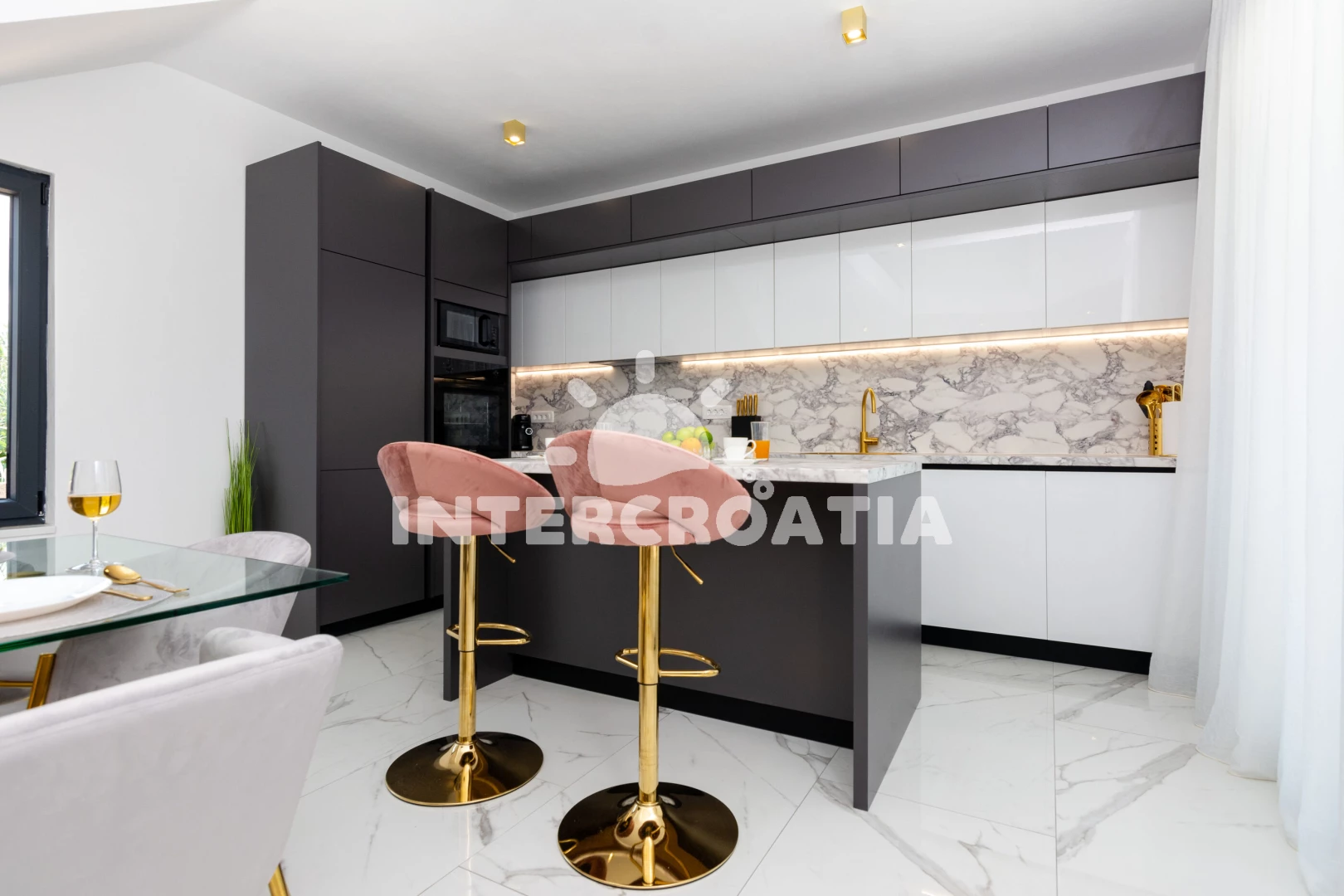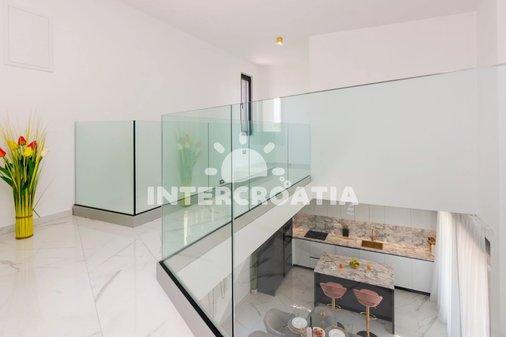 Vila (200 m2) s terasou, s balkonem, a výhledem na moře. Nachází se ve dvou patrech objektu. Vila má 4 ložnice a je vhodná pro až 8 osob. Kuchyňská linka je vybavena varnou deskou, kávovarem, troubou…