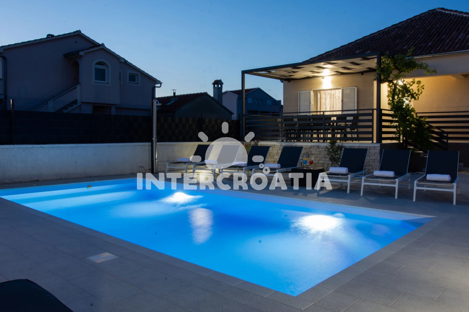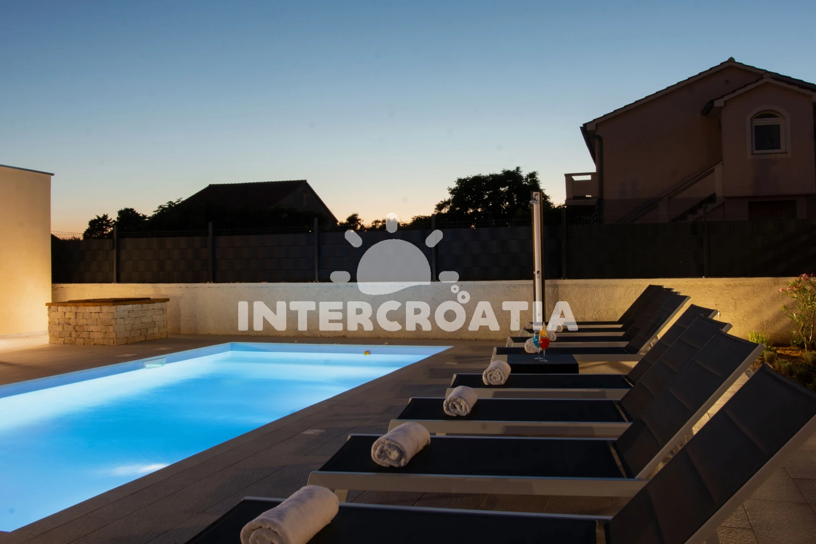Vila se nachází 160 m od moře a pláže. Pláž je písečná. Vila disponuje bazénem s lehátky pro ubytované hosty. U objektu je k dispozici společná zahrada s posezením a grilem.