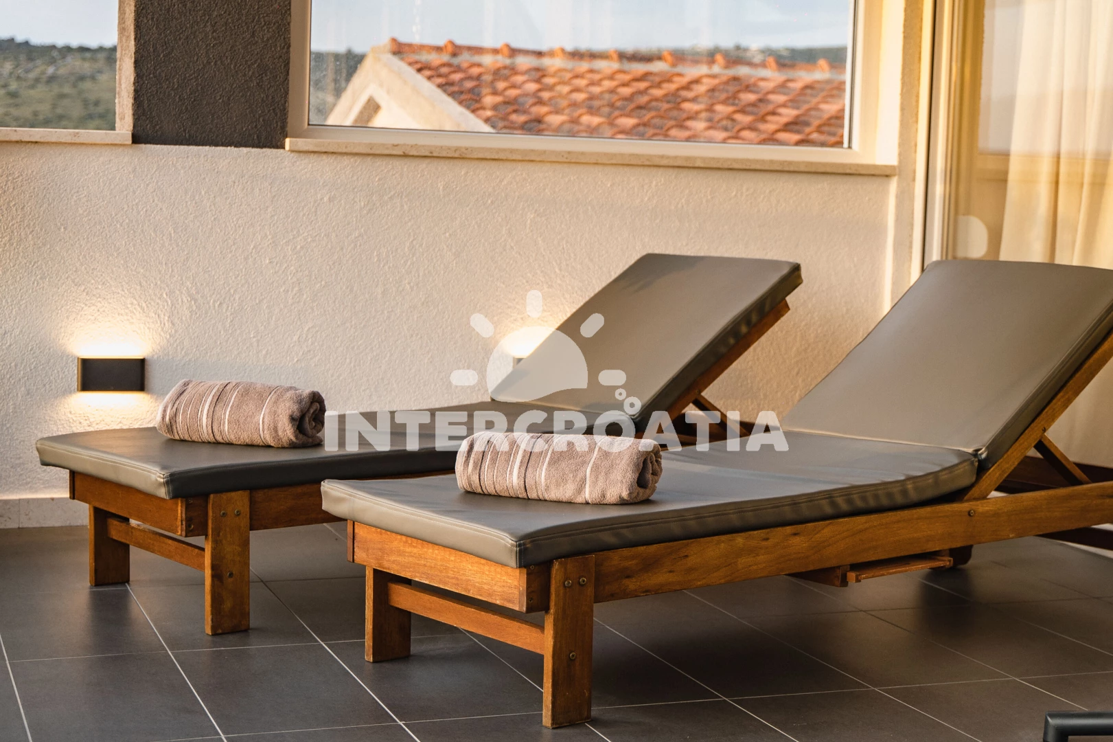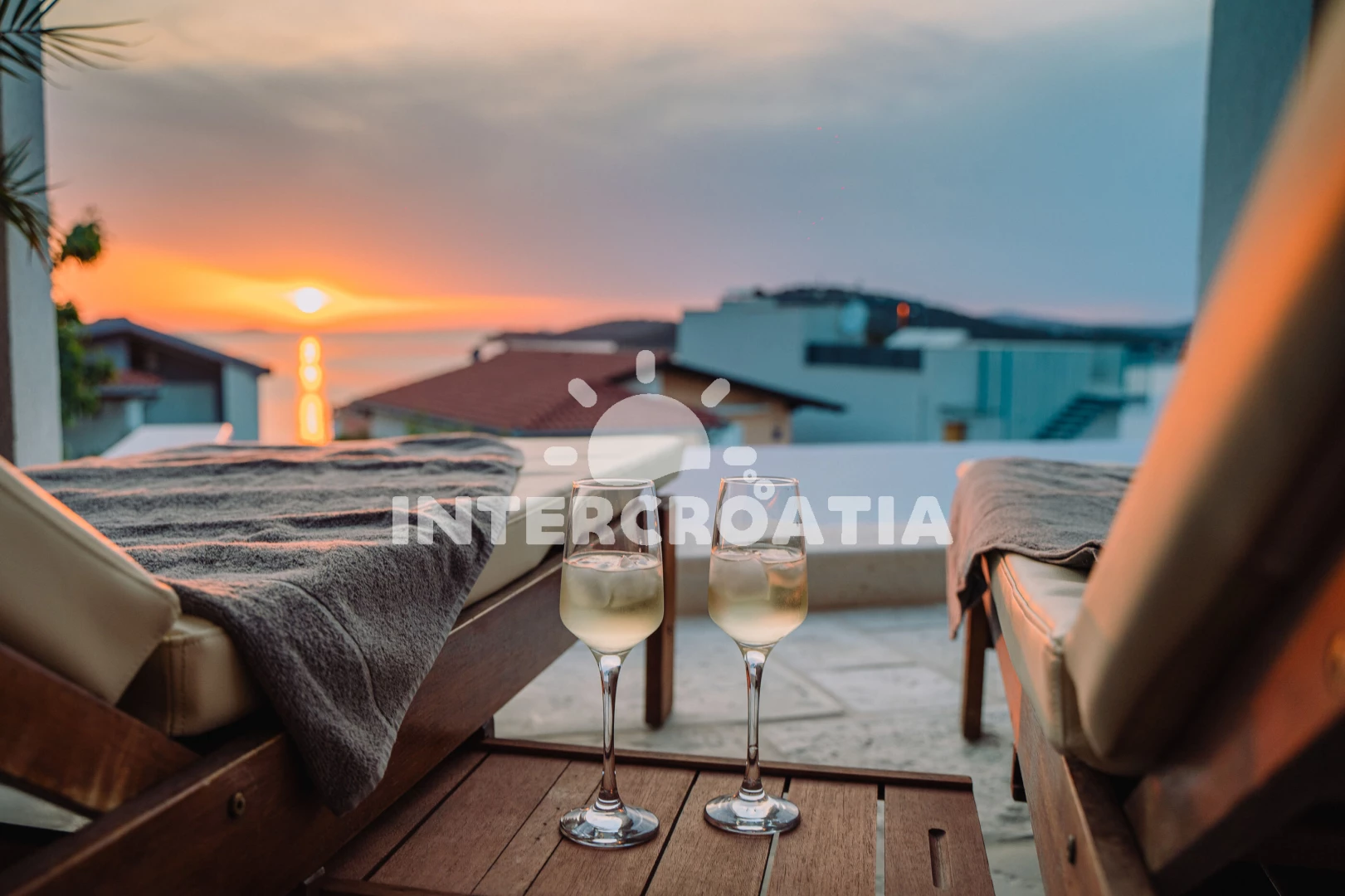 Vzdálenosti: Moře 70 m, pláž 70 m (oblázková a betonové desky), centrum 2 km, restaurace 2 km, veřejná doprava 2 km, supermarket 2 km, bar 2 km, lékárna 9 km, pošta 9 km, směnárna 9 km, ambulance 9 km, čerpací stanice 15 km, banka 15 km, letiště (Split) 40 km, trajekt (Šibenik) 45 km,