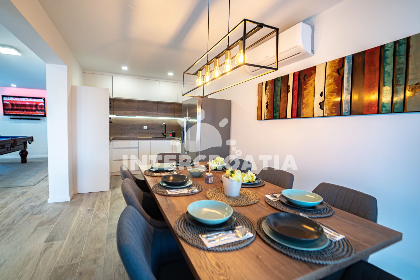 Domácí zvířata jsou povolena ( bezplatně ). V ceně pobytu zahrnuto: Welcome balíček, WiFi, klimatizace (část místností), povlečení, ručníky, pračka, dětská postýlka (služba na požádání), závěrečný úklid, pobytová taxa. Host je povinen v den příjezdu do ubytování složit vratnou zálohu celkem 300 €, kterou dostane zpět v den odjezdu, pokud nepoškodil ubytovací jednotku. Pronajímatel se dorozumí chorvatsky, anglicky, německy, Pronajímatel vás bude očekávat po 16:00. V den odjezdu je nutné vyklidit apartmán do 10:00.