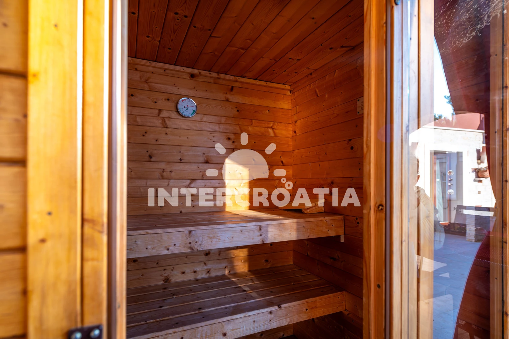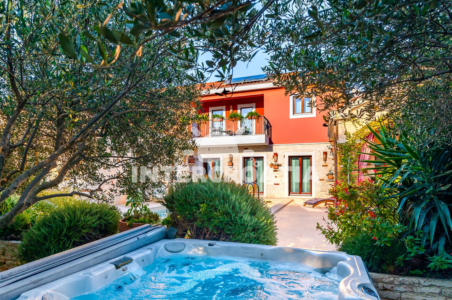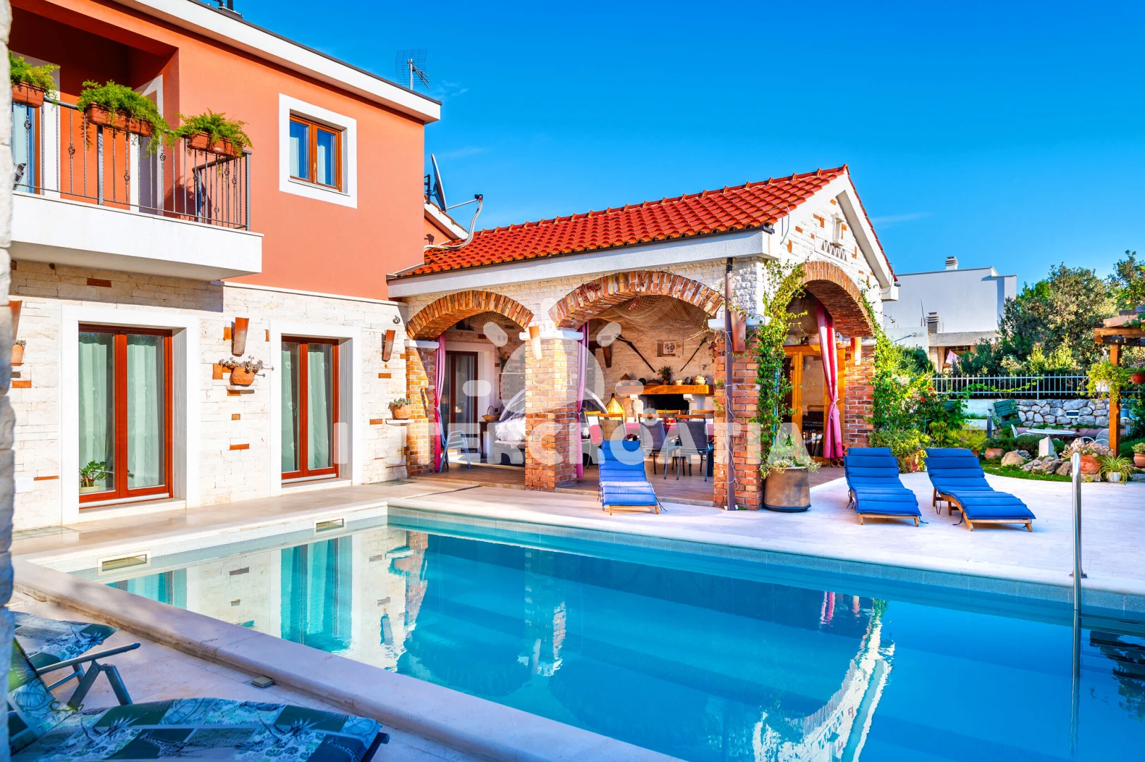 Vila se nachází 2000 m od moře a pláže. Pláž je oblázková a betonové desky. Vila disponuje bazénem s lehátky pro ubytované hosty. K dispozici vířivka, sauna. U objektu je k dispozici společná zahrada s posezením a grilem. Parkování je před domem.