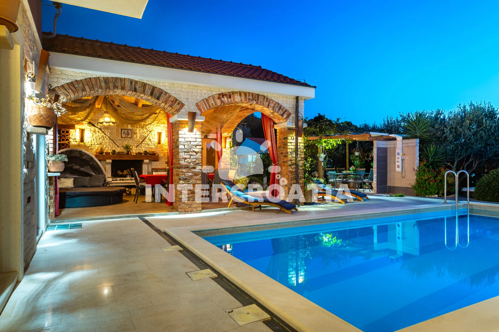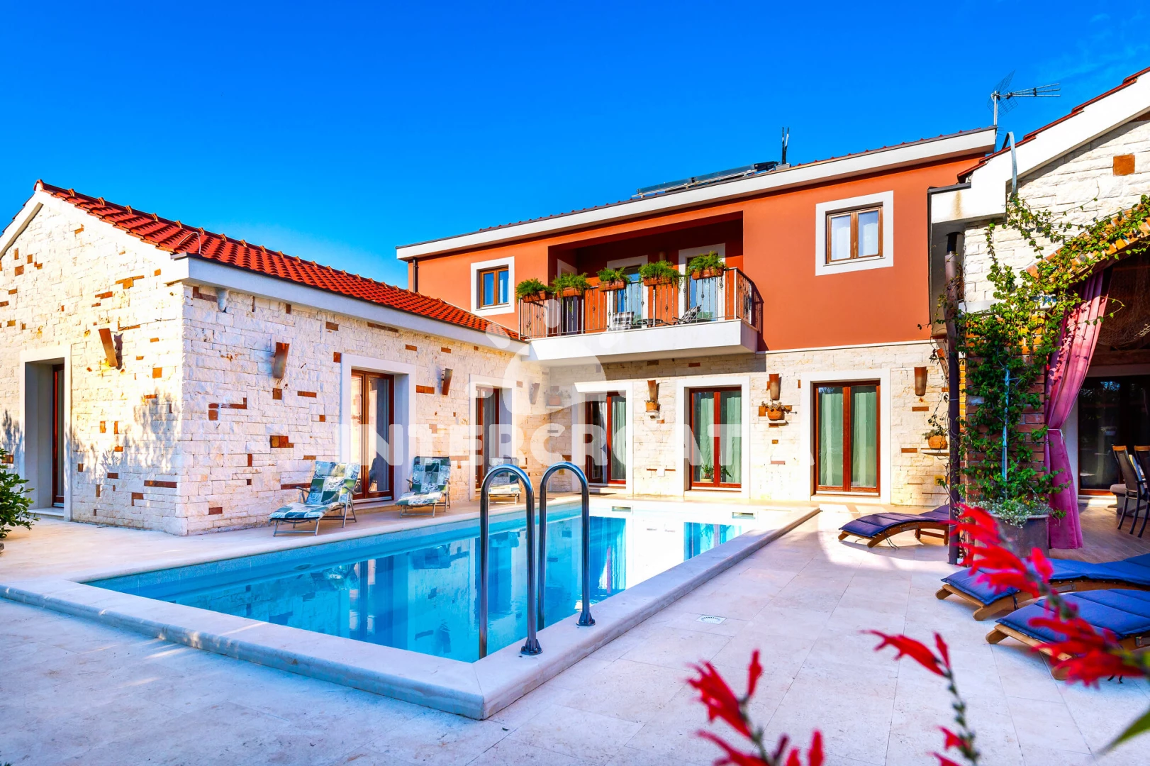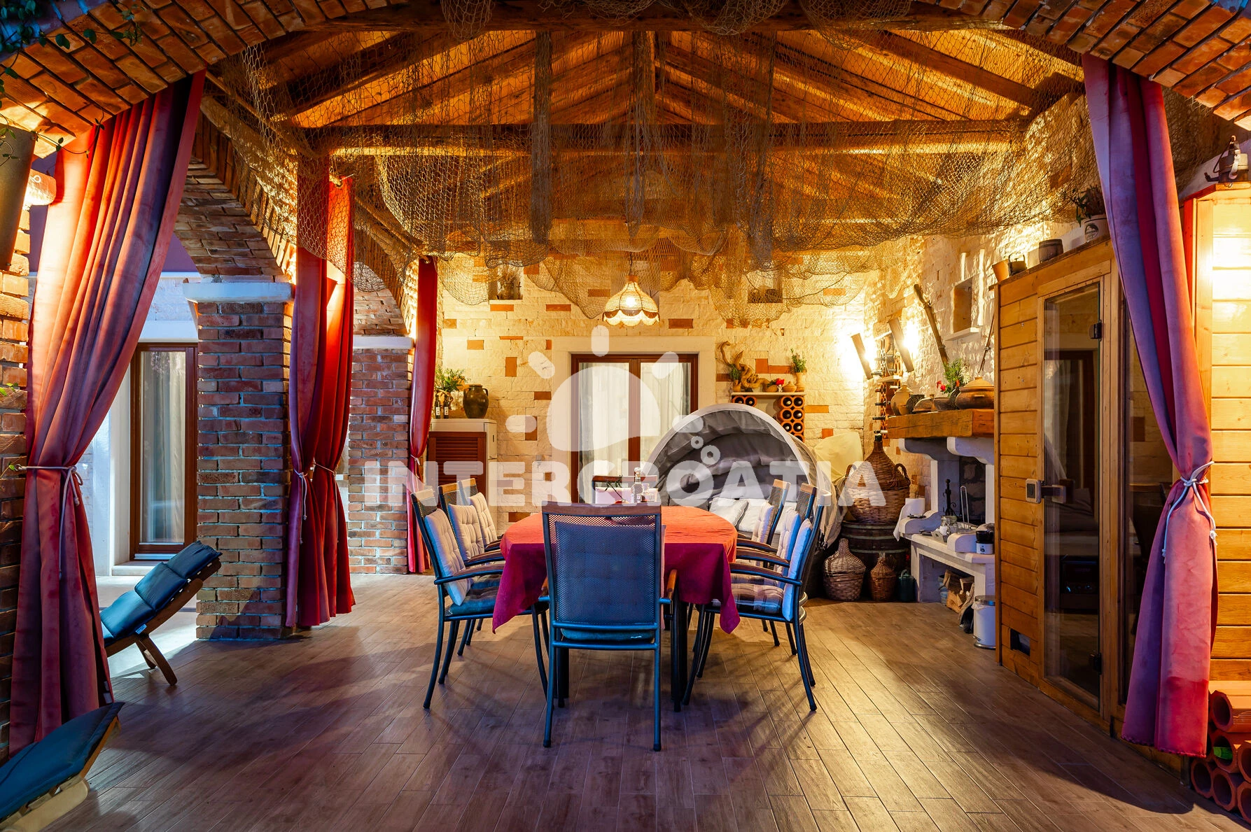 Vila se nachází 2000 m od moře a pláže. Pláž je oblázková a betonové desky. Vila disponuje bazénem s lehátky pro ubytované hosty. K dispozici vířivka, sauna. U objektu je k dispozici společná zahrada s posezením a grilem. Parkování je před domem.