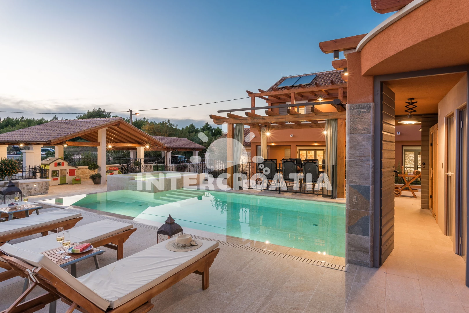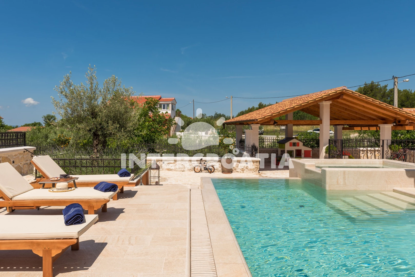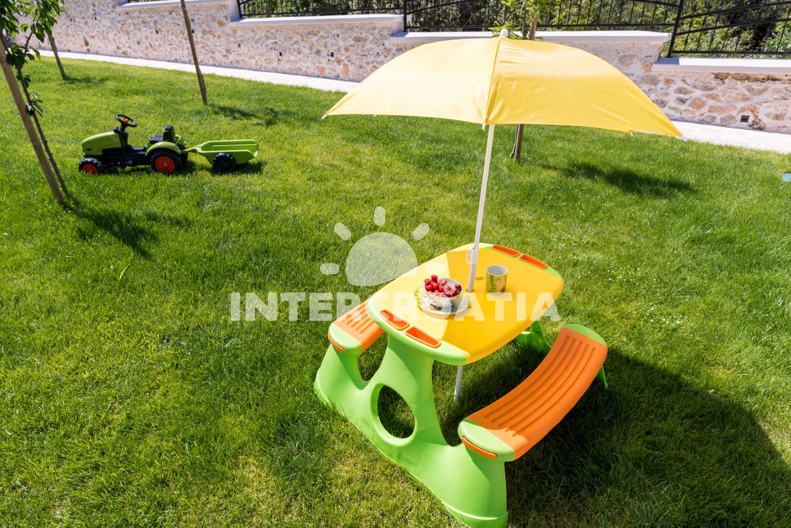Vila se nachází 3000 m od moře a pláže. Pláž je oblázková a betonové desky. Vila disponuje bazénem s lehátky pro ubytované hosty. K dispozici vířivka, sauna. U objektu je k dispozici společná zahrada s posezením a grilem. Parkování je před domem.