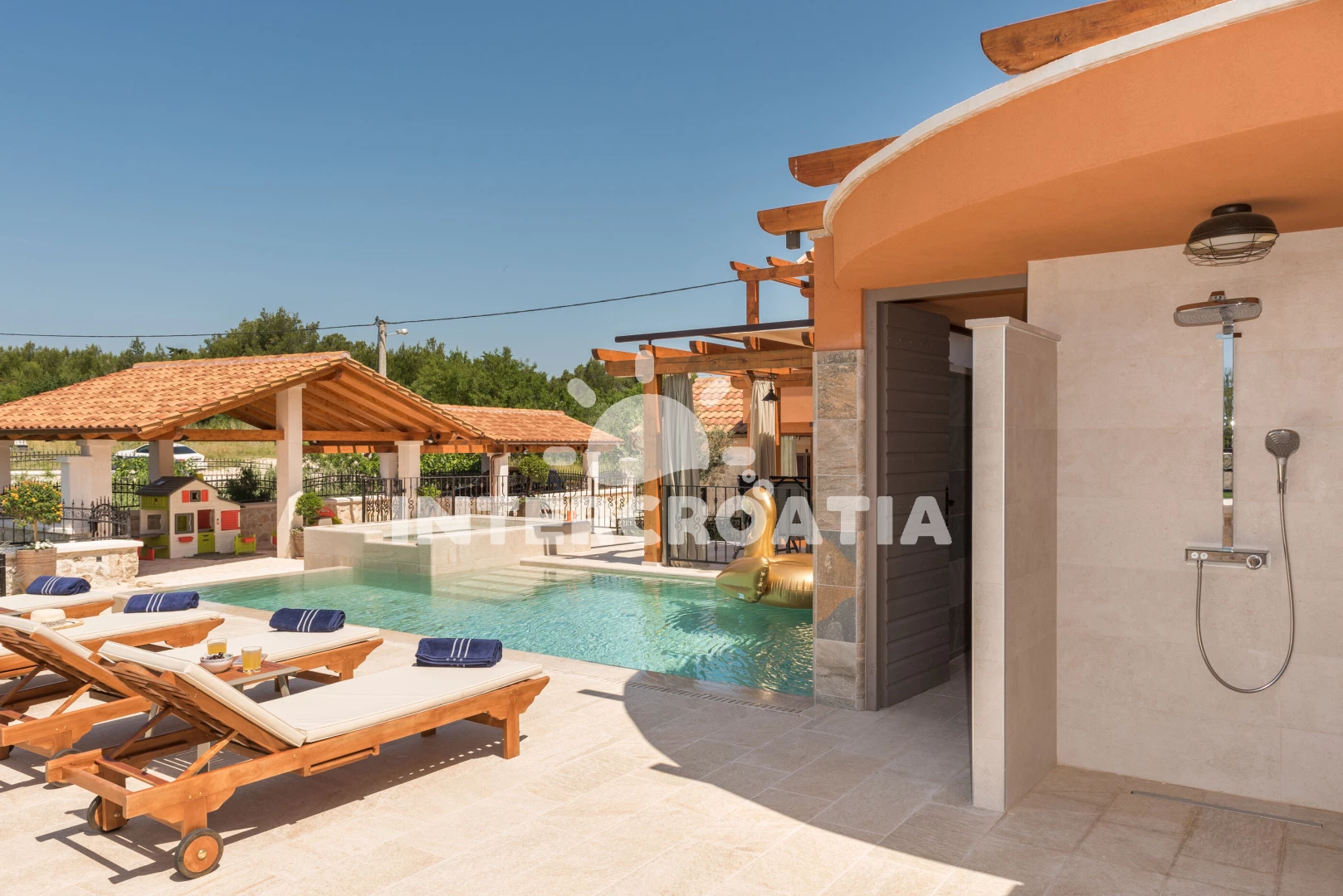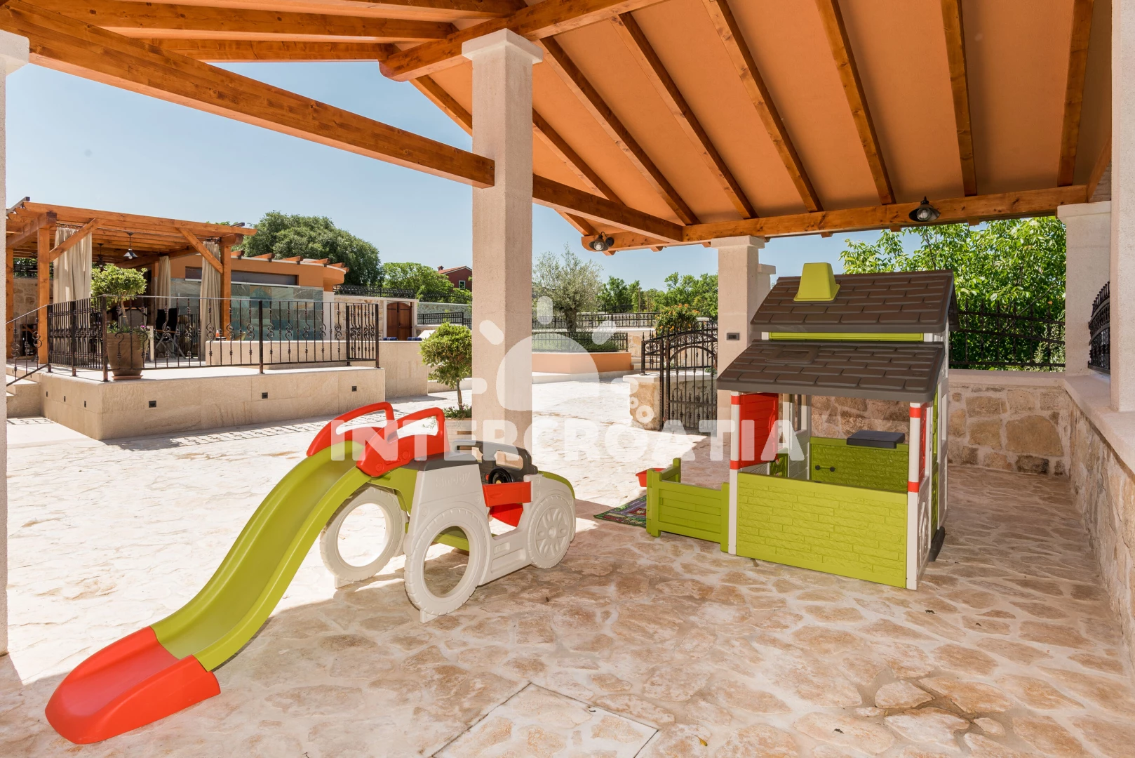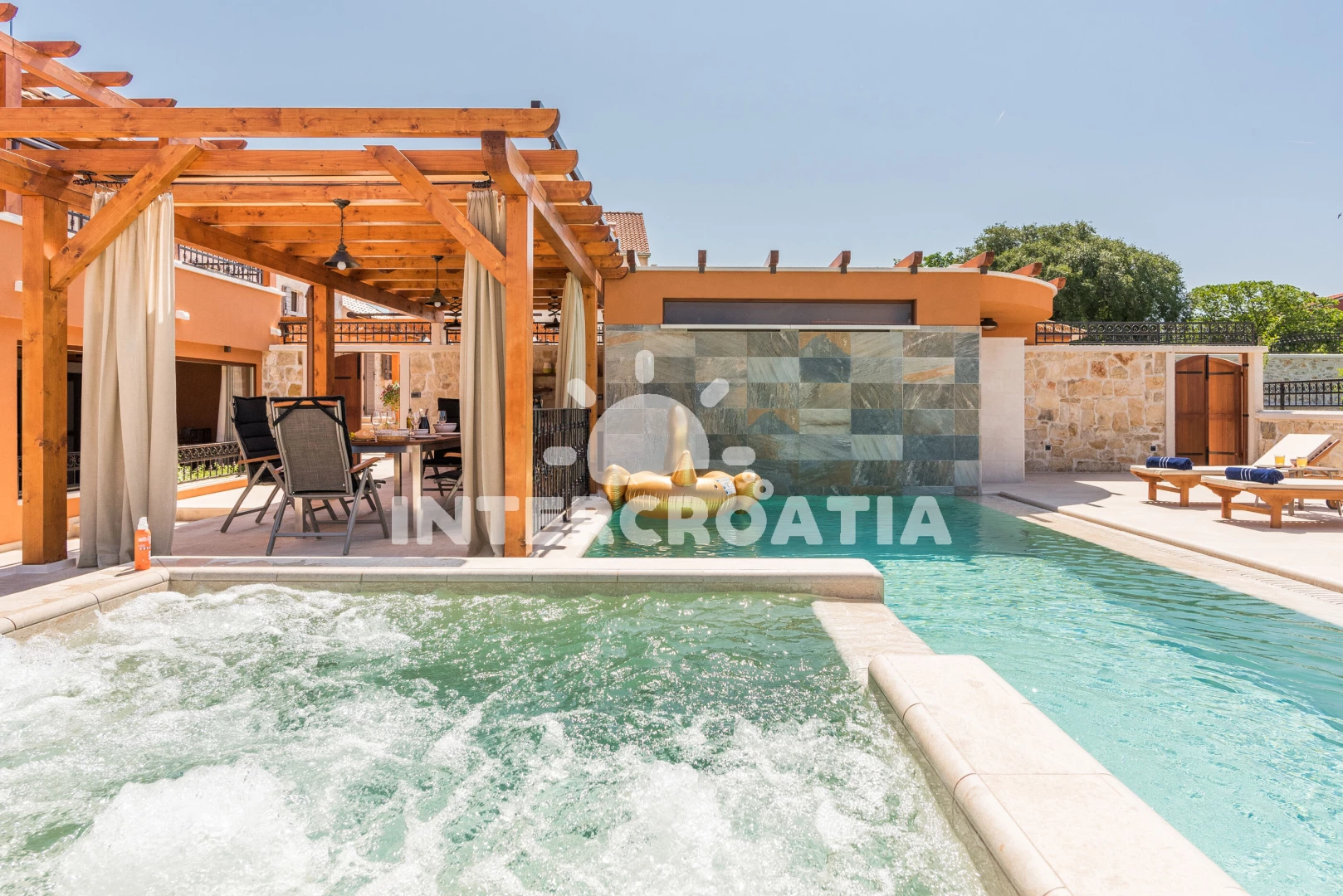 Vila se nachází 3000 m od moře a pláže. Pláž je oblázková a betonové desky. Vila disponuje bazénem s lehátky pro ubytované hosty. K dispozici vířivka, sauna. U objektu je k dispozici společná zahrada s posezením a grilem. Parkování je před domem.