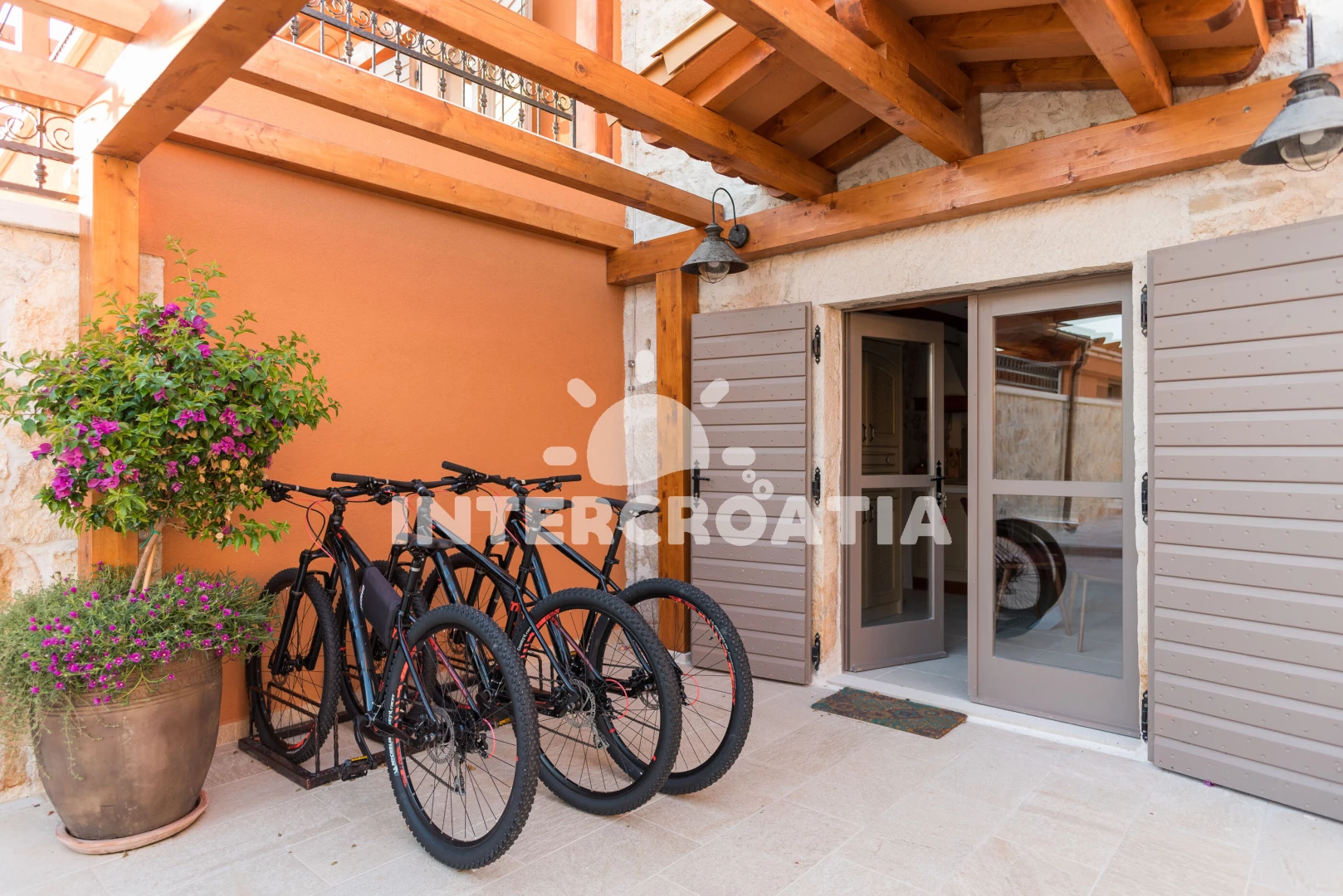 Vzdálenosti: půjčovna kol 1 m, Moře 3 km, pláž 3 km (oblázková a betonové desky), banka 3 km, marina 3 km, ambulance 3 km, centrum 3 km, park Plitvice 3 km, lékárna 3 km, bar 3 km, pošta 3 km, restaurace 3 km, směnárna 3 km, supermarket 3 km, veřejná doprava 3 km, čerpací stanice 15 km, trajekt 18 km,