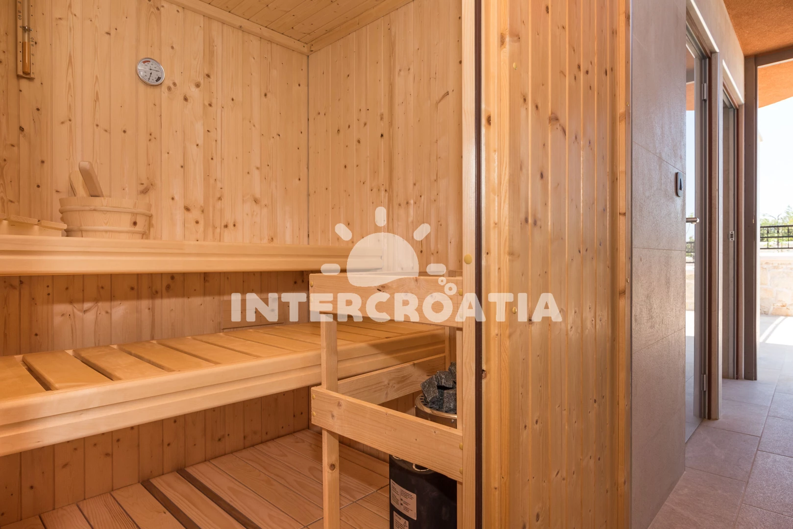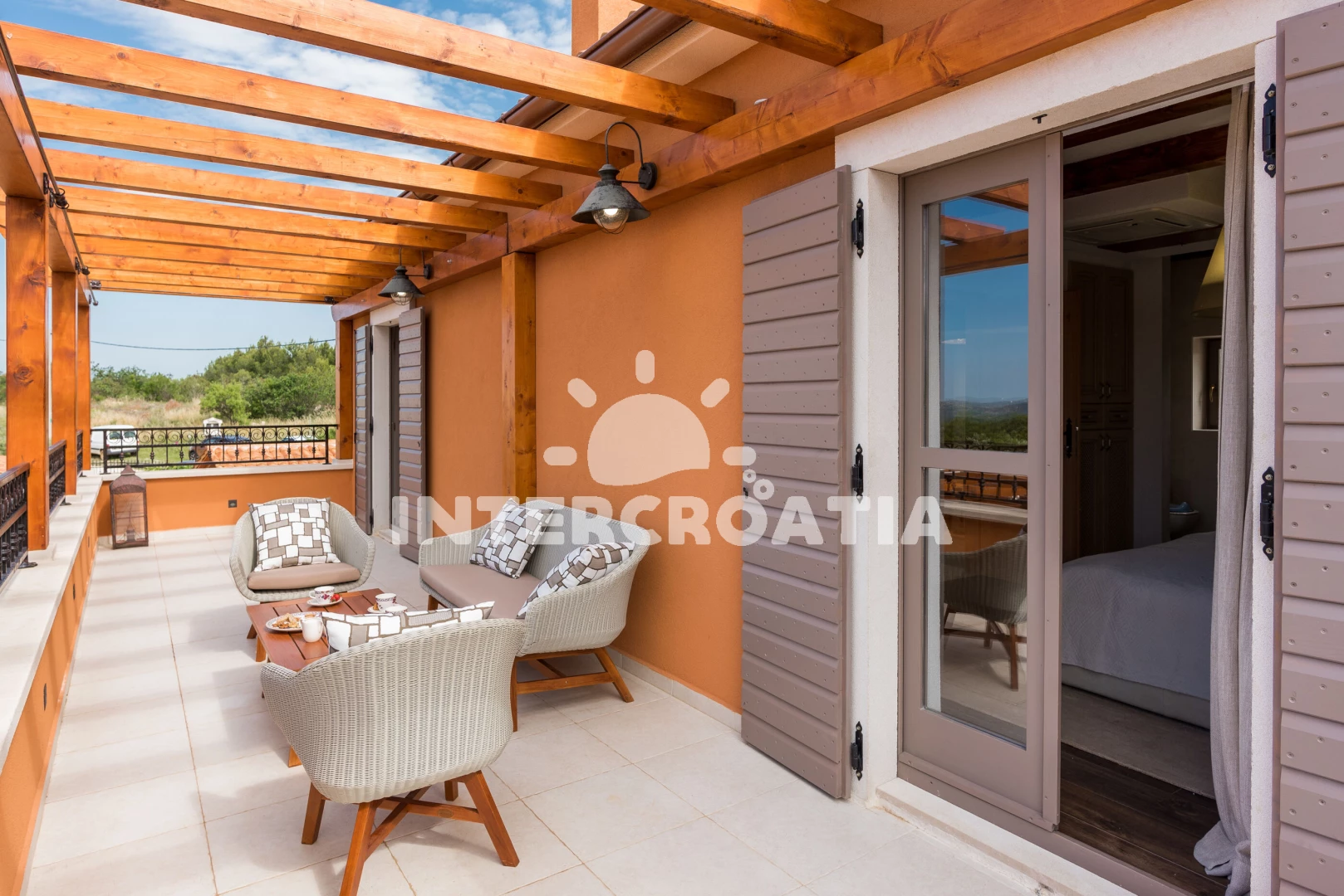 Vila (160 m2). Nachází se ve dvou patrech objektu. Vila má 3 ložnice a je vhodná pro až 6 osob. Kuchyňská linka je vybavena varnou deskou, toustovačem, kávovarem, troubou, myčkou na nádobí, mikrovlnnou troubou, rychlovarnou konvicí, nádobím, lednicí, mrazákem. K dispozici televize se satelitním programem, sejf, žehlička. První ložnice s dvoulůžkem. Druhá ložnice s dvoulůžkem. Třetí ložnice s dvoulůžkem. Koupelna se sprchovým koutem, umyvadlem, fénem a WC. Druhá koupelna s vanou, umyvadlem, fénem a WC. Třetí koupelna s vanou, umyvadlem, fénem a WC.