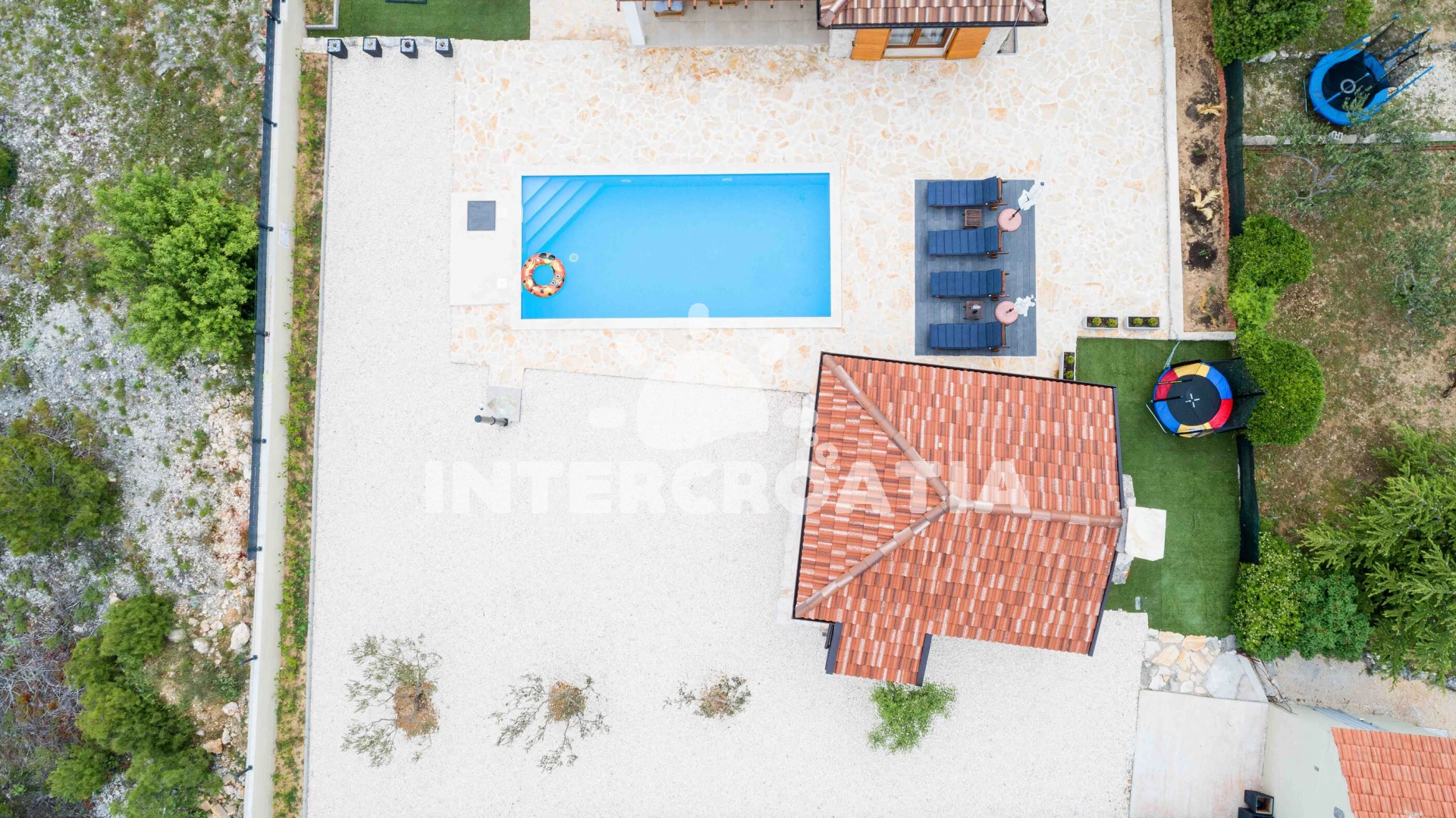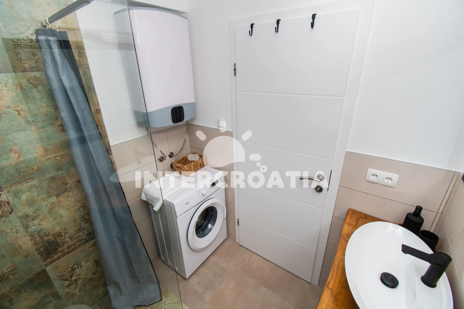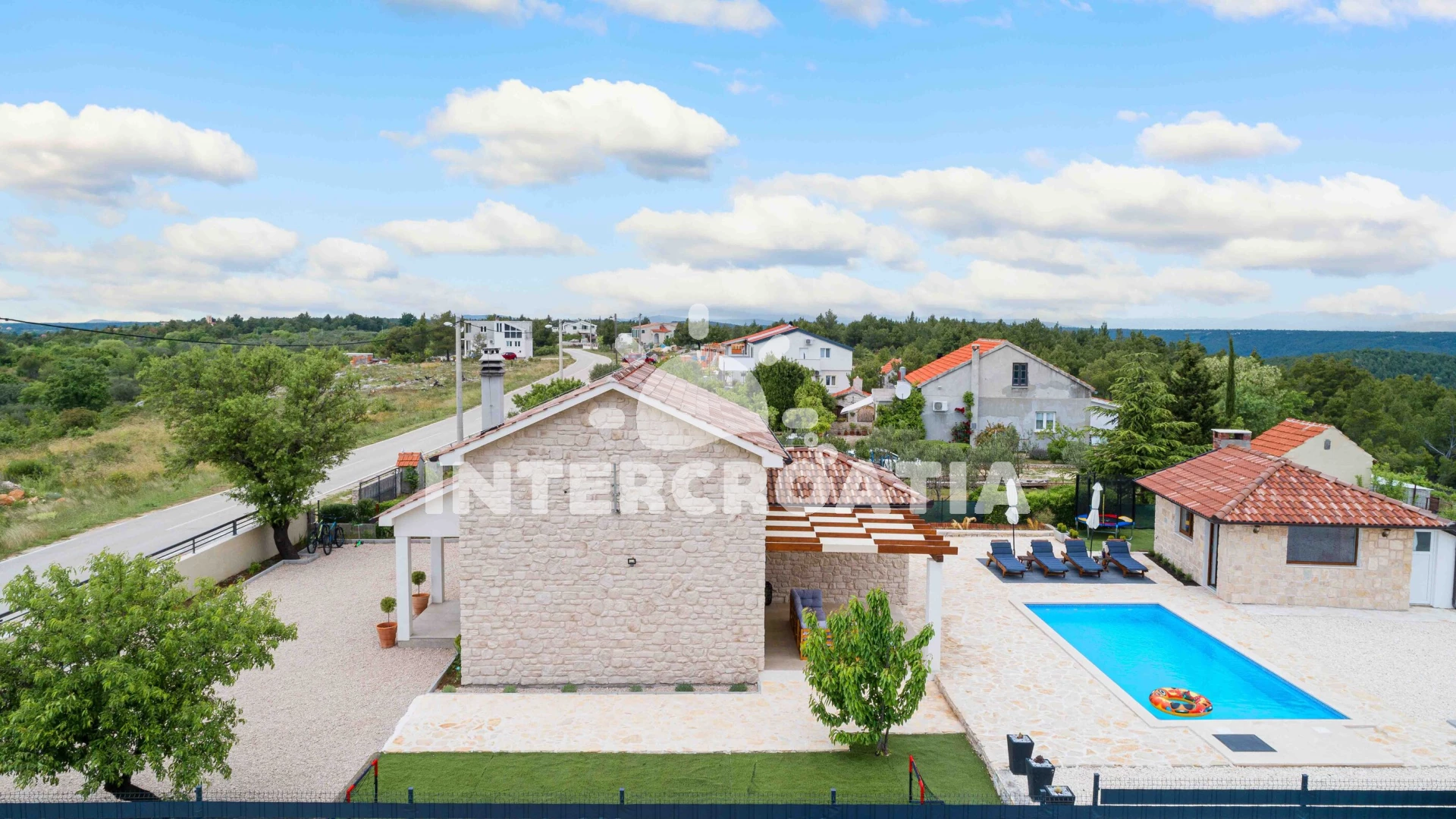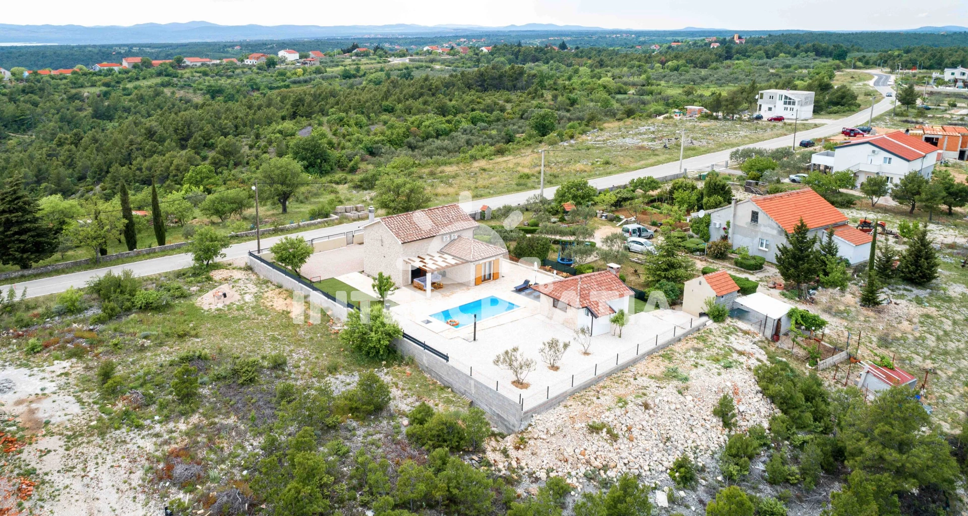 Vzdálenosti: Moře 4 km, pláž 4 km (oblázková a betonové desky), supermarket 950 m, veřejná doprava 1 km, restaurace 1,5 km, bar 1,5 km, park Plitvice 4 km, pošta 4 km, směnárna 4 km, banka 4,5 km, ambulance 4,5 km, lékárna 4,5 km, centrum 5 km, marina 5 km, trajekt (Šibenik) 15 km, letiště (Zadar) 50 km,