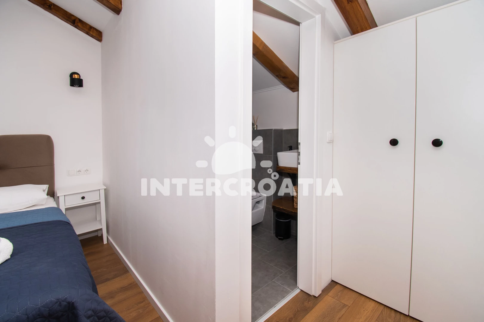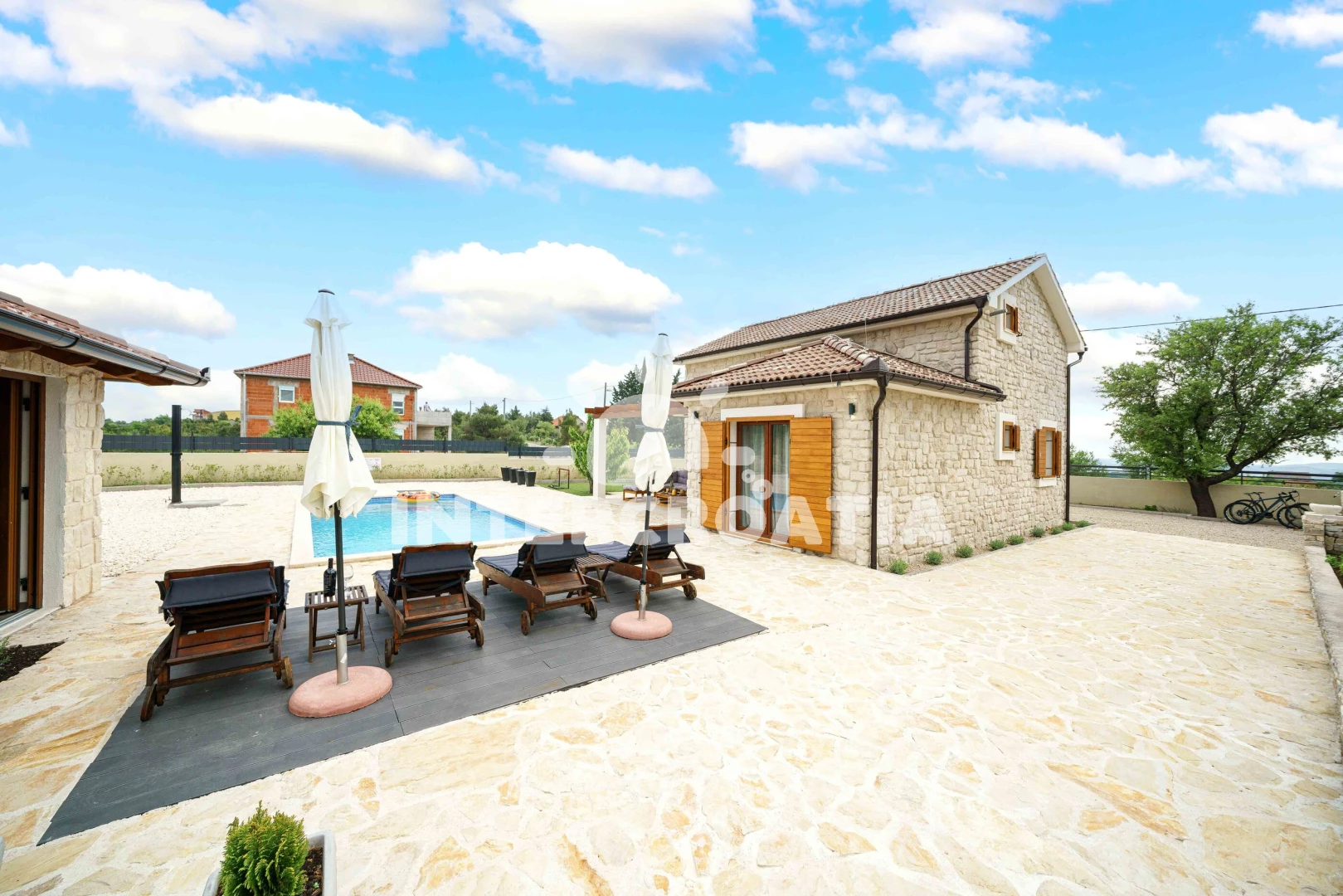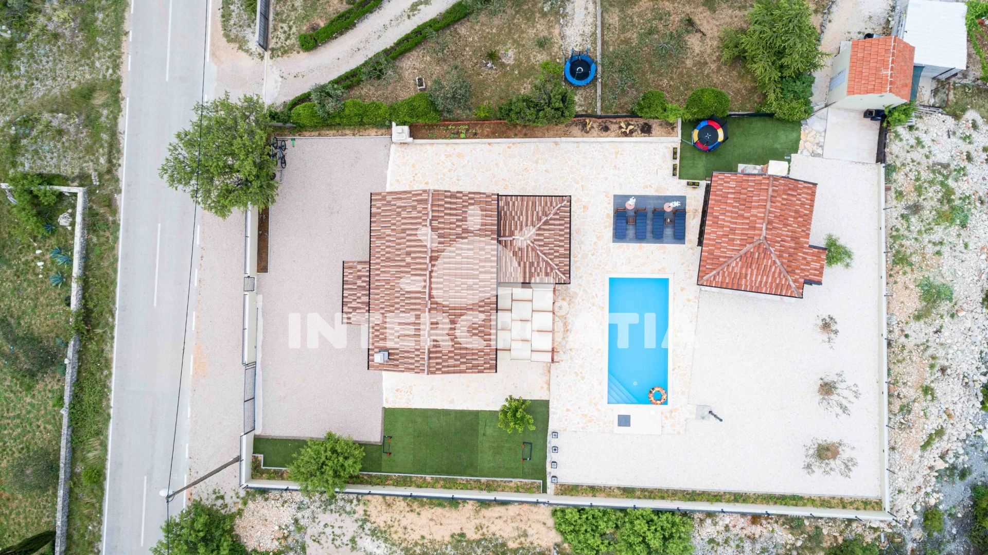 Vzdálenosti: Moře 4 km, pláž 4 km (oblázková a betonové desky), supermarket 950 m, veřejná doprava 1 km, restaurace 1,5 km, bar 1,5 km, park Plitvice 4 km, pošta 4 km, směnárna 4 km, banka 4,5 km, ambulance 4,5 km, lékárna 4,5 km, centrum 5 km, marina 5 km, trajekt (Šibenik) 15 km, letiště (Zadar) 50 km,