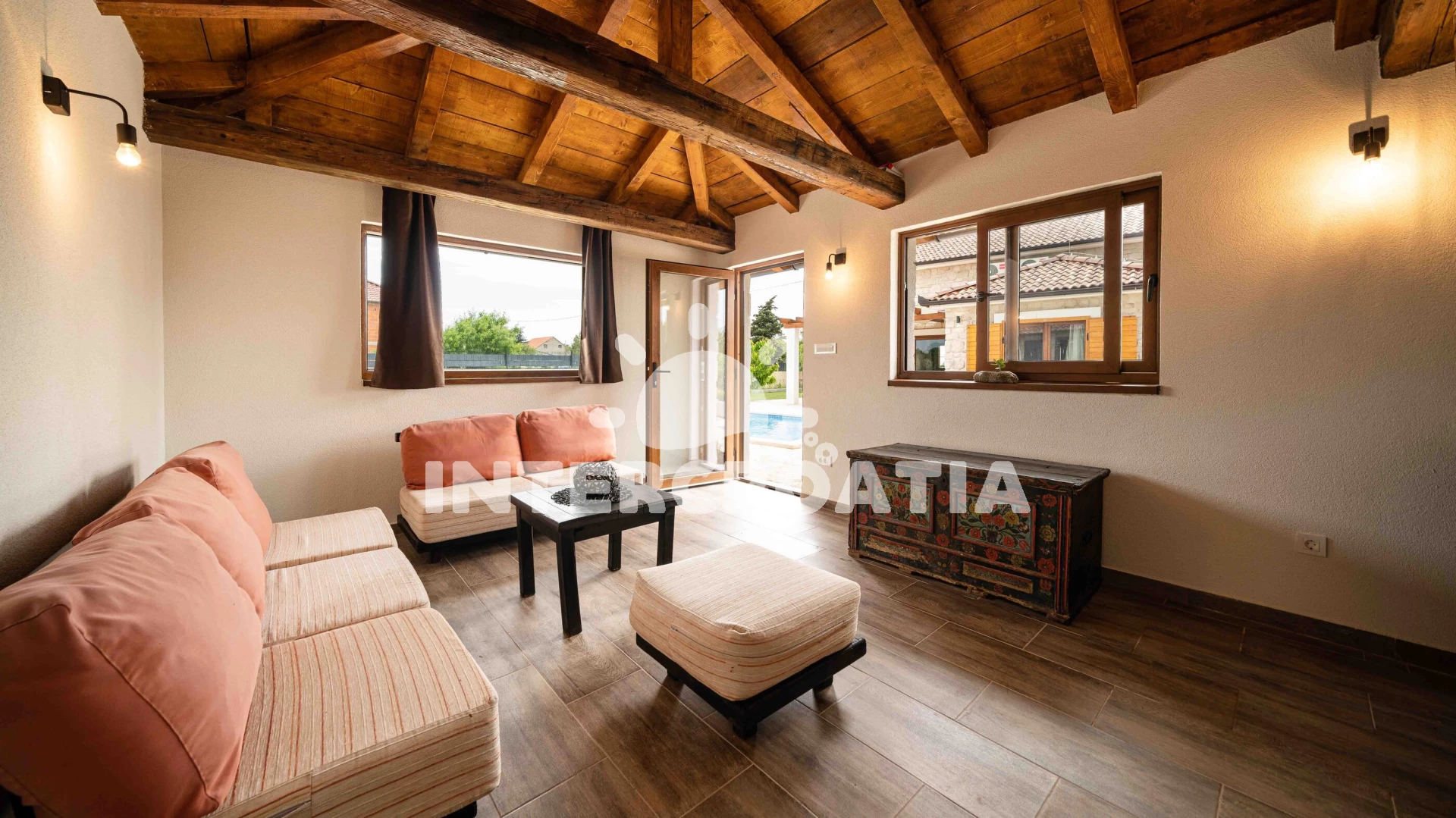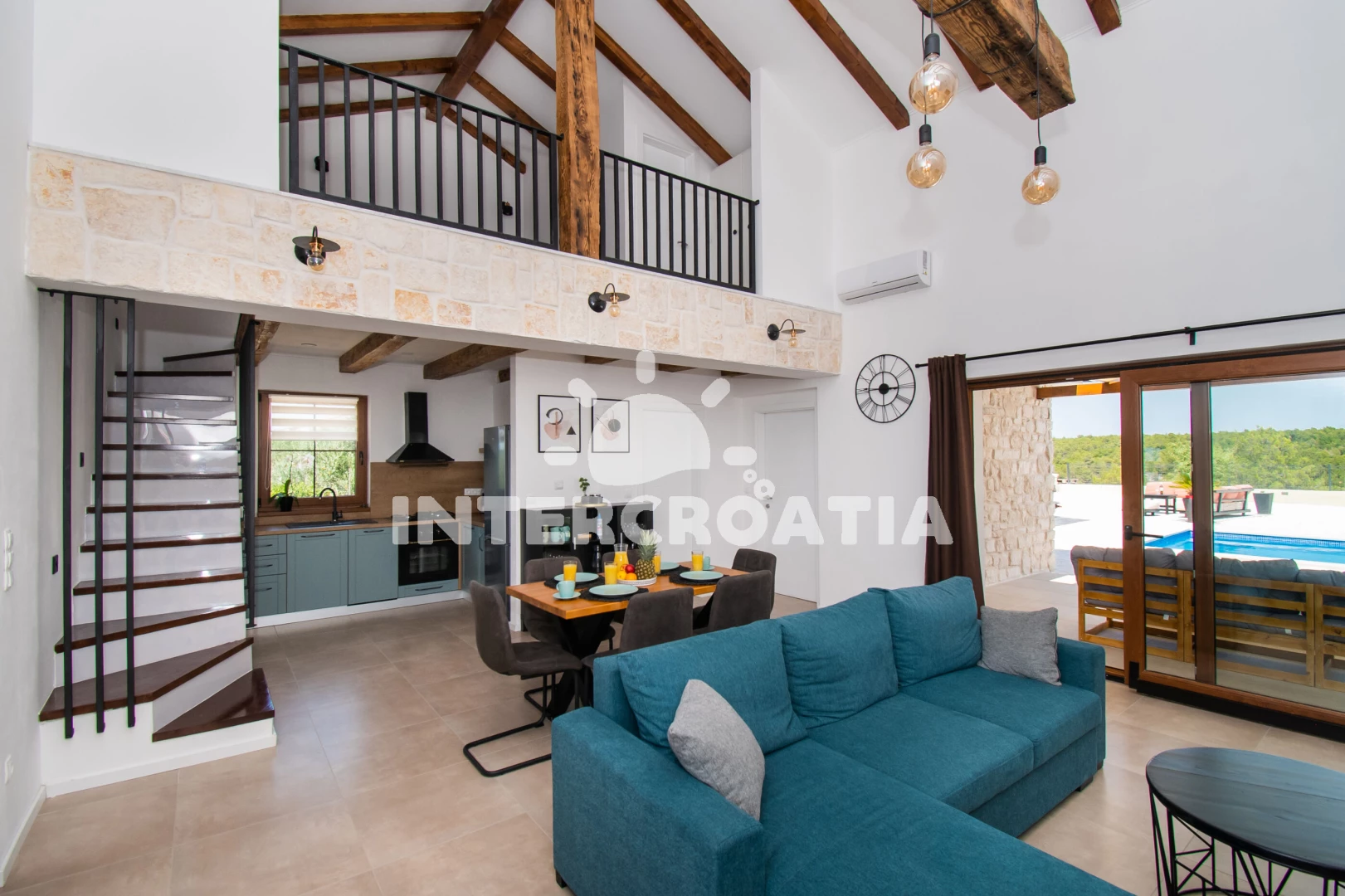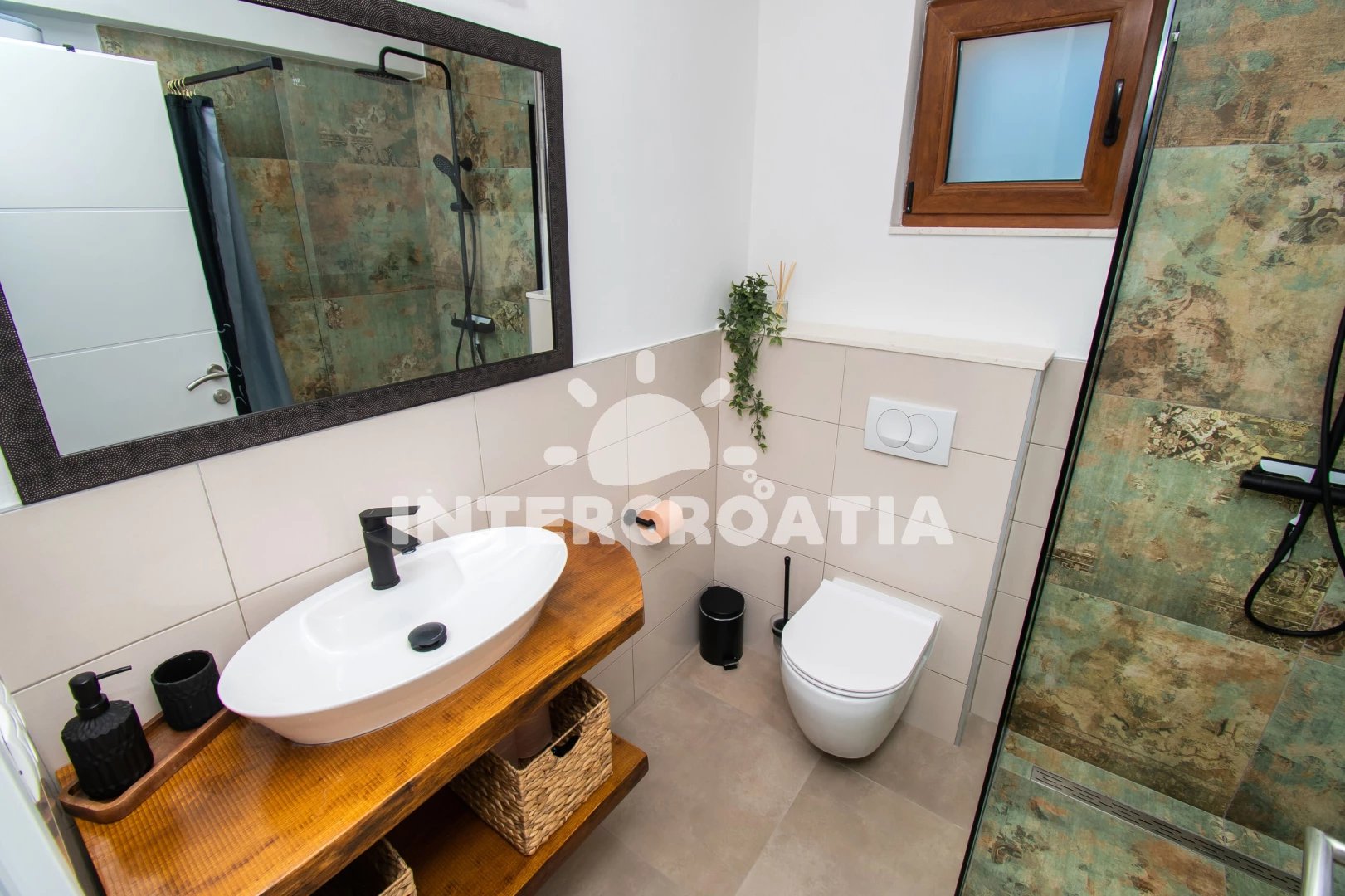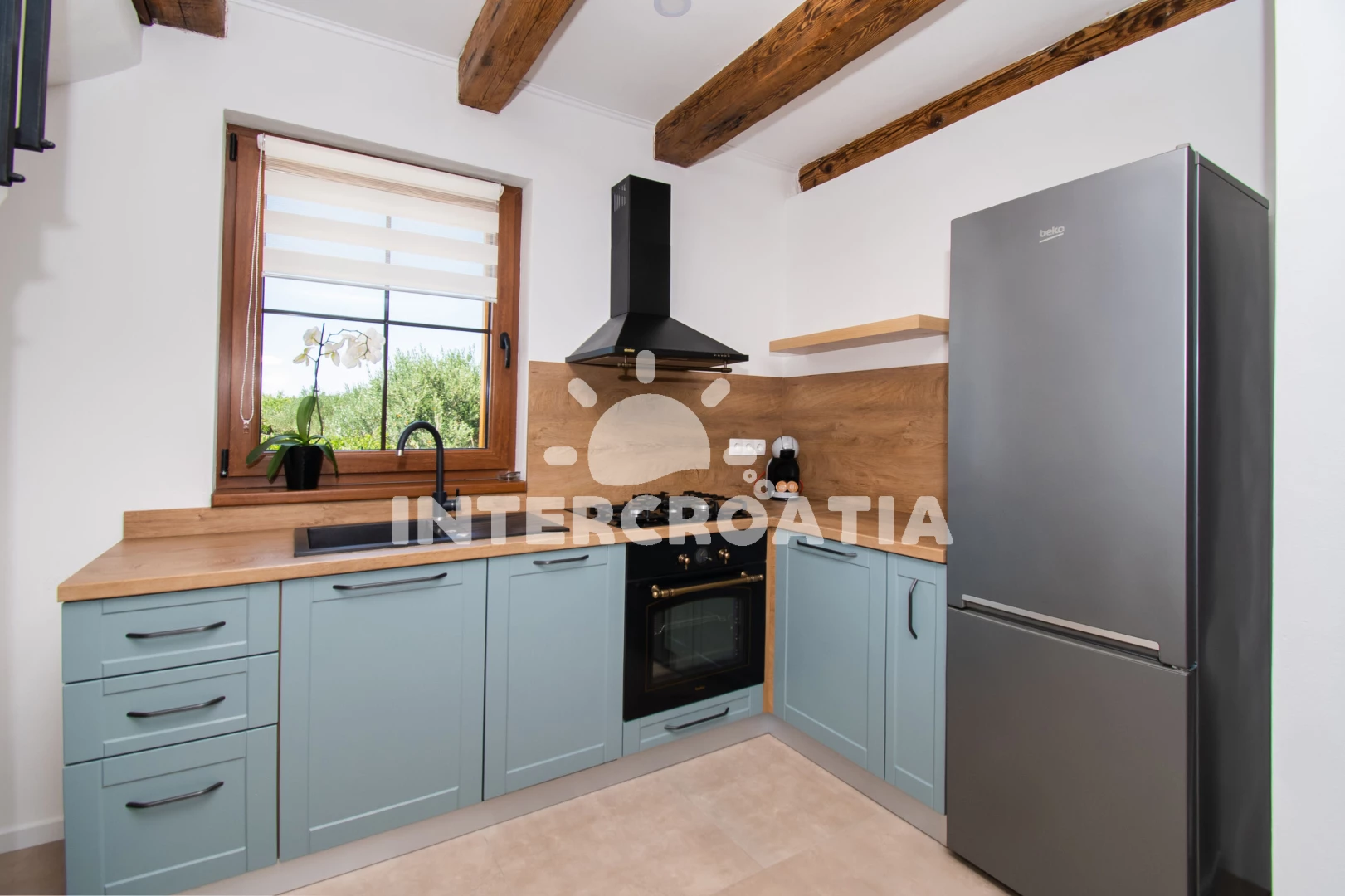 Vzdálenosti: Moře 4 km, pláž 4 km (oblázková a betonové desky), supermarket 950 m, veřejná doprava 1 km, restaurace 1,5 km, bar 1,5 km, park Plitvice 4 km, pošta 4 km, směnárna 4 km, banka 4,5 km, ambulance 4,5 km, lékárna 4,5 km, centrum 5 km, marina 5 km, trajekt (Šibenik) 15 km, letiště (Zadar) 50 km,