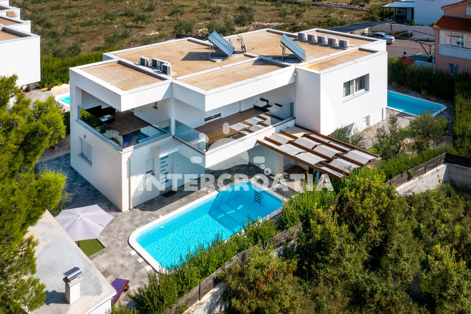 Vila (150 m2) s balkonem. Vila má 3 ložnice a je vhodná pro až 6 osob. Kuchyňská linka je vybavena varnou deskou, kávovarem, troubou, myčkou na nádobí, mikrovlnnou troubou, rychlovarnou konvicí, nádobím, lednicí, mrazákem. K dispozici televize se satelitním programem, sejf, žehlička. První ložnice s dvoulůžkem. Druhá ložnice s dvoulůžkem. Třetí ložnice s dvoulůžkem. První koupelna se sprchovým koutem, umyvadlem, fénem a WC. Druhá koupelna se sprchovým koutem, umyvadlem, fénem a WC. Třetí koupelna se sprchovým koutem, umyvadlem, fénem a WC.