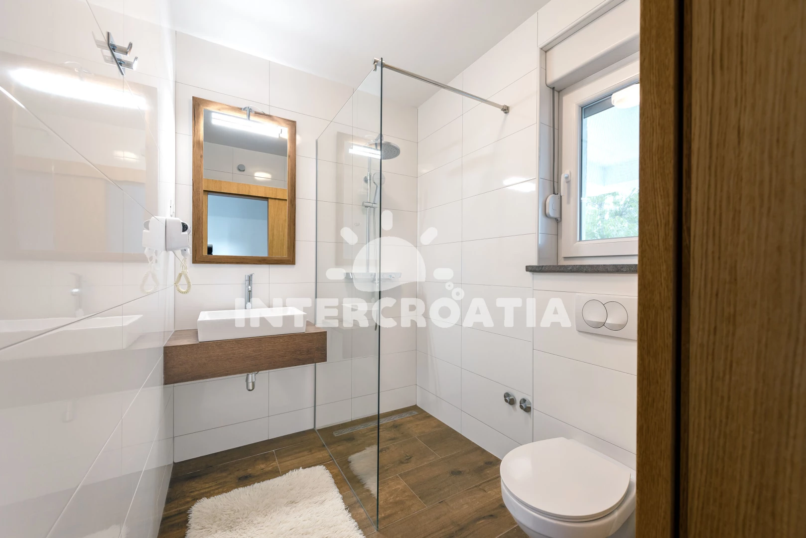 Vzdálenosti: Moře 250 m, pláž 300 m (oblázková a betonové desky), supermarket 100 m, restaurace 150 m, bar 150 m, směnárna 1,5 km, banka 2,2 km, marina 2,2 km, centrum 2,2 km, ambulance 2,2 km, lékárna 2,2 km, park Plitvice 25 km, letiště (Zadar) 65 km, trajekt (Zadar) 65 km,