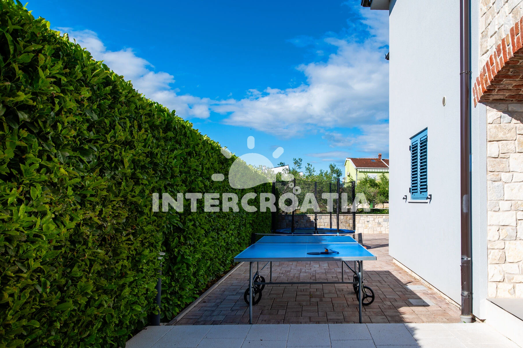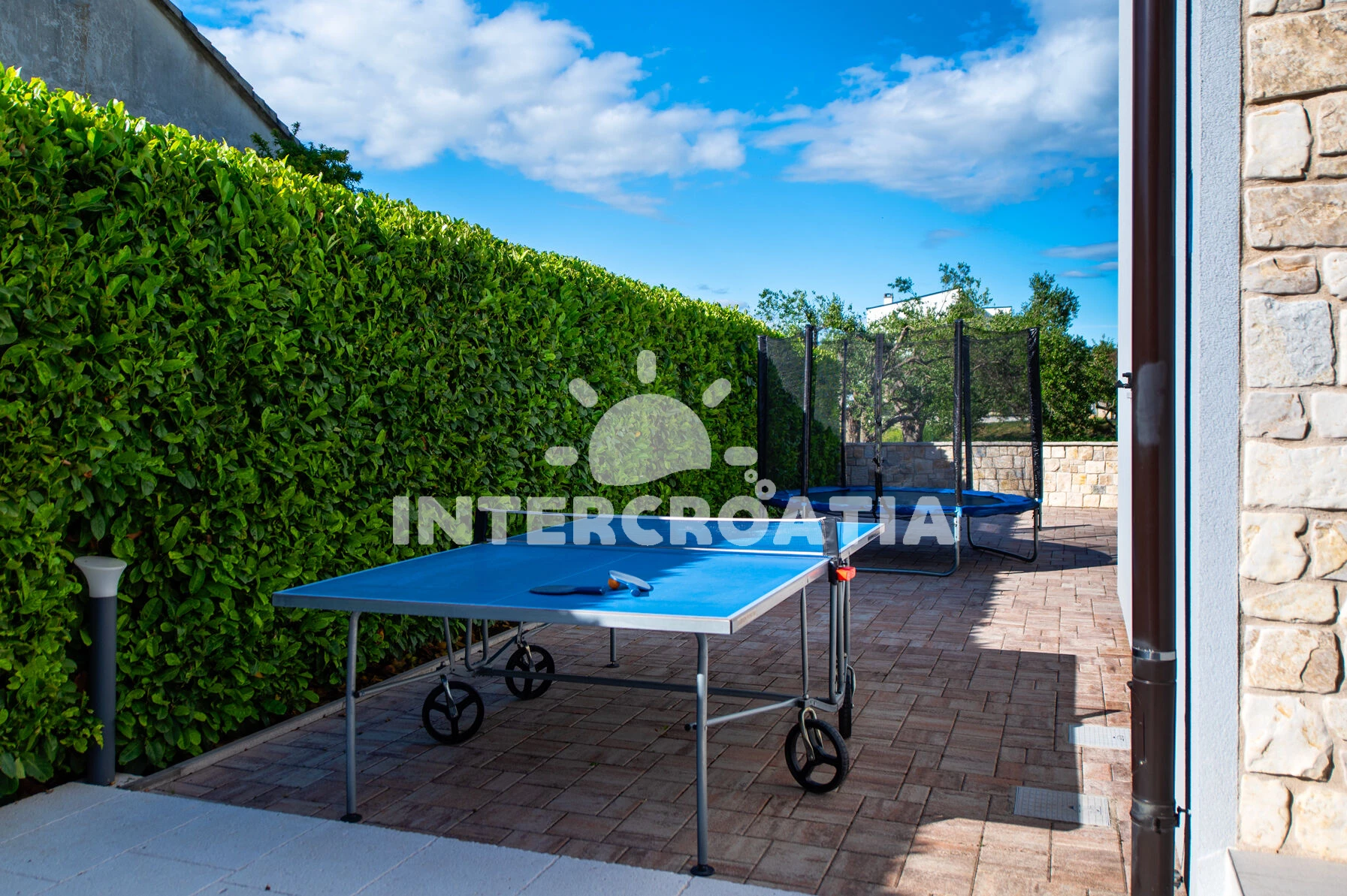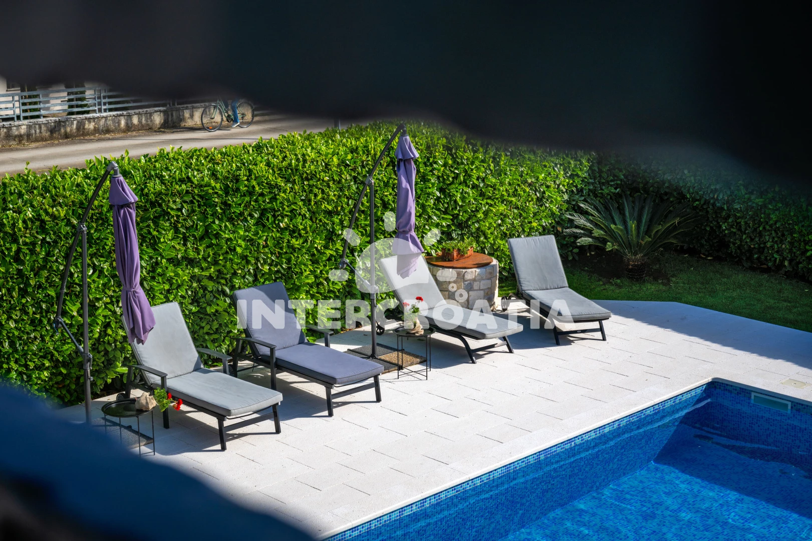 Vila se nachází 120 m od moře a pláže. Pláž je oblázková a betonové desky. Vila disponuje bazénem s lehátky pro ubytované hosty. U objektu je k dispozici společná zahrada s posezením a grilem. Parkování je před domem.