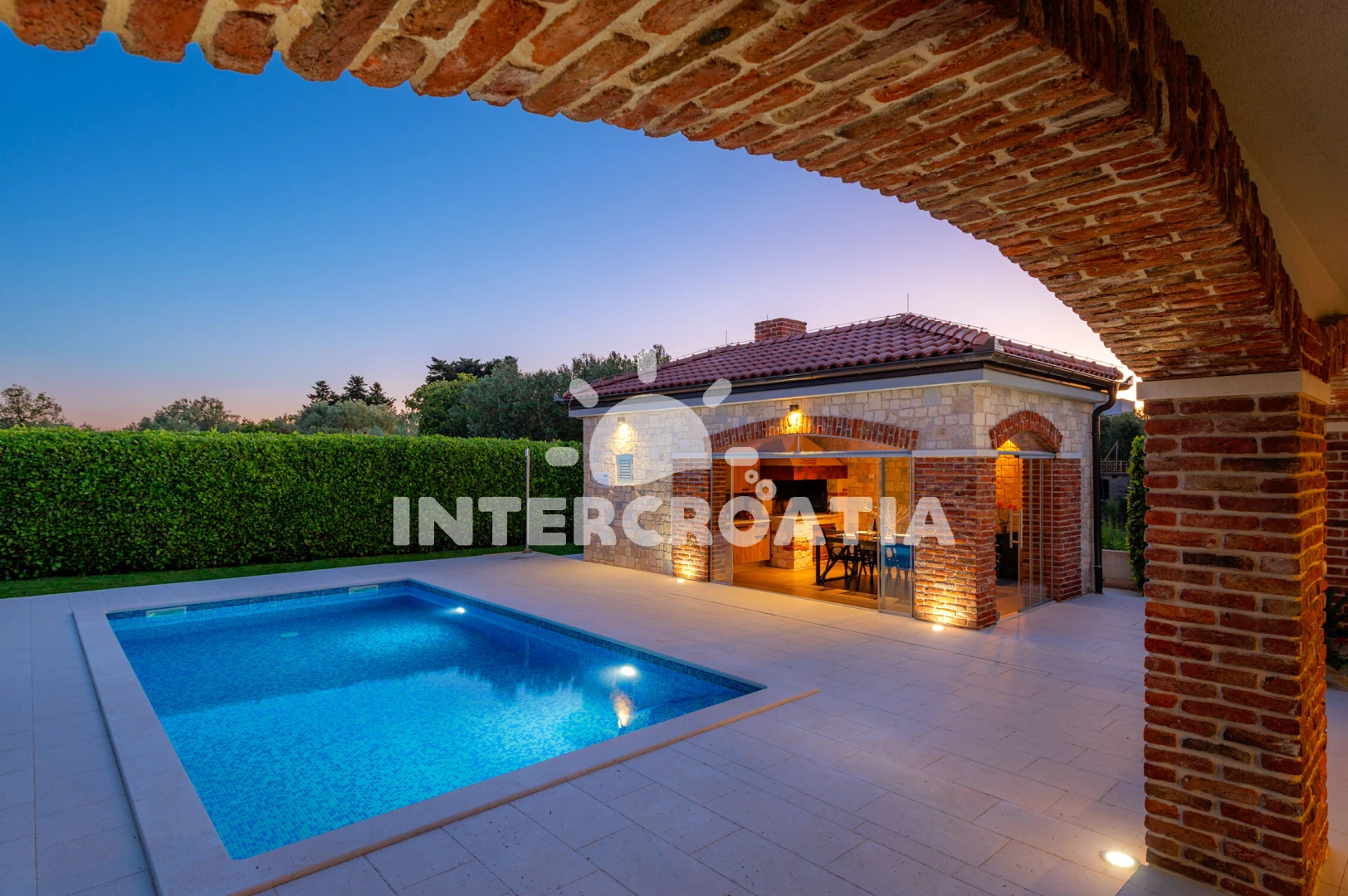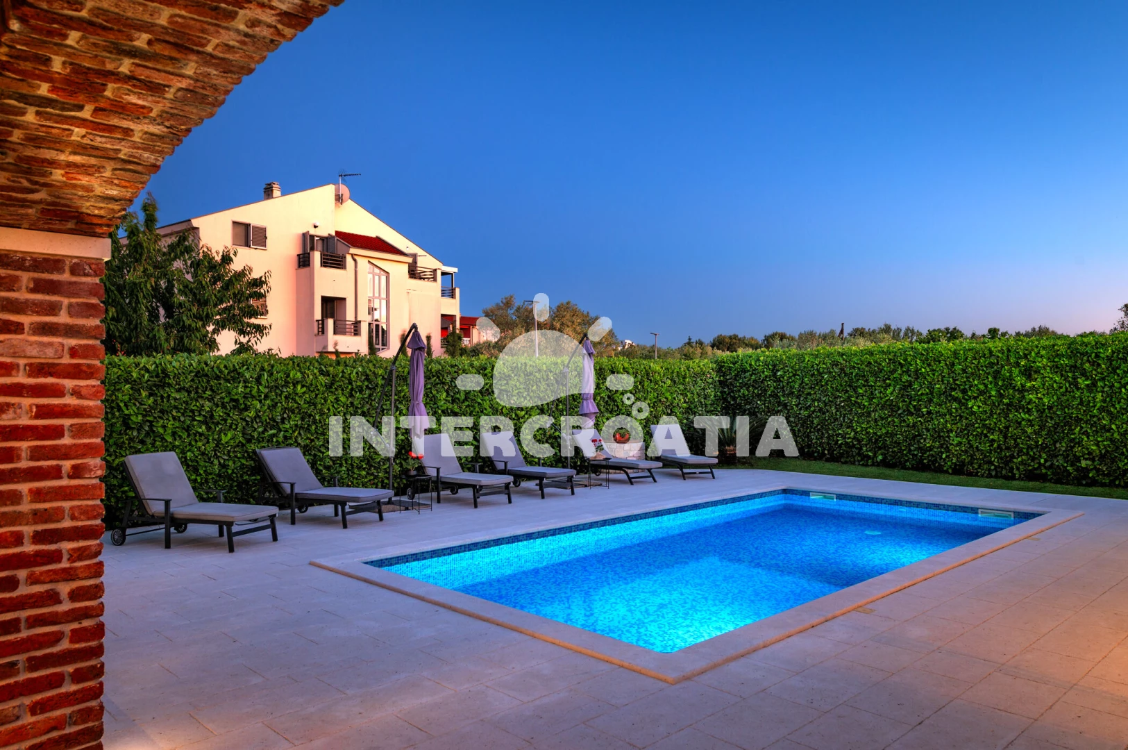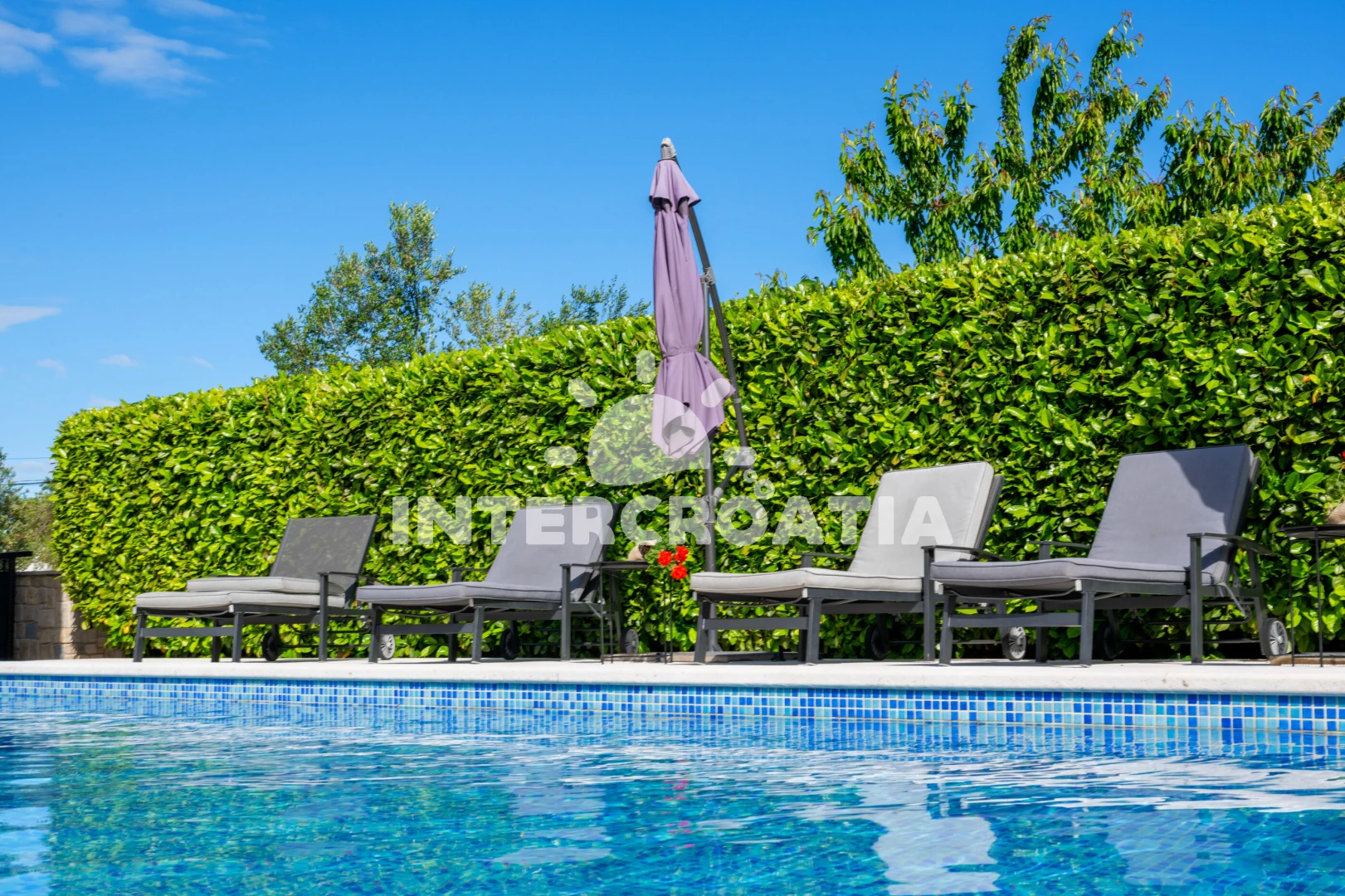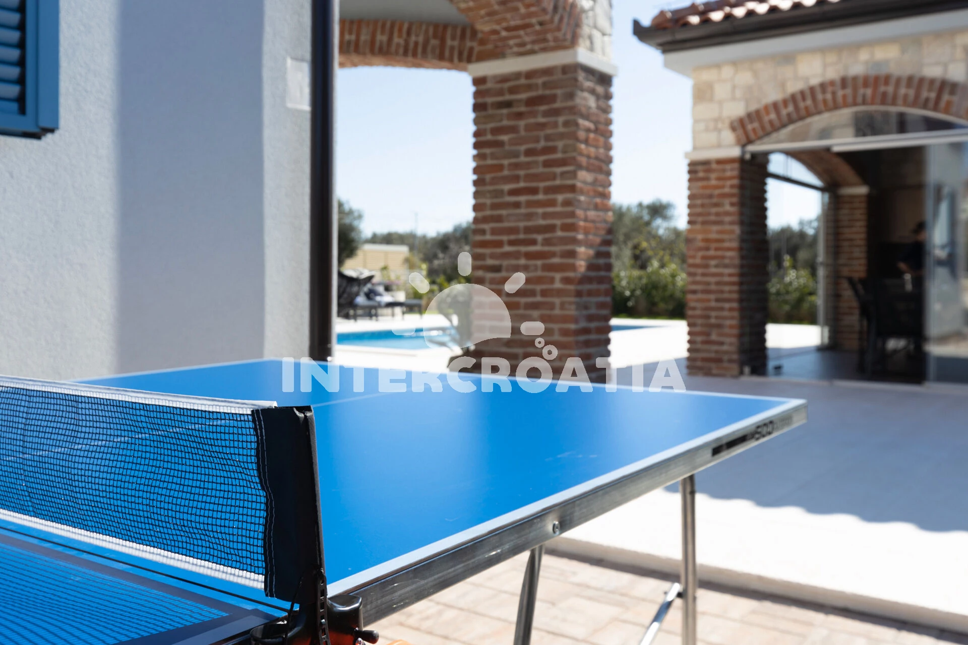Vila se nachází 120 m od moře a pláže. Pláž je oblázková a betonové desky. Vila disponuje bazénem s lehátky pro ubytované hosty. U objektu je k dispozici společná zahrada s posezením a grilem. Parkování je před domem.