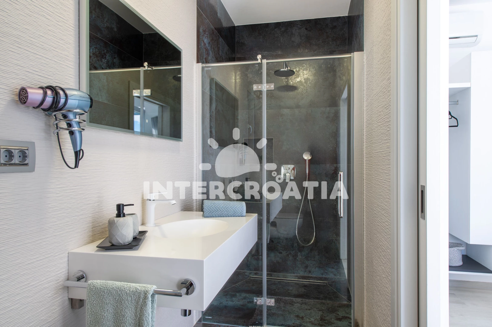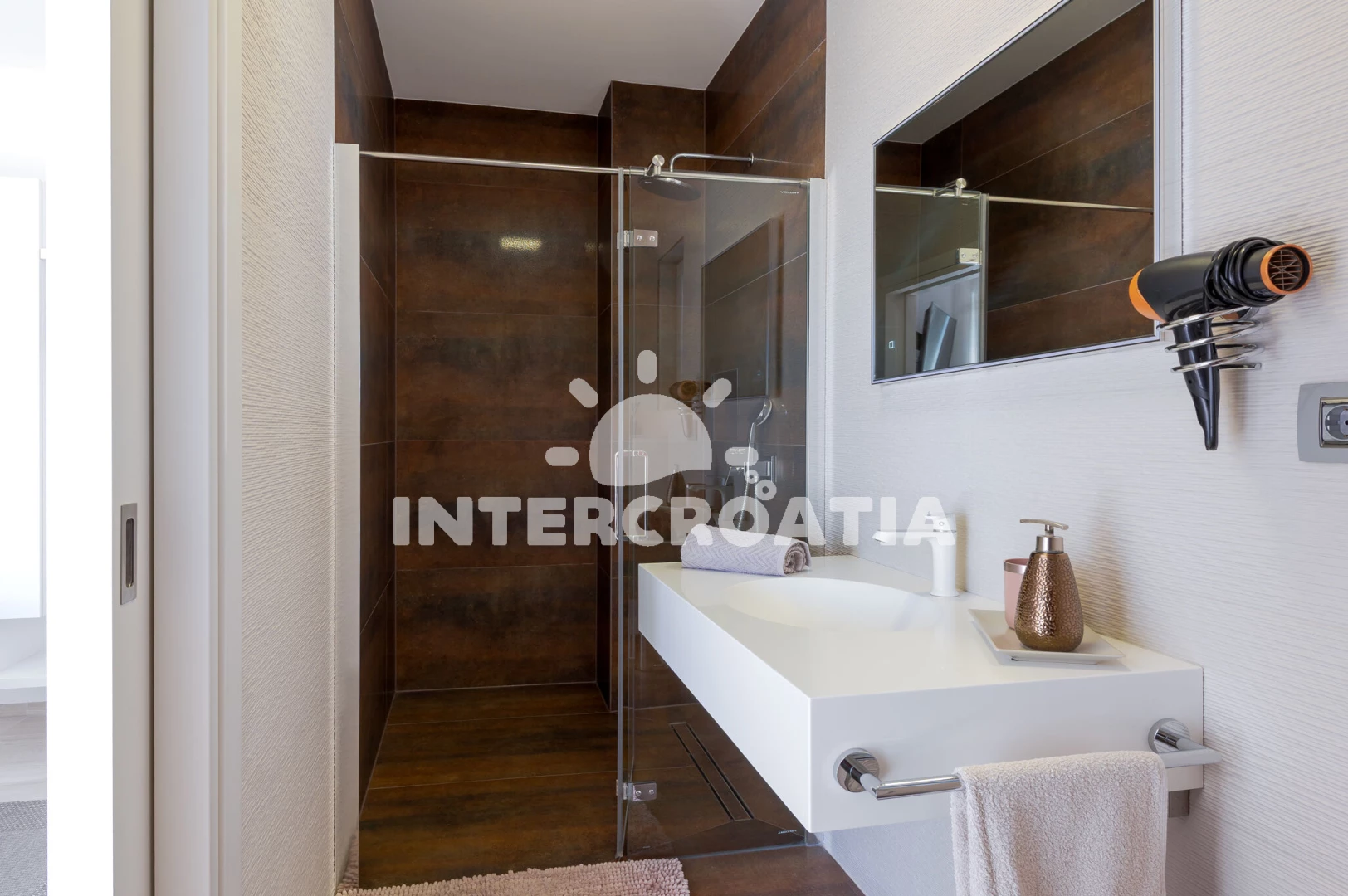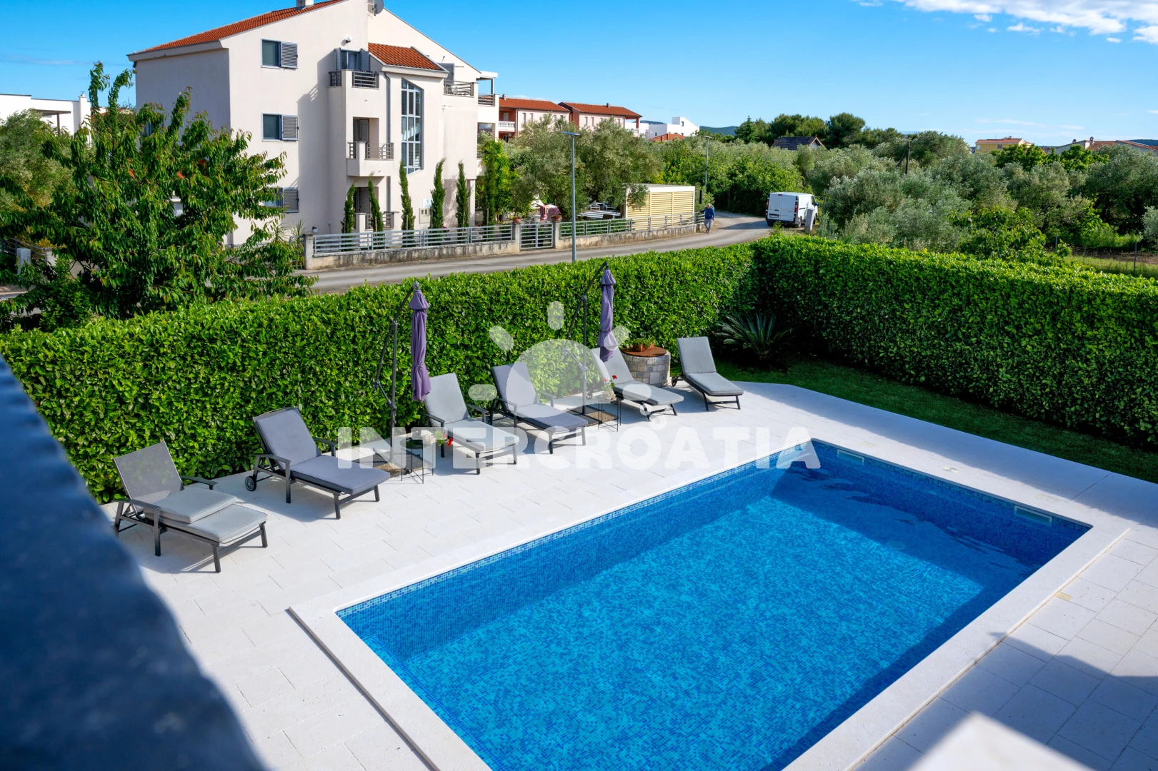 Vzdálenosti: Moře 130 m, pláž 120 m (oblázková a betonové desky), bar 130 m, restaurace 130 m, supermarket 400 m, centrum 500 m, tenisové kurty 700 m, ambulance 900 m, lékárna 1 km, pošta 1 km, čerpací stanice 1,2 km, marina 1,8 km, banka 10 km, letiště (Zadar) 10 km, trajekt (Zadar) 12 km, muzeum 14 km, park Plitvice 73 km,