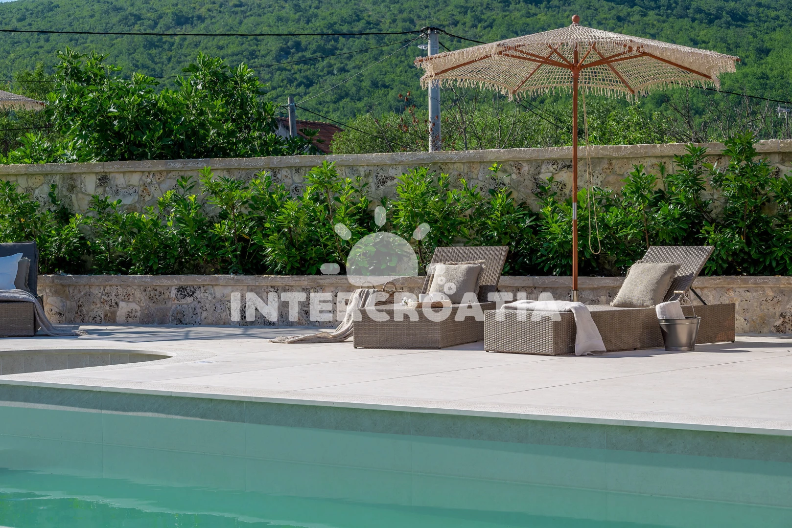 Vila se nachází 26000 m od moře a pláže. Pláž je oblázková a betonové desky. Vila disponuje bazénem s lehátky pro ubytované hosty. K dispozici vířivka. U objektu je k dispozici společná zahrada s posezením a grilem. Parkování je před domem.