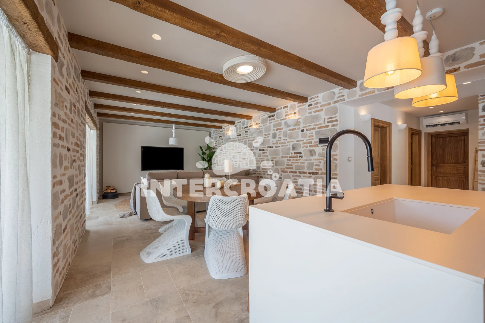 Vzdálenosti: Moře 19 km, pláž 26 km (oblázková a betonové desky), čerpací stanice 4,5 km, veřejná doprava 5 km, centrum 5 km, bar 5 km, restaurace 5 km, supermarket 5,4 km, letiště (Split) 32 km, trajekt (Šibenik) 35 km,