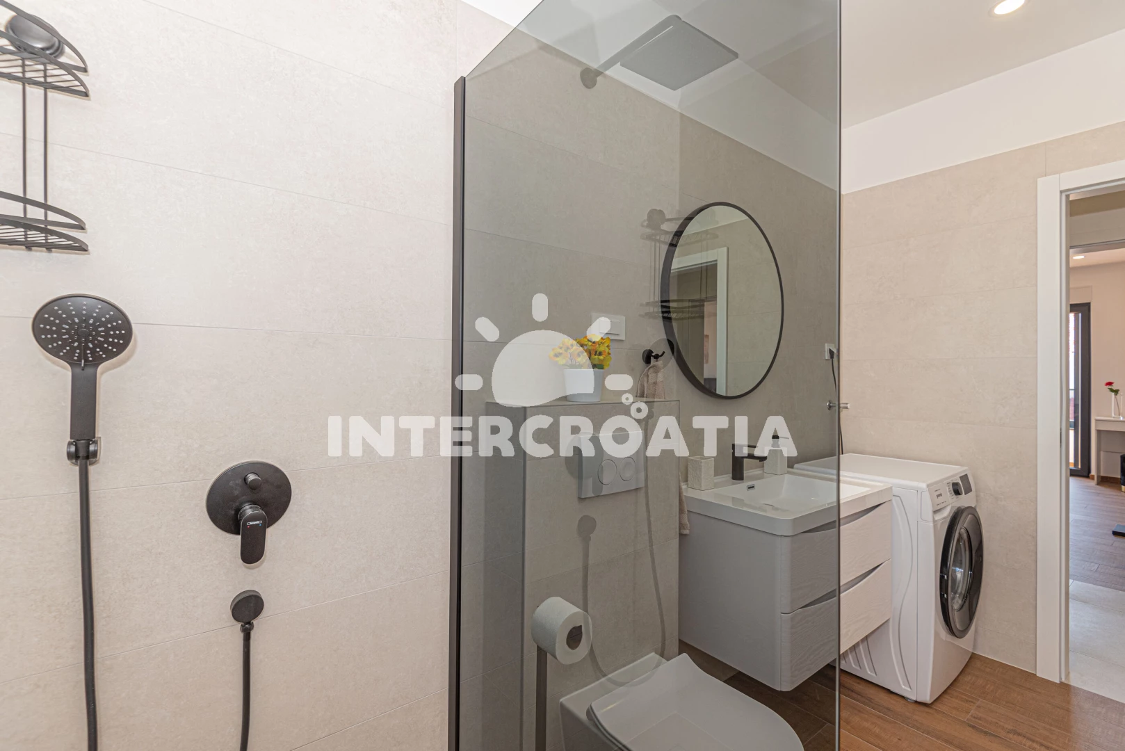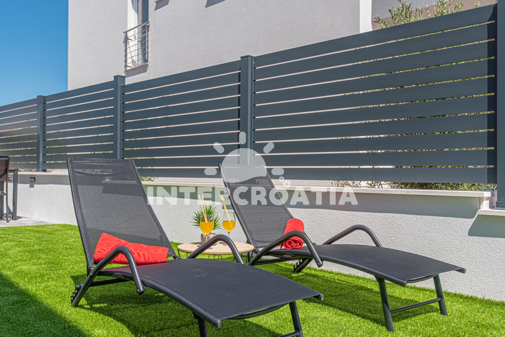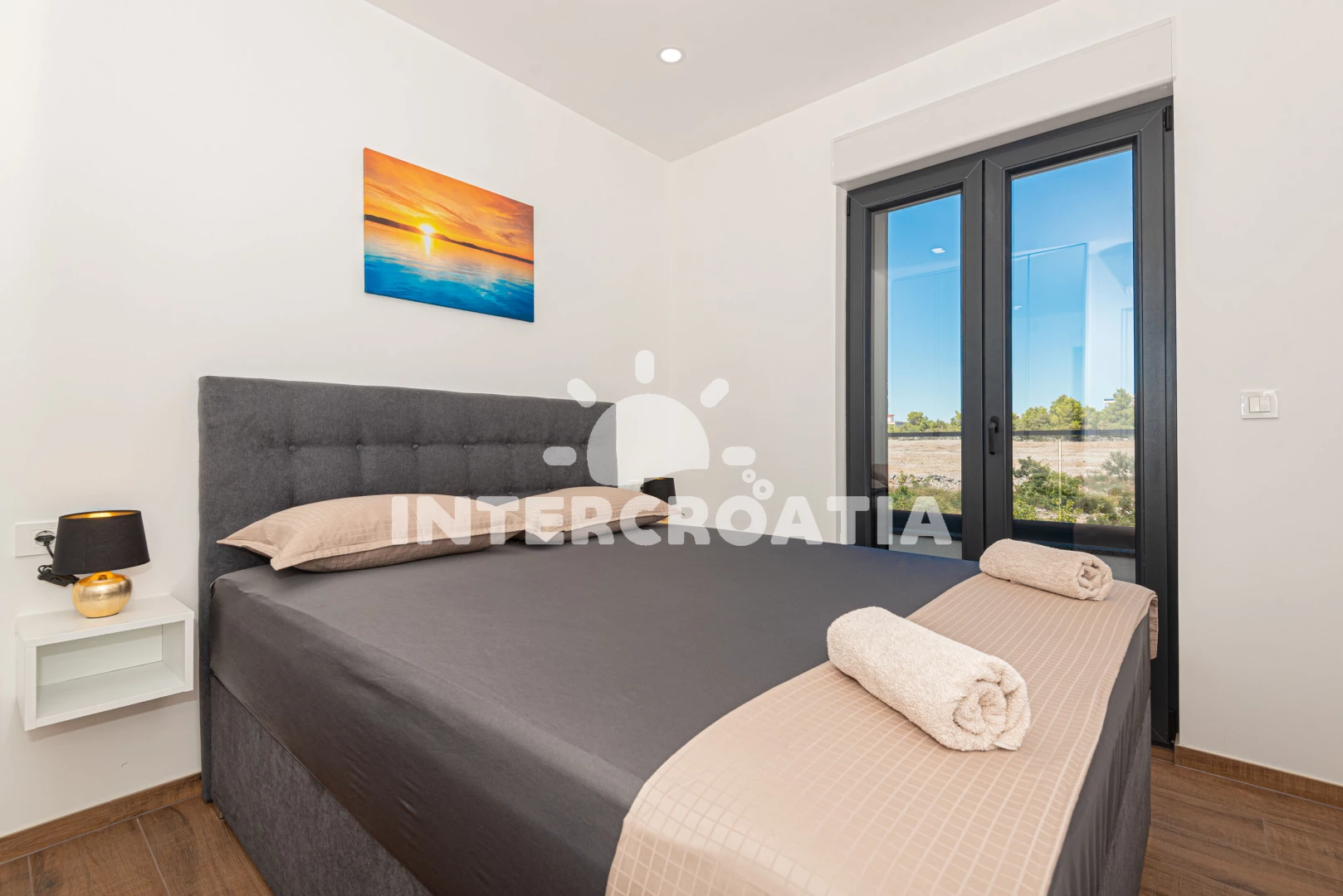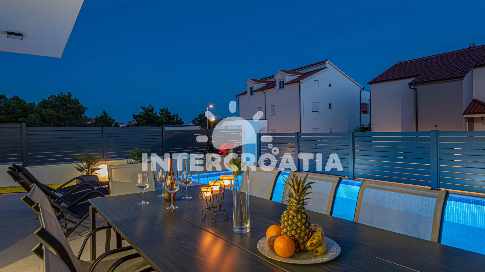 Vzdálenosti: Moře 900 m, pláž 1,2 km (oblázková a betonové desky), restaurace 300 m, čerpací stanice 450 m, supermarket 500 m, půjčovna kol 500 m, směnárna 600 m, marina 600 m, veřejná doprava 600 m, banka 600 m, lékárna 600 m, ambulance 600 m, centrum 650 m, pošta 700 m, bar 700 m, muzeum 800 m, půjčovna motorových člunů 800 m, tenisové kurty 800 m, potápění 800 m, diskotéka 1 km, park Plitvice 20 km, trajekt (Zadar) 60 km, letiště (Zadar) 60 km,