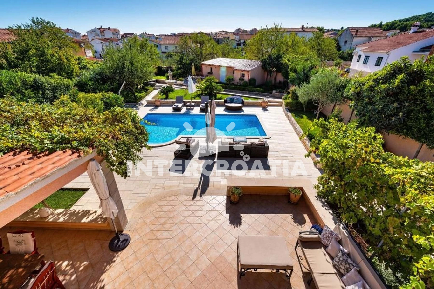 Vzdálenosti: Moře 820 m, pláž 1,8 km (písčitá a betonové desky), restaurace 100 m, lékárna 200 m, čerpací stanice 700 m, supermarket 700 m, banka 1 km, bar 1 km, pošta 1,1 km, směnárna 1,2 km, marina 1,2 km, diskotéka 1,3 km, ambulance 1,3 km, veřejná doprava 1,3 km, centrum 1,5 km, mini golf 1,8 km, půjčovna motorových člunů 2,2 km, potápění 2,2 km, tenisové kurty 2,2 km, trajekt (Šibenik) 20 km, park Plitvice 24 km, letiště (Zadar) 69 km,