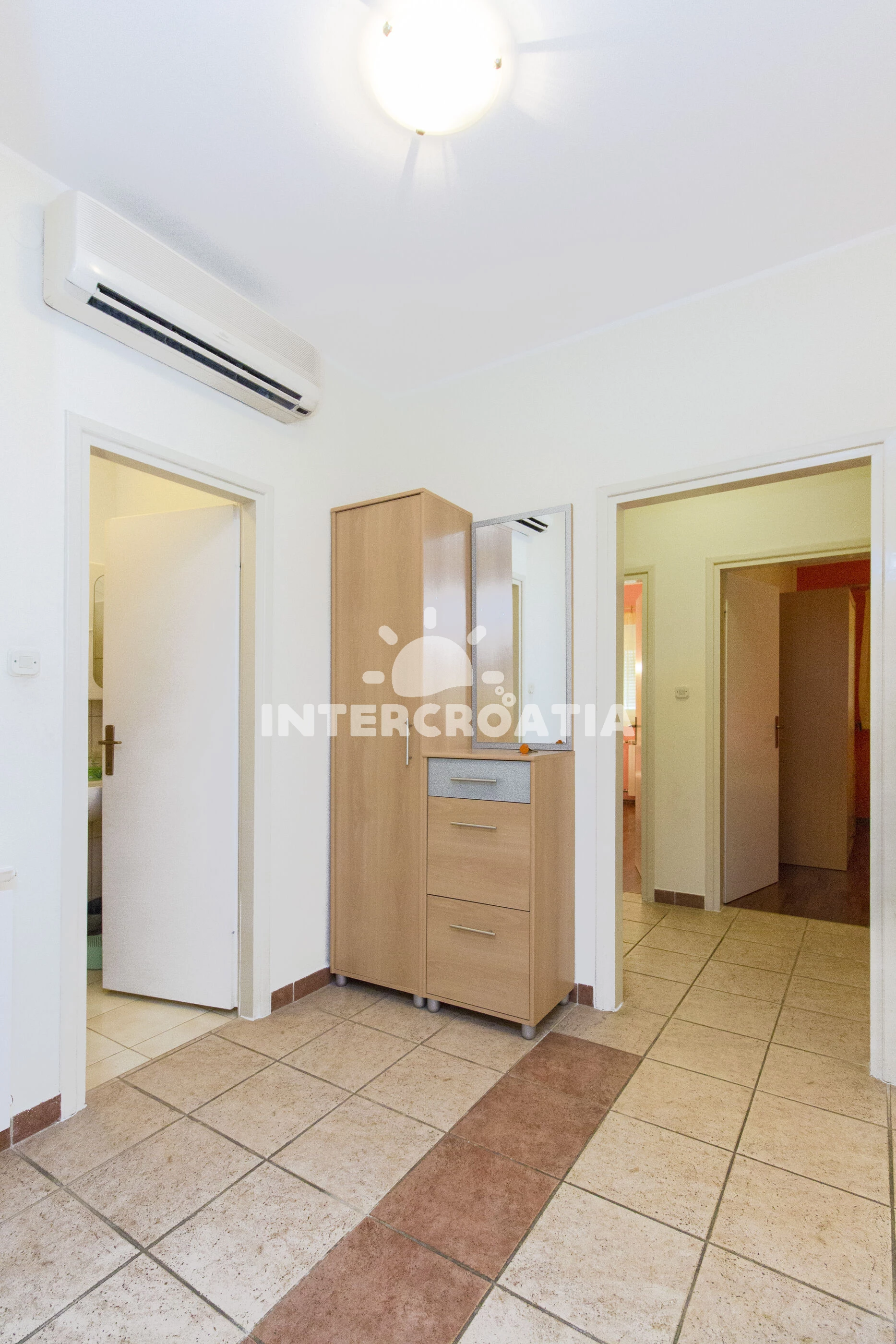 Vzdálenosti: Moře 300 m, pláž 300 m (skalnatá, oblázková, větší kamení a betonové desky), veřejná doprava 150 m, restaurace 200 m, supermarket 200 m, bar 300 m, směnárna 400 m, centrum 900 m, ambulance 900 m, marina 900 m, banka 1 km, pošta 1,2 km, trajekt (Šibenik) 13 km, letiště (Split) 47 km,