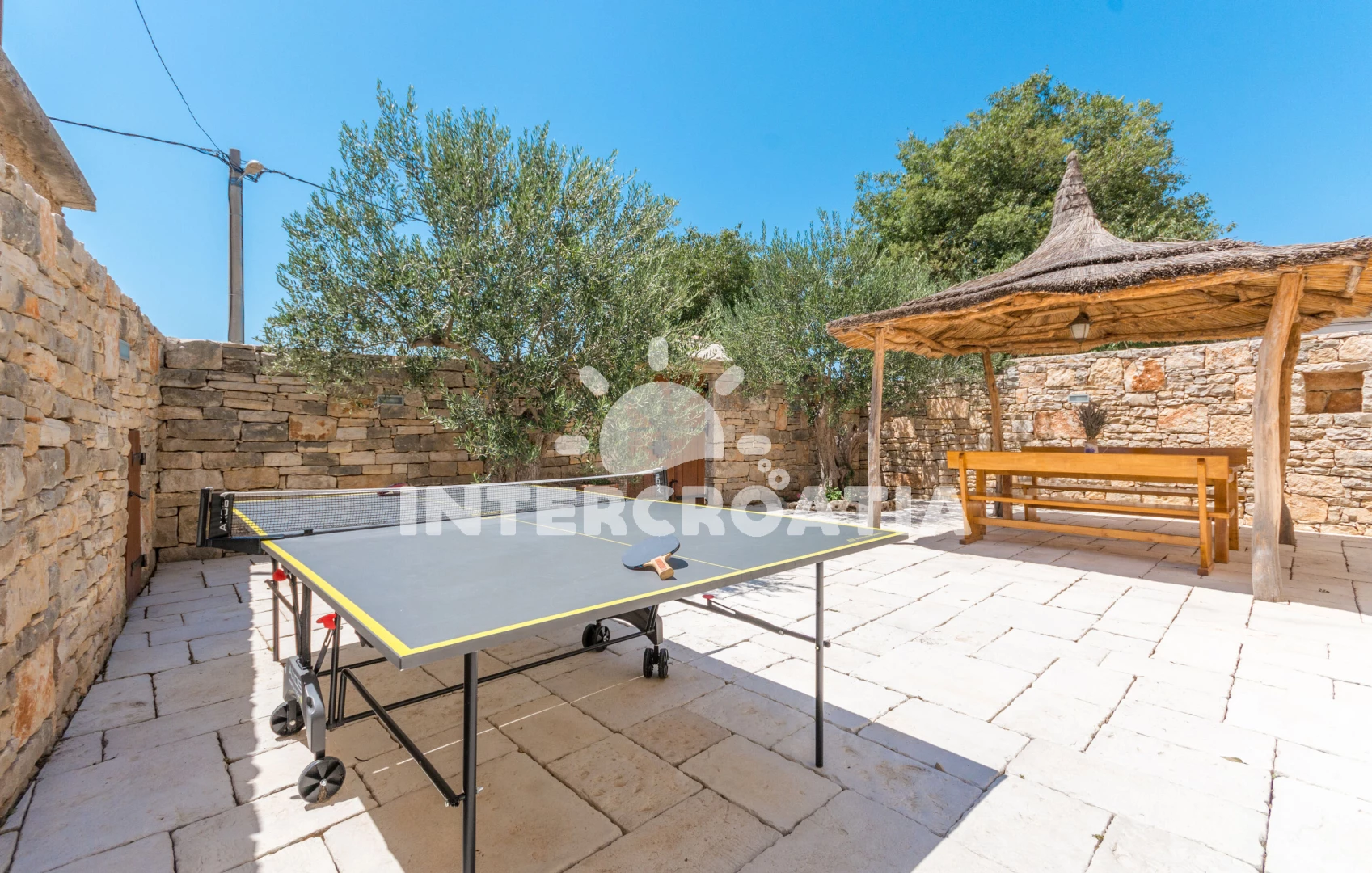 Vila se nachází 12800 m od moře a pláže. Pláž je písčitá, skalnatá, oblázková, větší kamení a betonové desky. Vila disponuje bazénem s lehátky pro ubytované hosty. U objektu je k dispozici společná zahrada s posezením a grilem. Parkování je před domem.