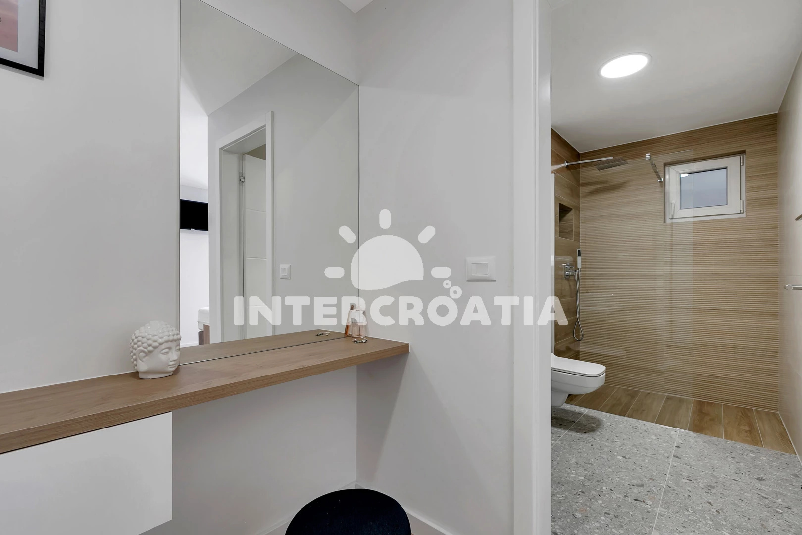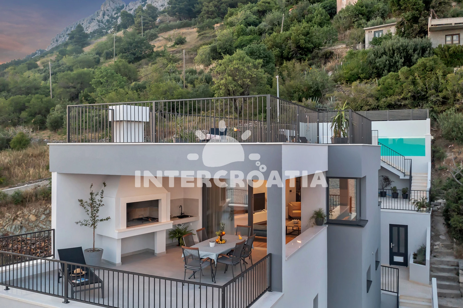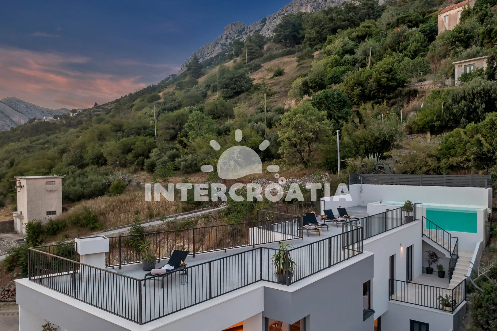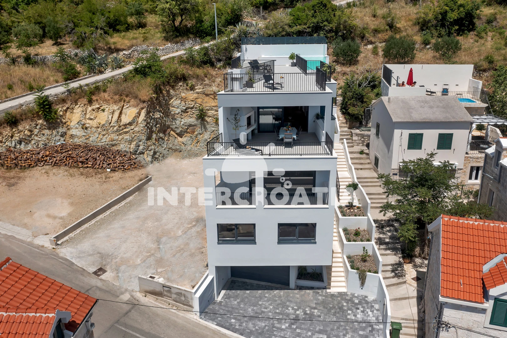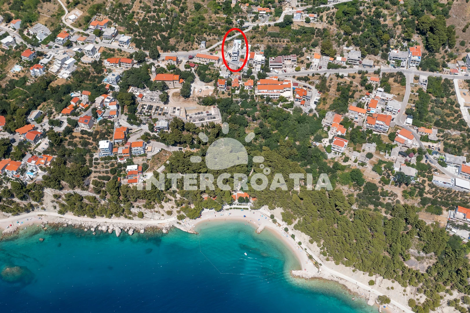 Vzdálenosti: Moře 190 m, pláž 400 m (oblázky), supermarket 300 m, bar 800 m, potápění 1 km, restaurace 1 km, veřejná doprava 2 km, mini golf 3 km, směnárna 3 km, marina 3 km, banka 3 km, lékárna 3 km, centrum 3 km, pošta 3 km, tenisové kurty 3 km, ambulance 4 km, čerpací stanice 10 km, trajekt (Makarska) 15 km, diskotéka 15 km, letiště (Split) 65 km,