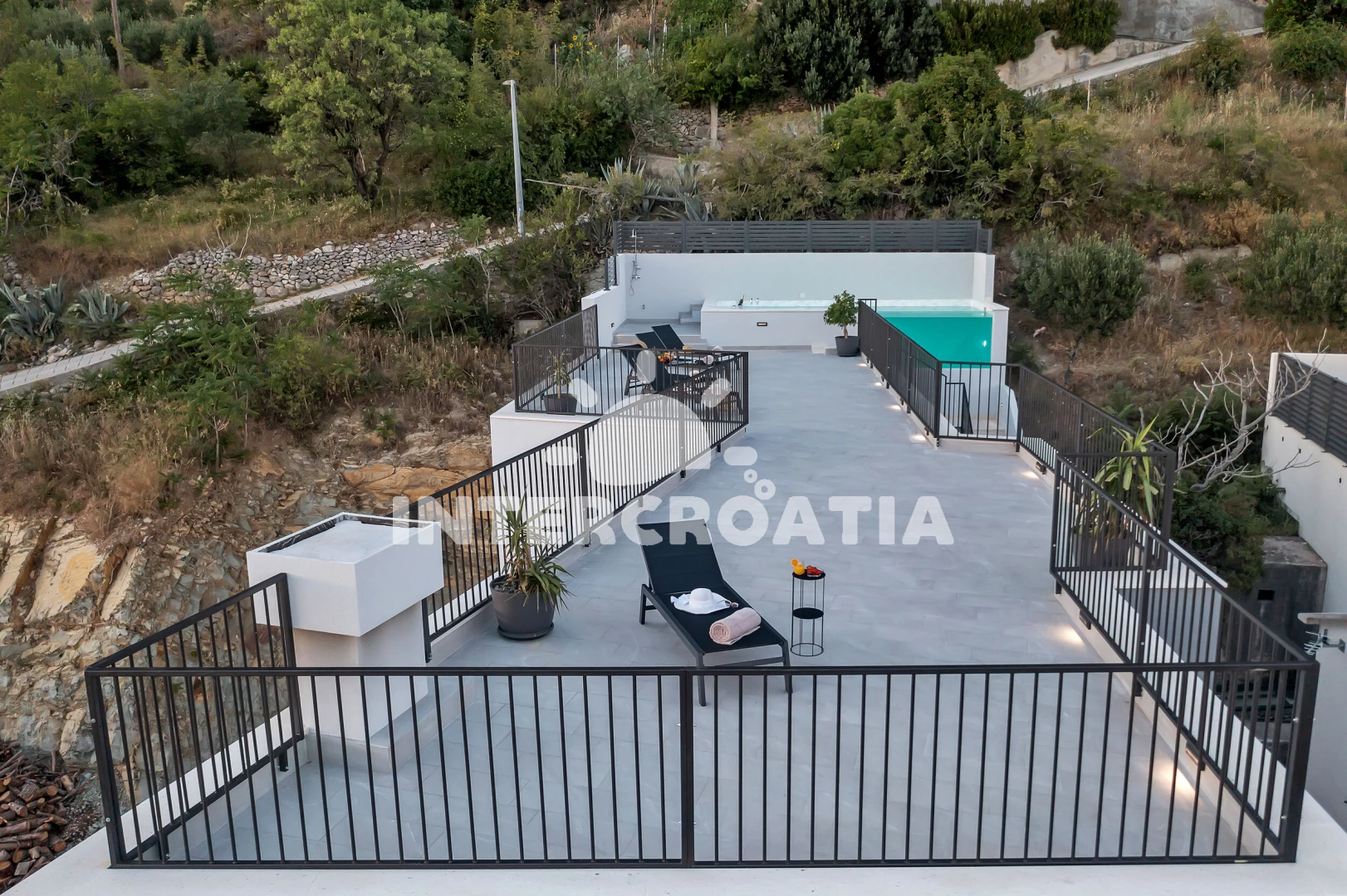 Vila se nachází 400 m od moře a pláže. Pláž je oblázková. Vila disponuje bazénem s lehátky pro ubytované hosty. U objektu je k dispozici společná zahrada s posezením a grilem. Parkování je před domem.