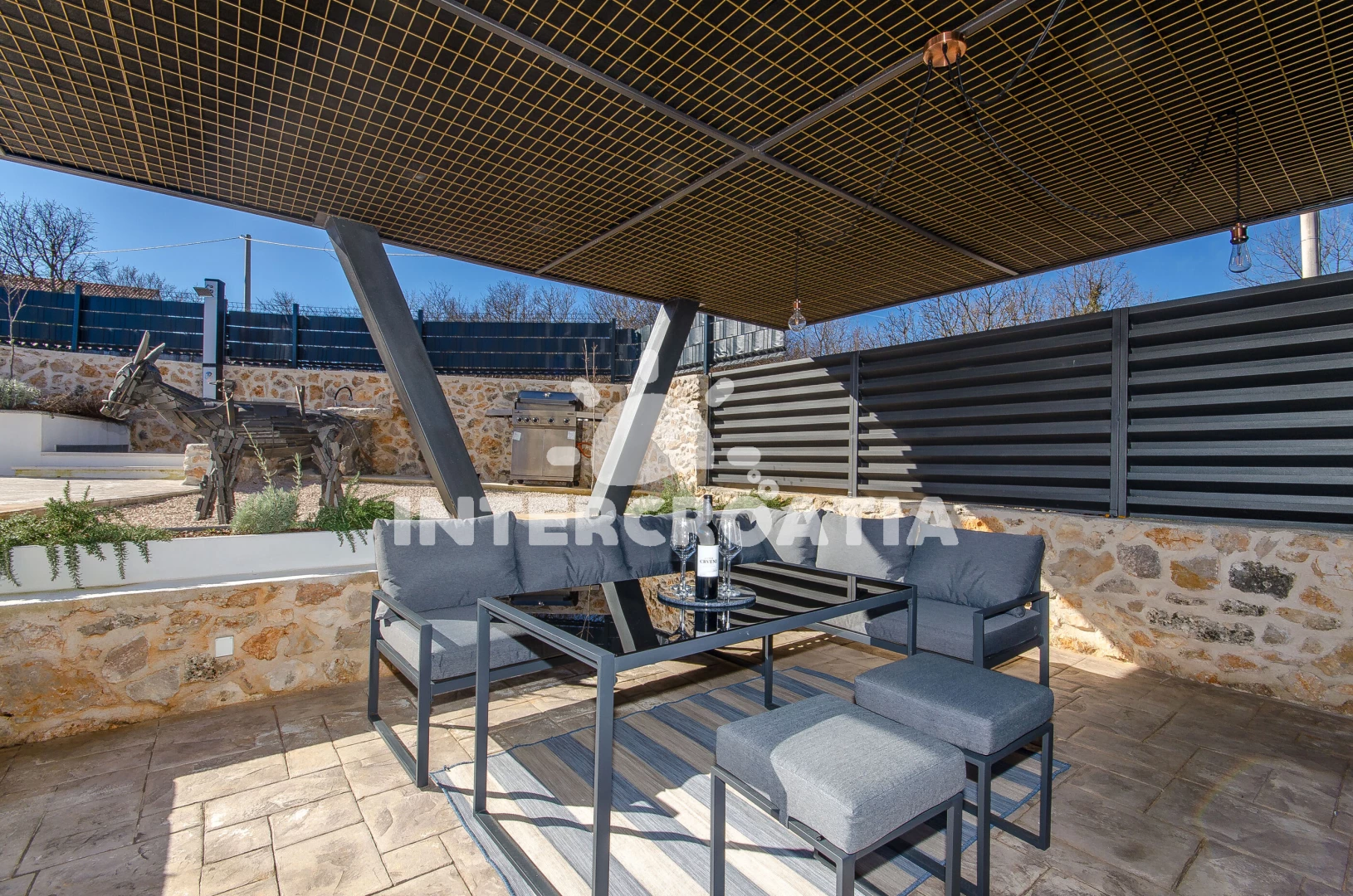 Vila se nachází 35000 m od moře a pláže. Pláž je oblázková. Vila disponuje bazénem s lehátky pro ubytované hosty. U objektu je k dispozici společná zahrada s posezením a grilem. Parkování je před domem.